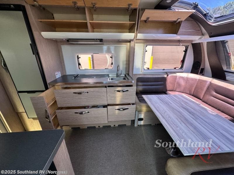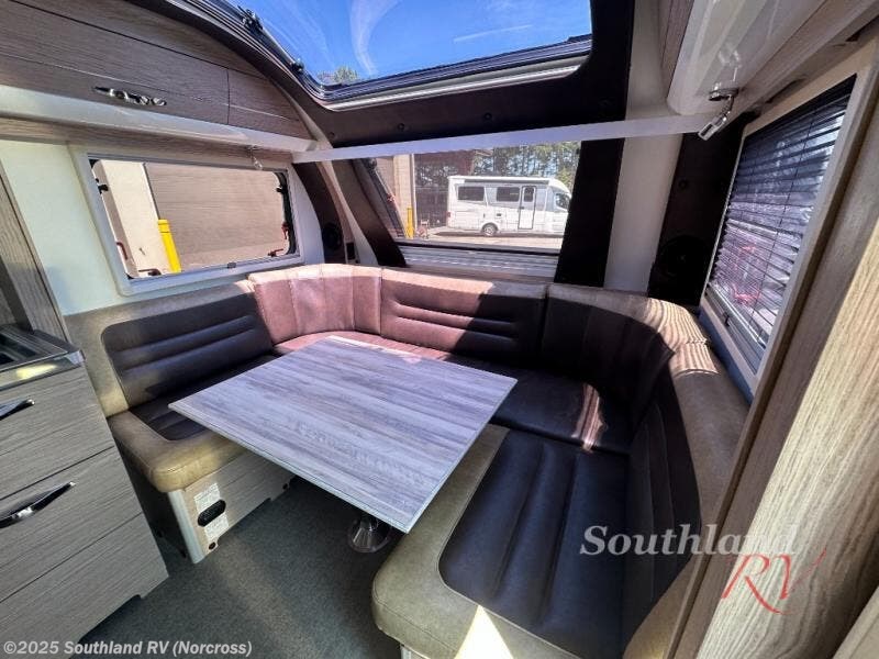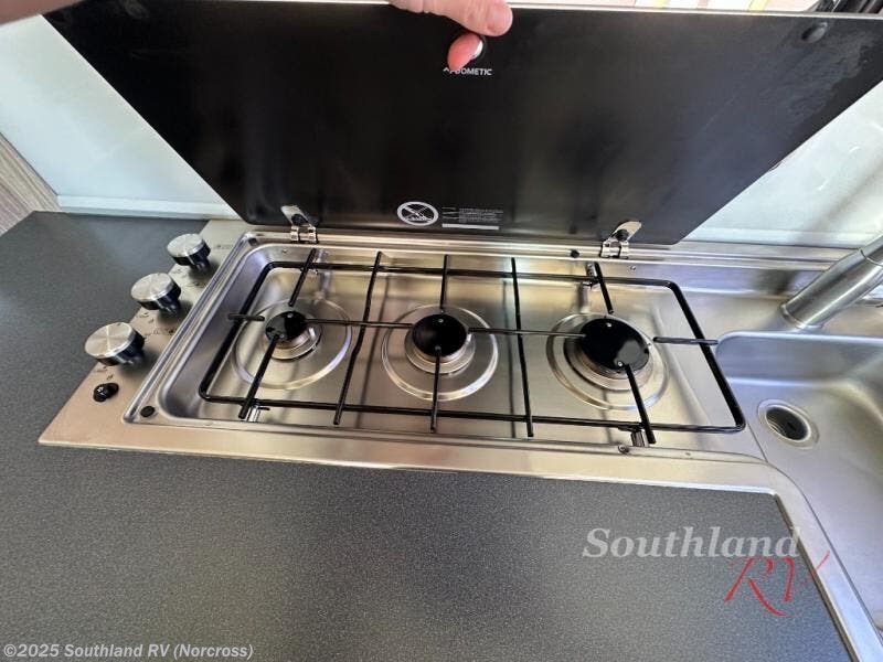 Relax in comfort when you make this nuCamp AVIA your adventure homebase. Enjoy plenty of space and spectacular views through the many windows during the daytime hours, and you will love the stargazer window for after dark views of the night sky as well. The multi-function power bed offers a place for a great night's rest, or a space to kick back and read a good book. Dining inside will be super easy with the u-shaped dinette that can easily convert to a bed at night, plus the three burner stovetop, sink, and in-drawer convection microwave oven and fryer will have you easily whipping up camp favorite meals and snacks for everyone. You will love the look of the European-styled cabinetry for stowing away all of your belongings inside, plus a pass-through storage compartment outside provides a space for your camp chairs and outdoor gear when not in use.