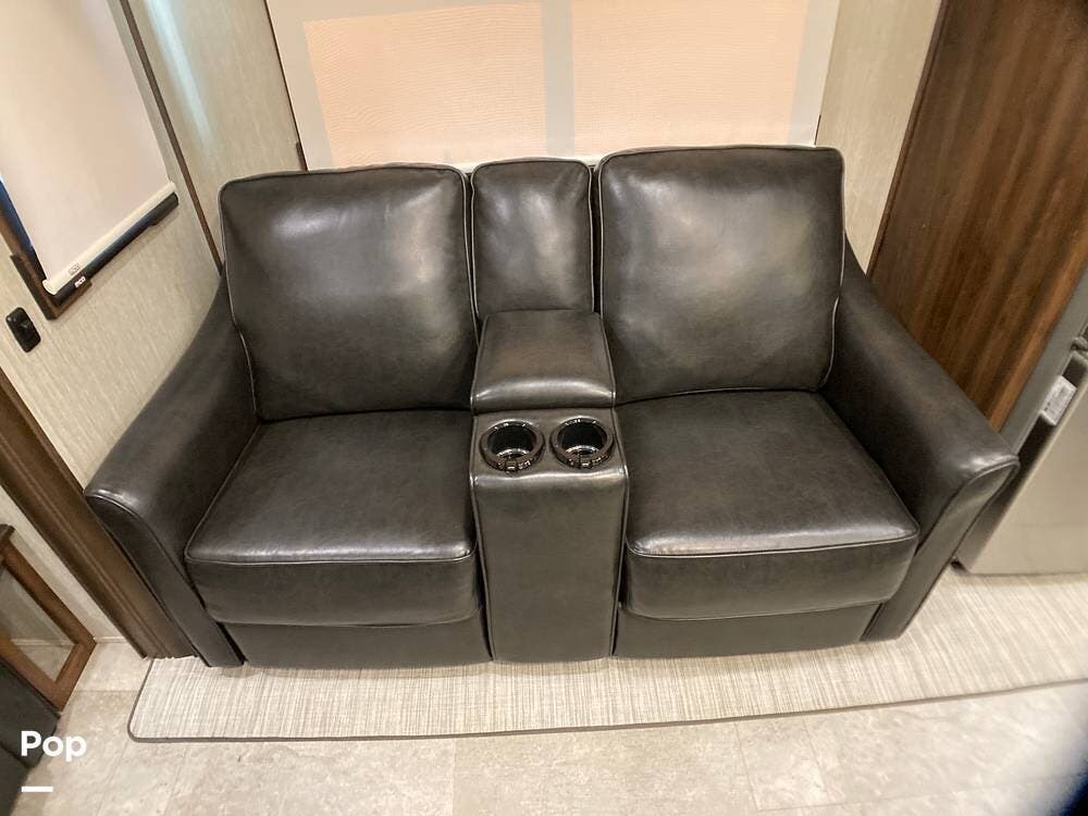 The living room features a full-size sofa that converts to a comfortable bed (tri-fold). Watch your 50" High Definition TV from the two stadium seats with power recline.