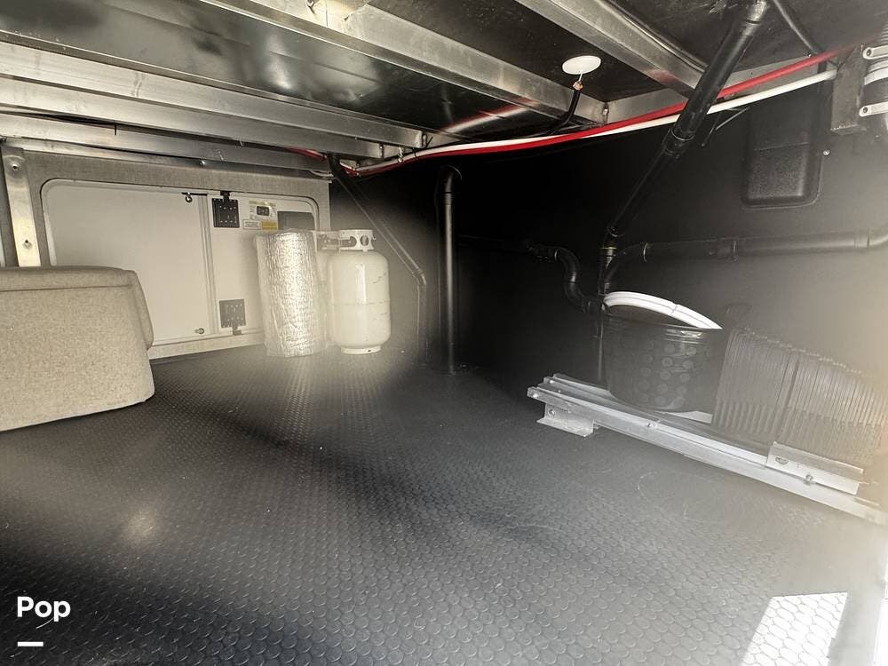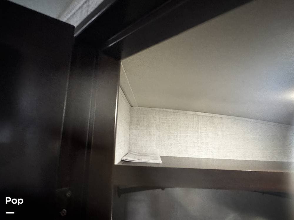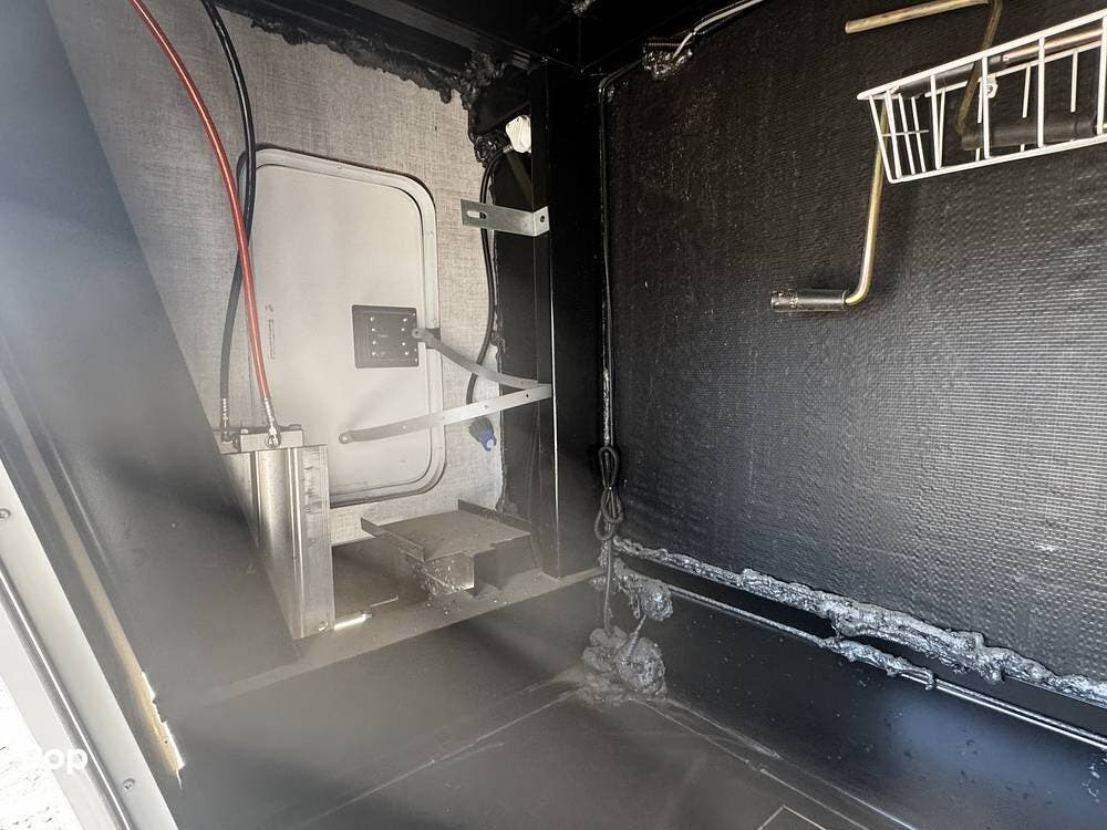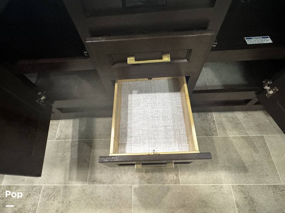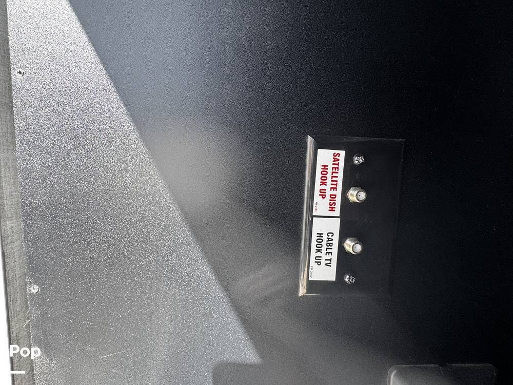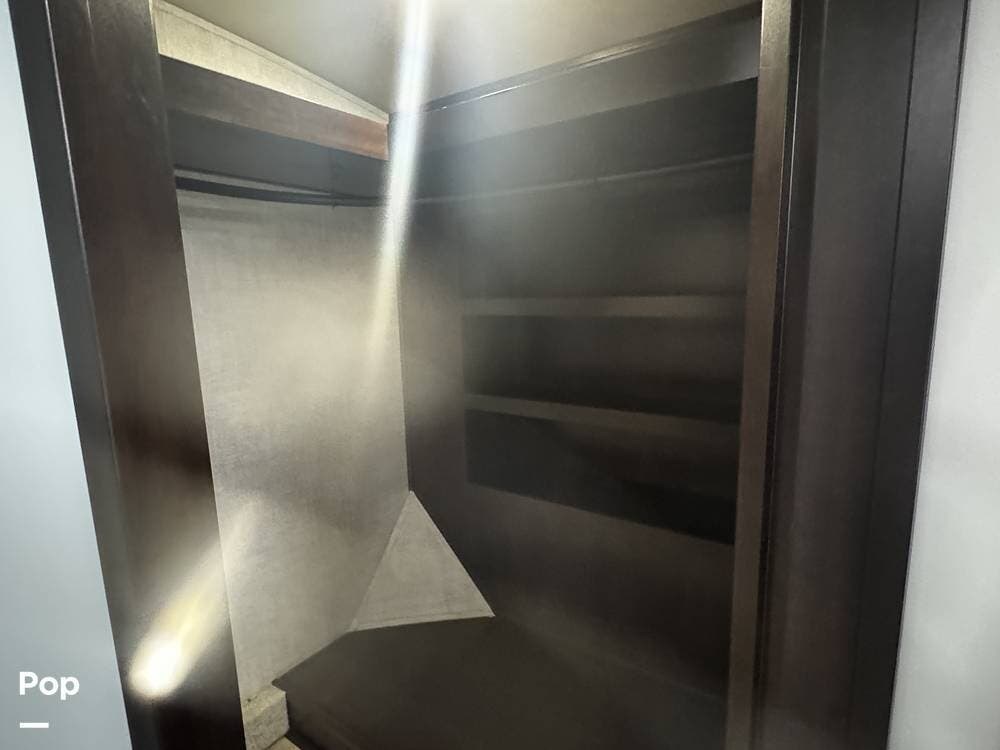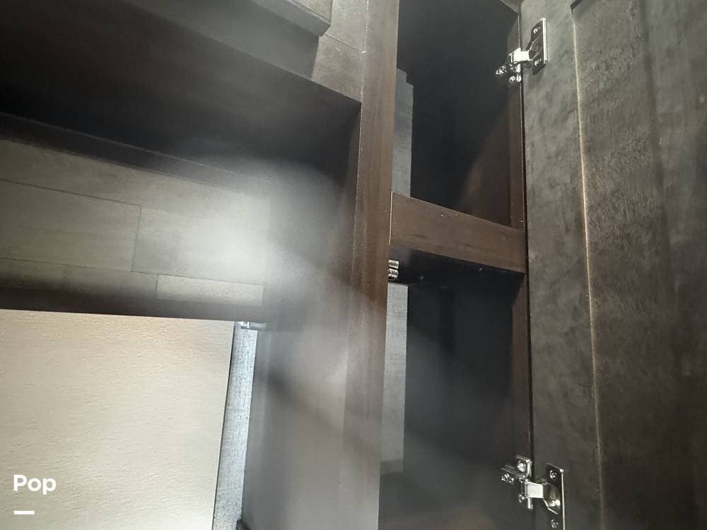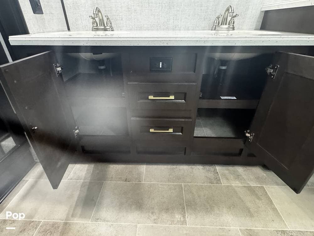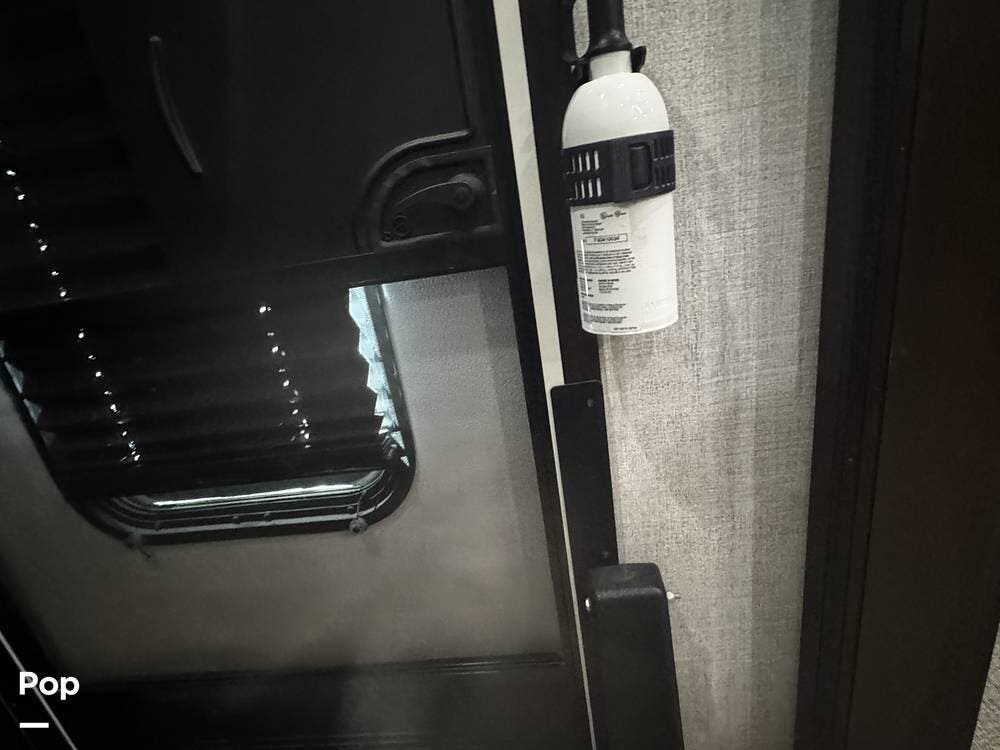 The RV features climate-controlled drop-frame pass-thru storage compartments, offering ample space for gear and essentials. Additionally, it is prepped for a rear-view camera and slide toppers, enhancing safety and convenience.