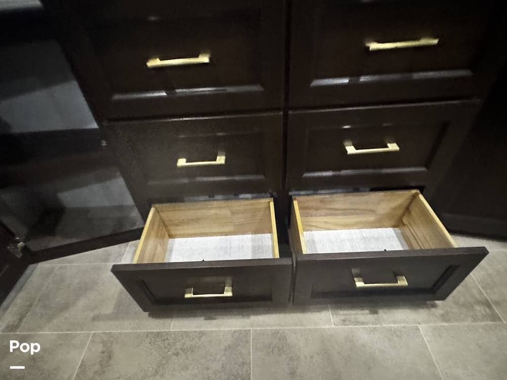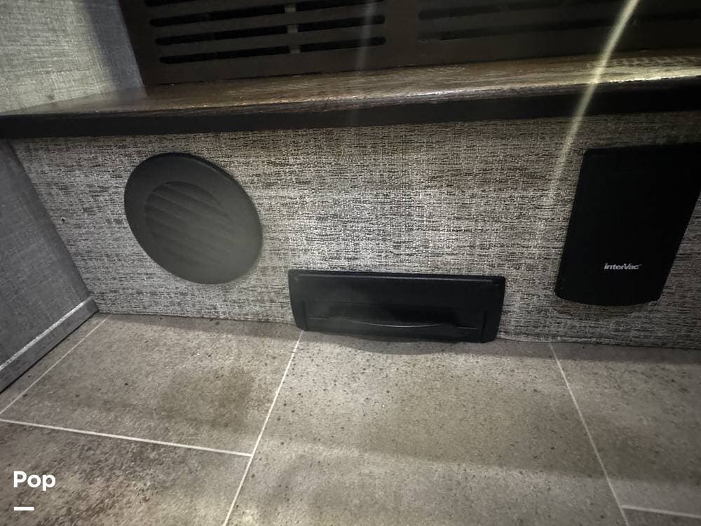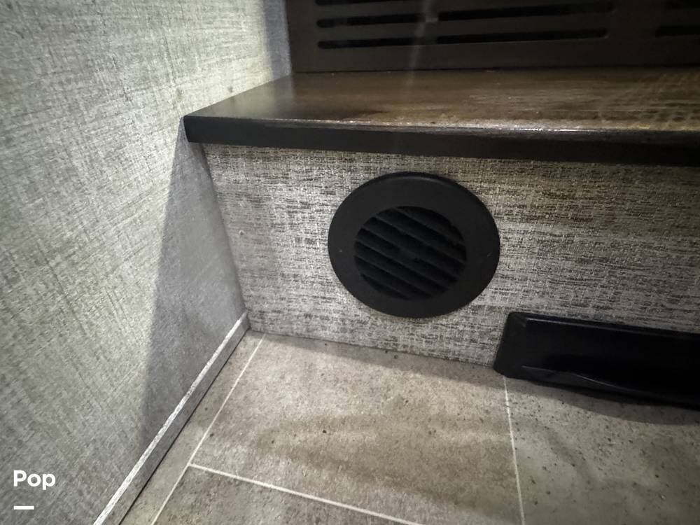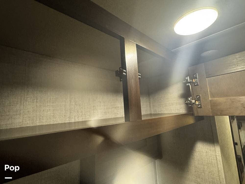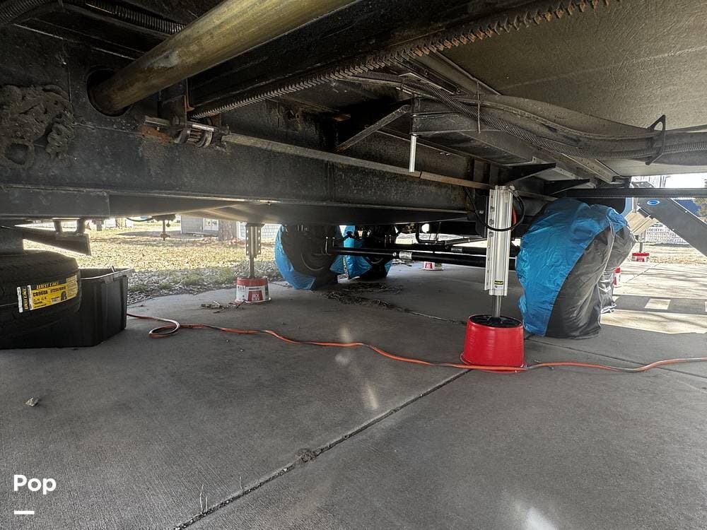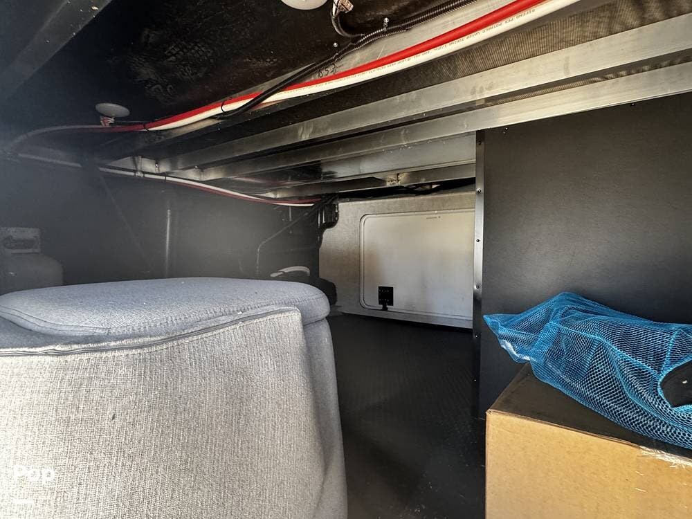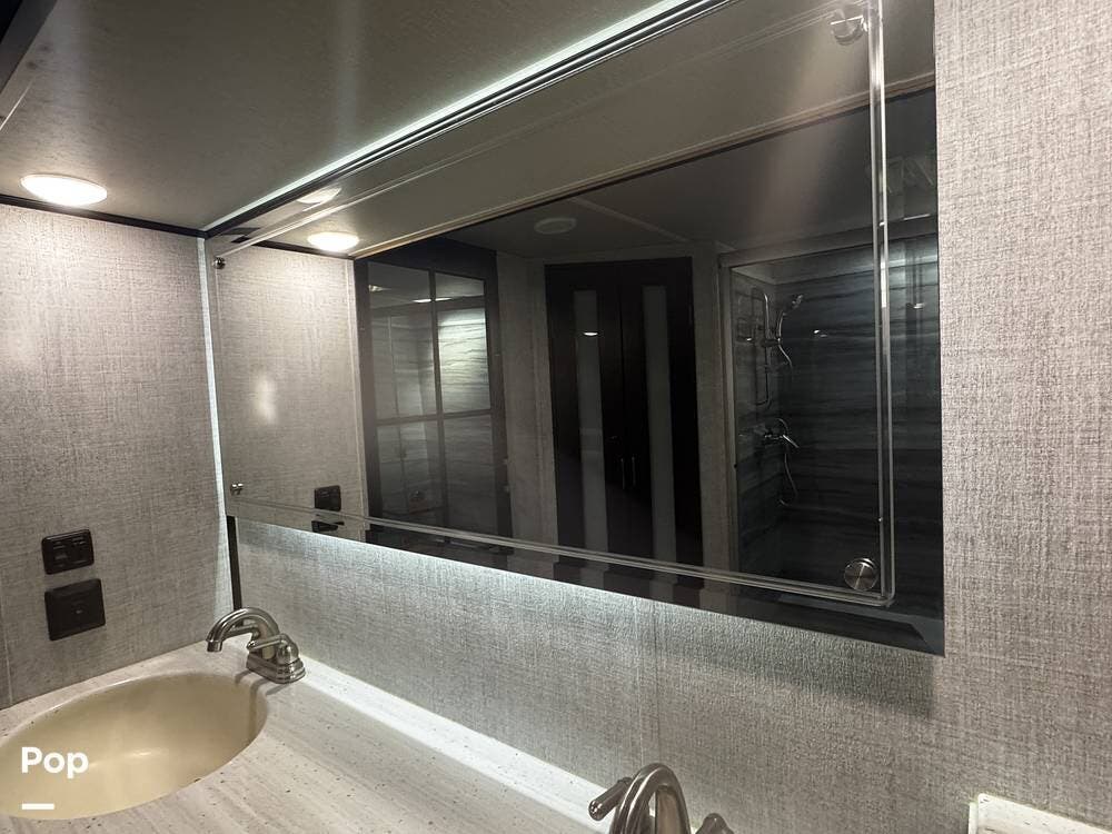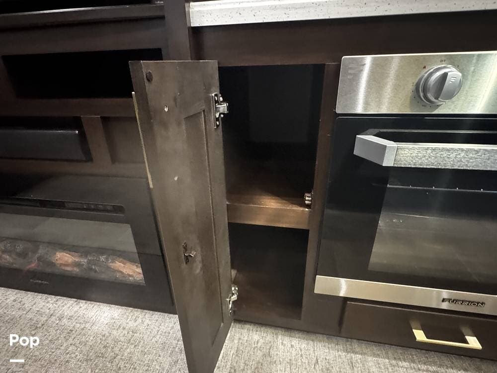 The RV features climate-controlled drop-frame pass-thru storage compartments, offering ample space for gear and essentials. Additionally, it is prepped for a rear-view camera and slide toppers, enhancing safety and convenience.