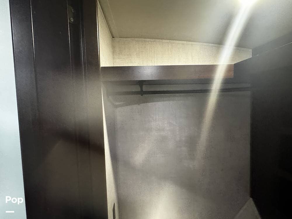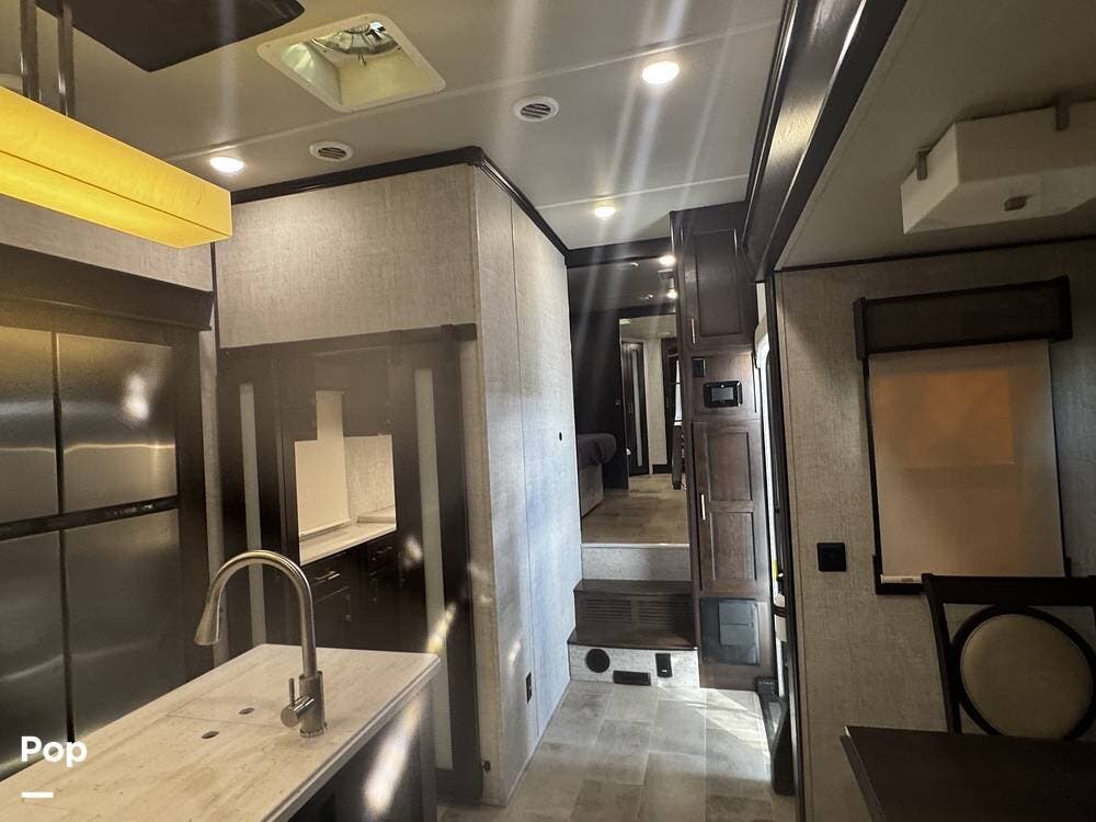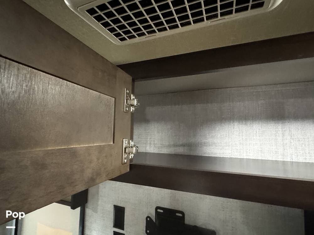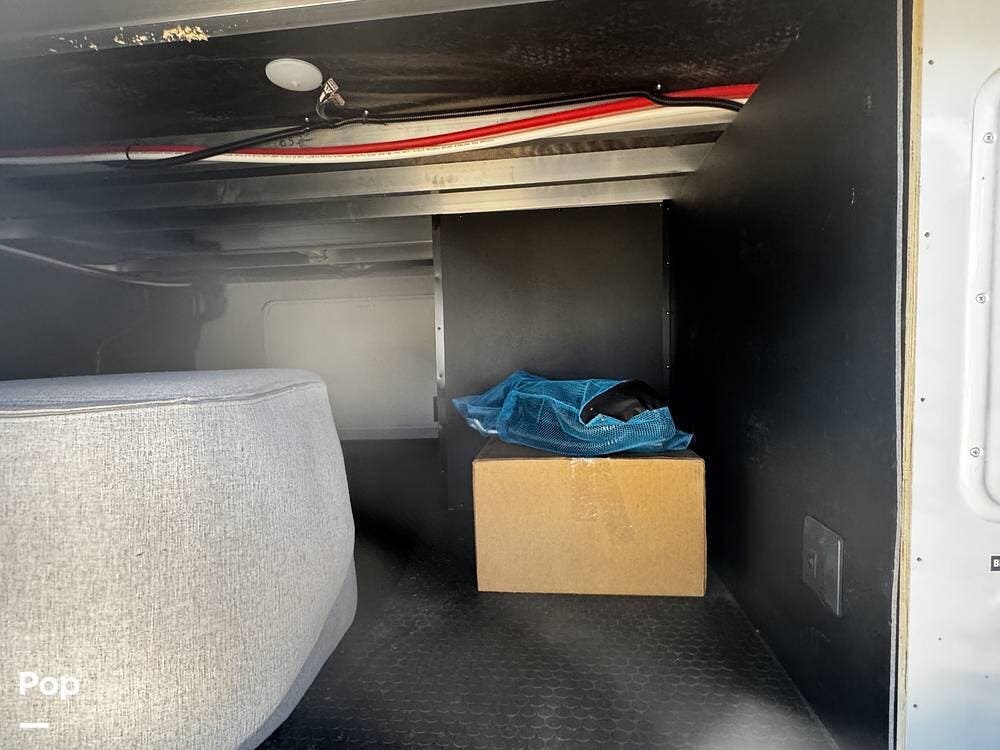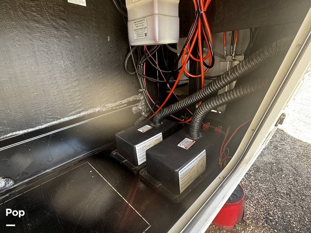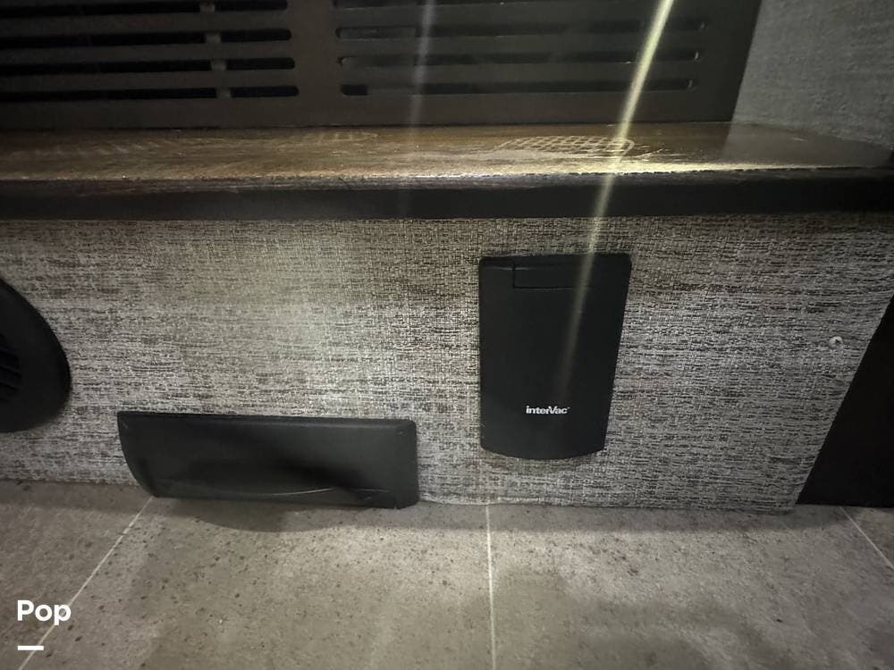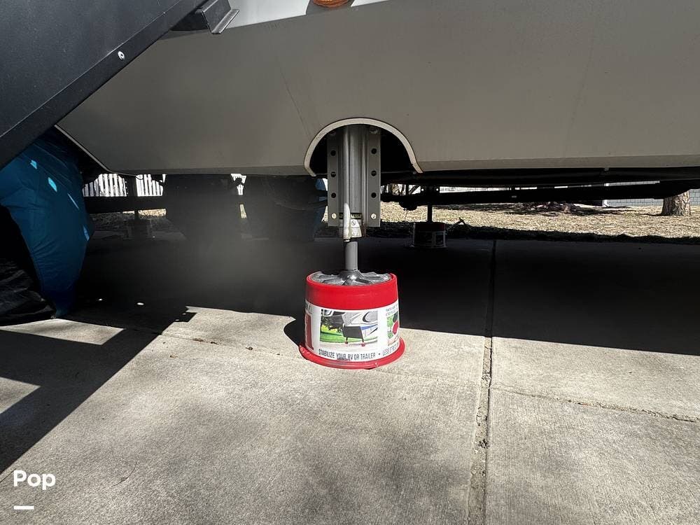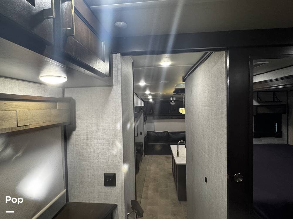 The RV features climate-controlled drop-frame pass-thru storage compartments, offering ample space for gear and essentials. Additionally, it is prepped for a rear-view camera and slide toppers, enhancing safety and convenience.
