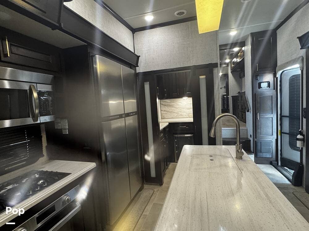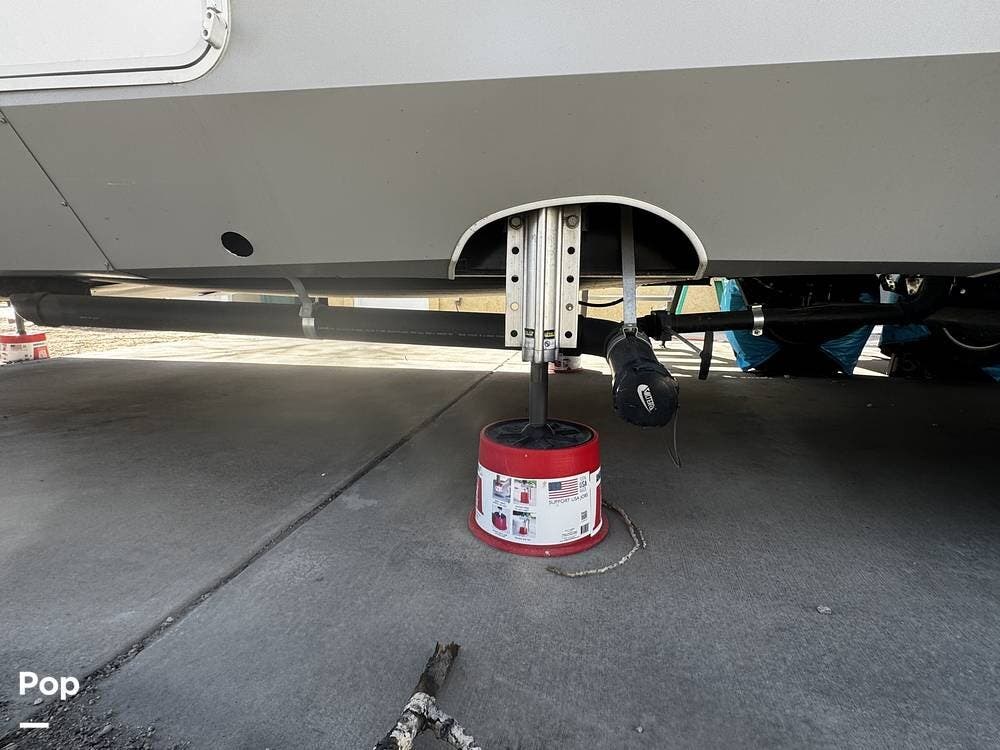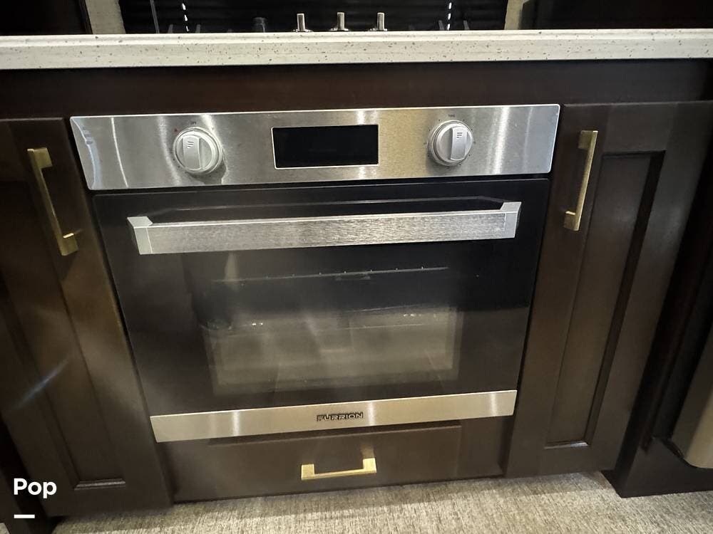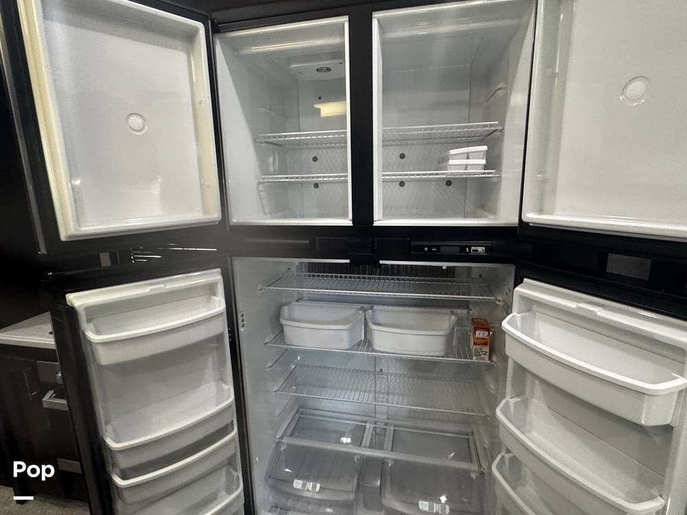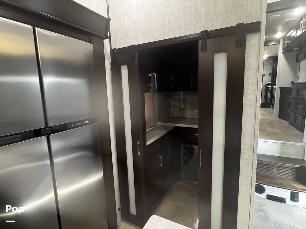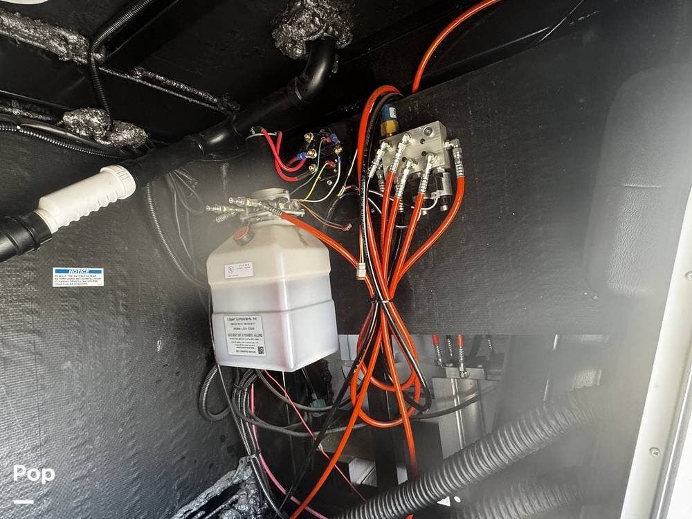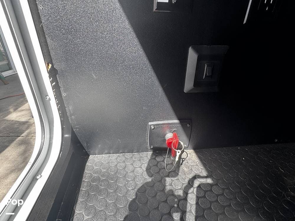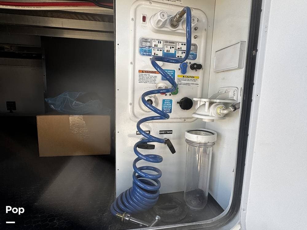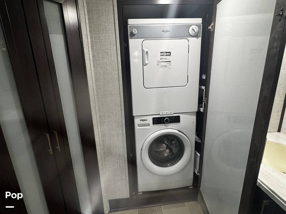 The RV features climate-controlled drop-frame pass-thru storage compartments, offering ample space for gear and essentials. Additionally, it is prepped for a rear-view camera and slide toppers, enhancing safety and convenience.