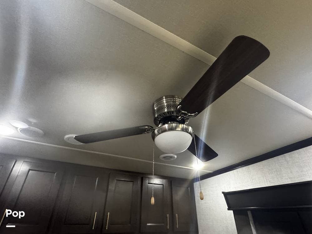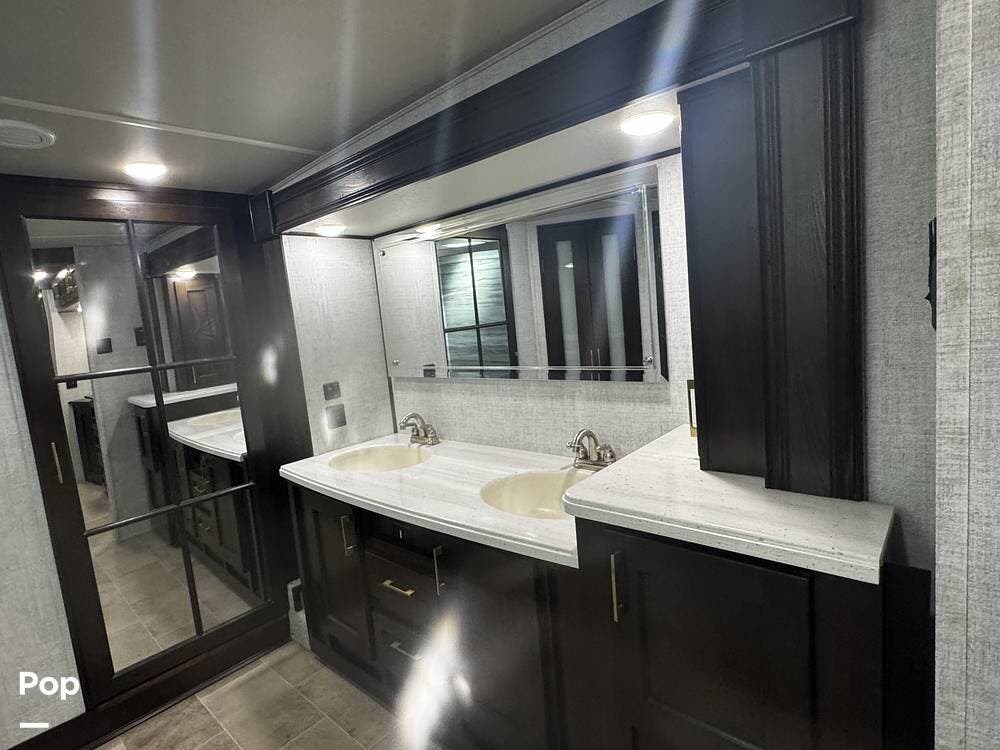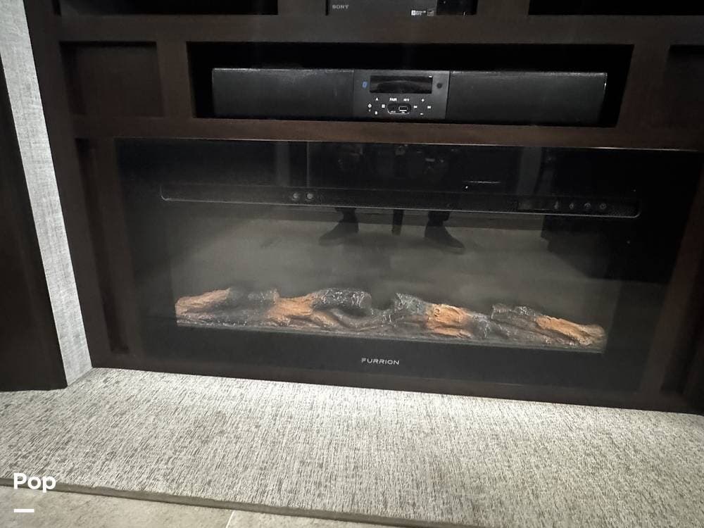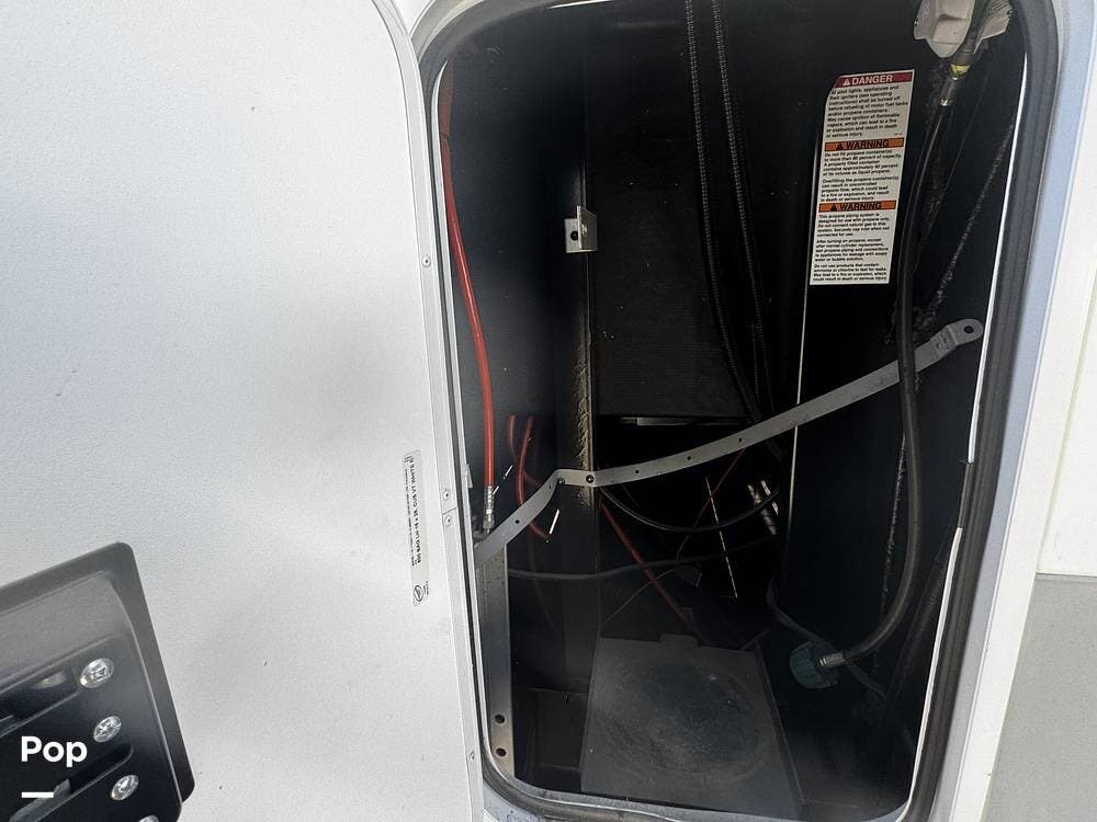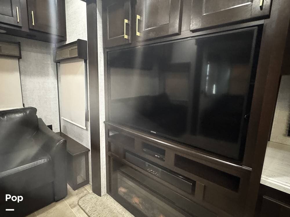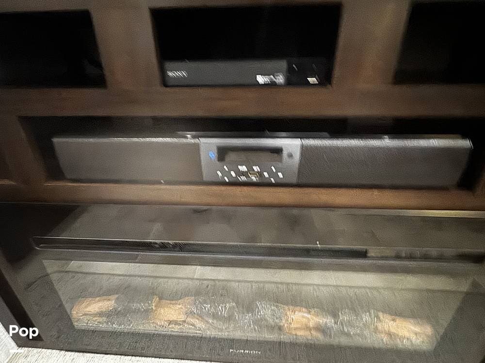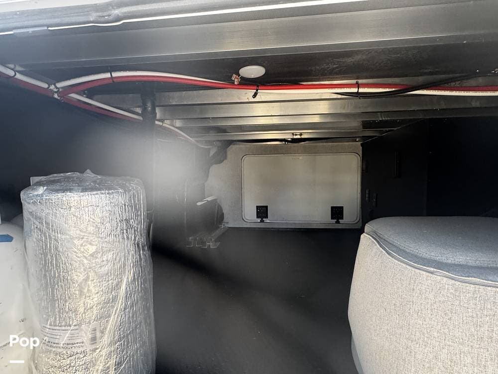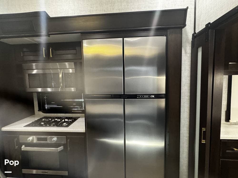 The RV features climate-controlled drop-frame pass-thru storage compartments, offering ample space for gear and essentials. Additionally, it is prepped for a rear-view camera and slide toppers, enhancing safety and convenience.