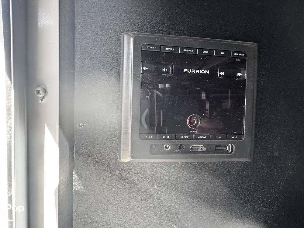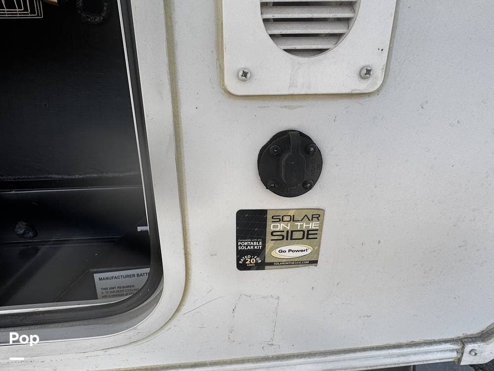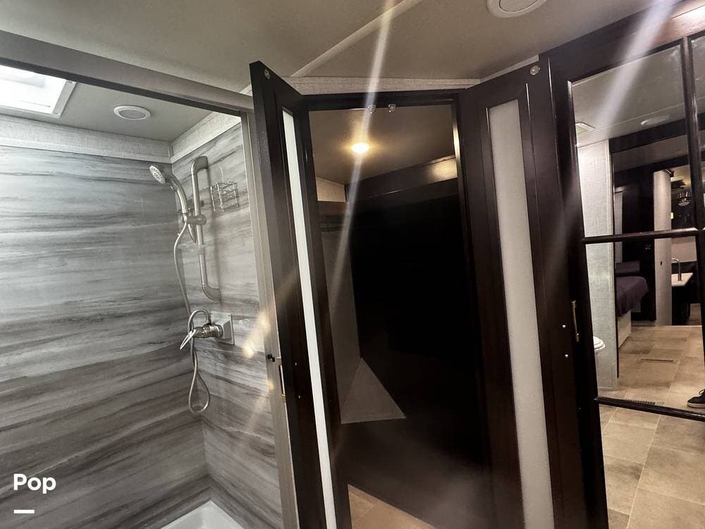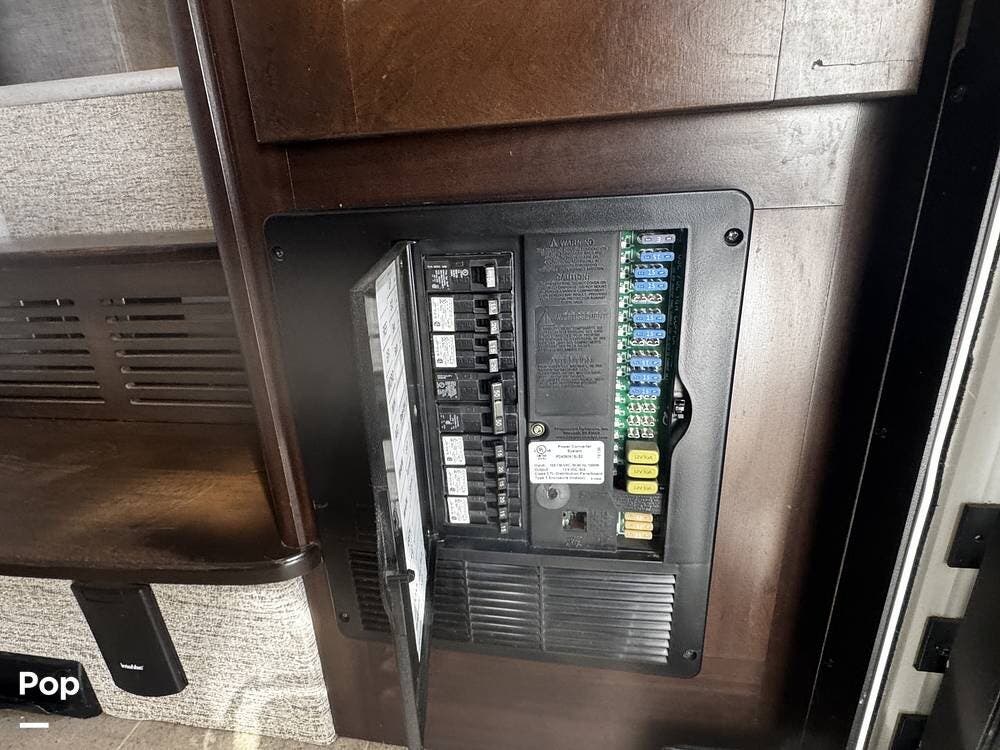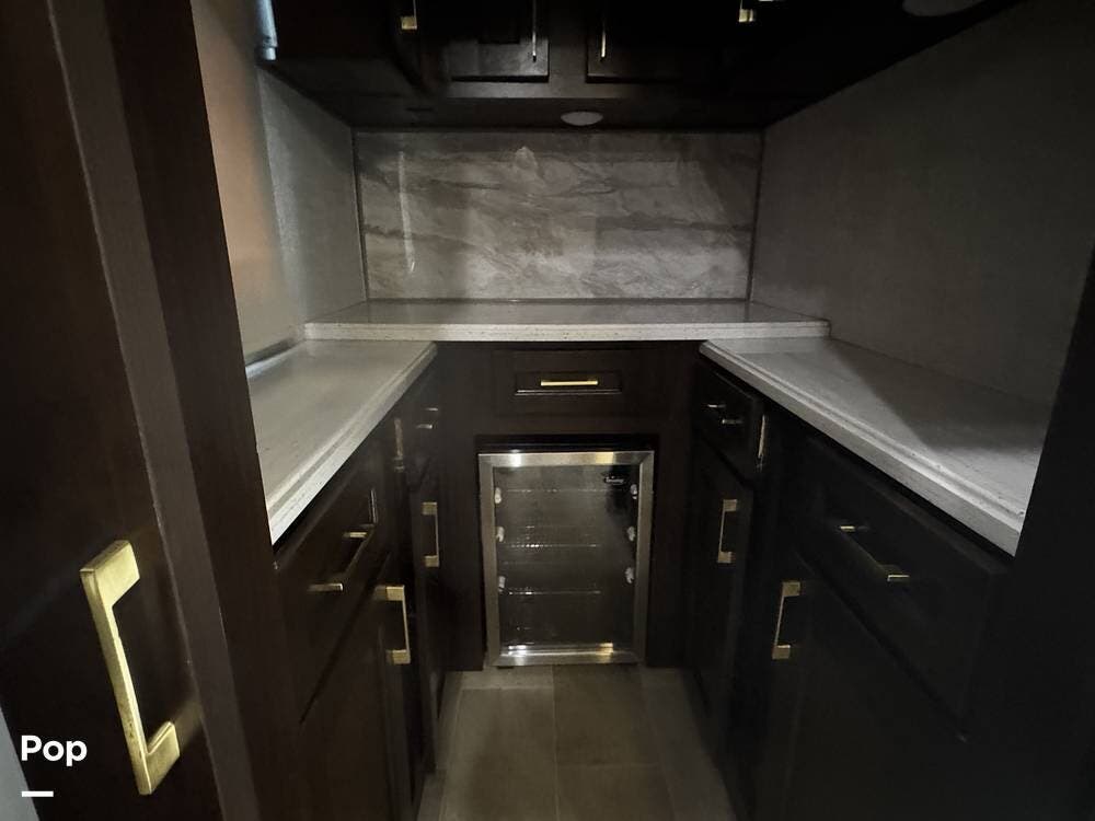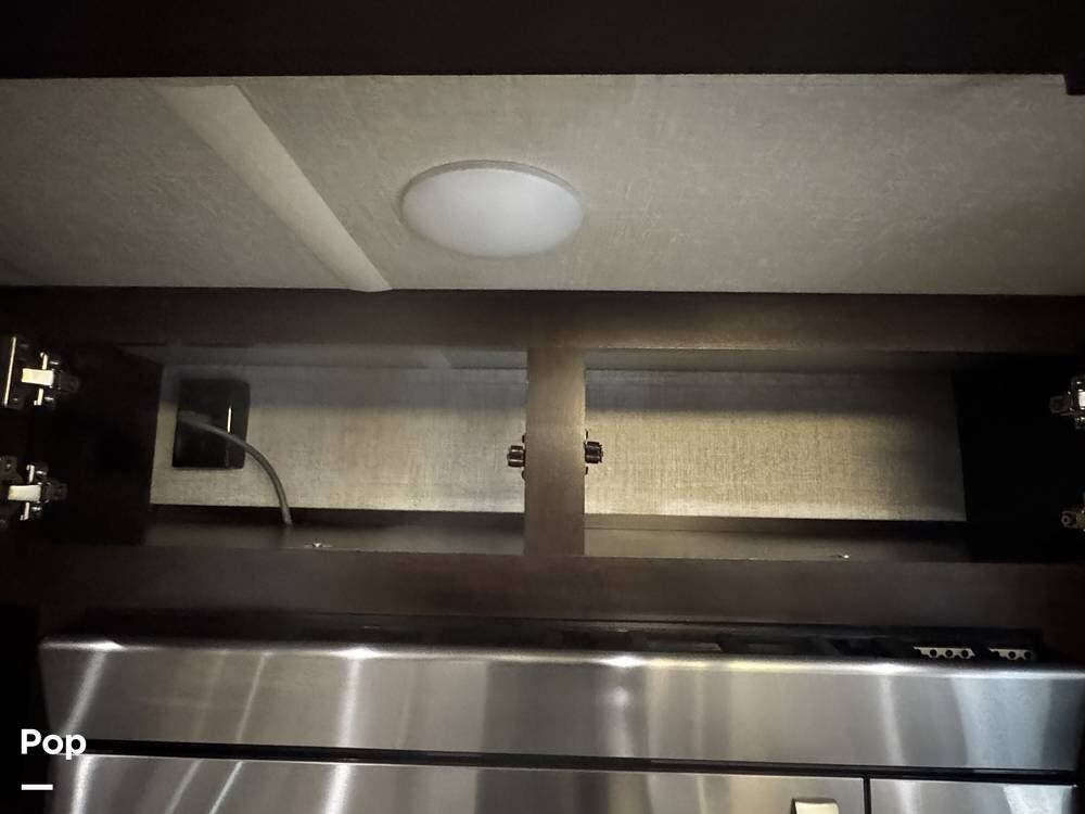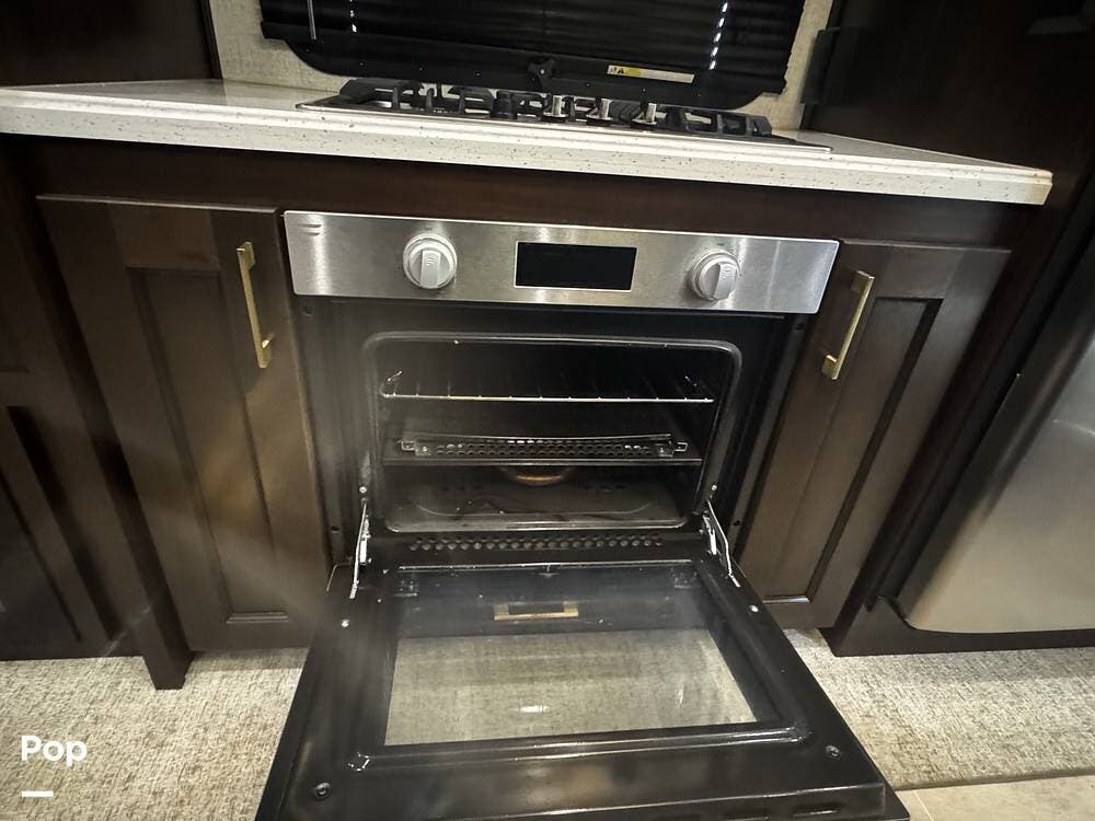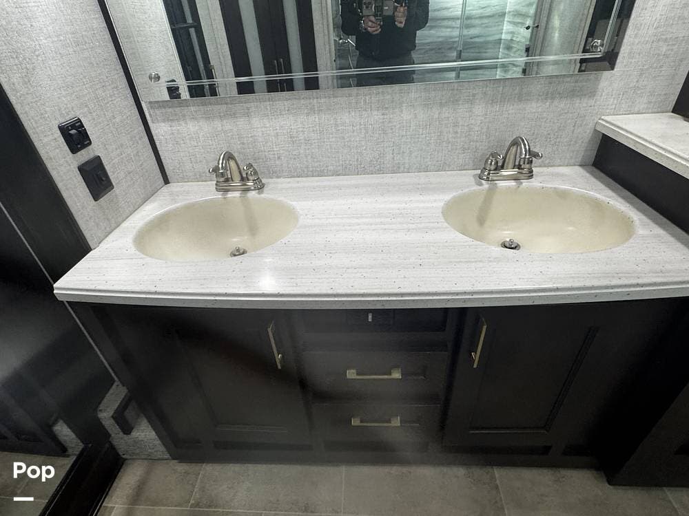 The RV features climate-controlled drop-frame pass-thru storage compartments, offering ample space for gear and essentials. Additionally, it is prepped for a rear-view camera and slide toppers, enhancing safety and convenience.