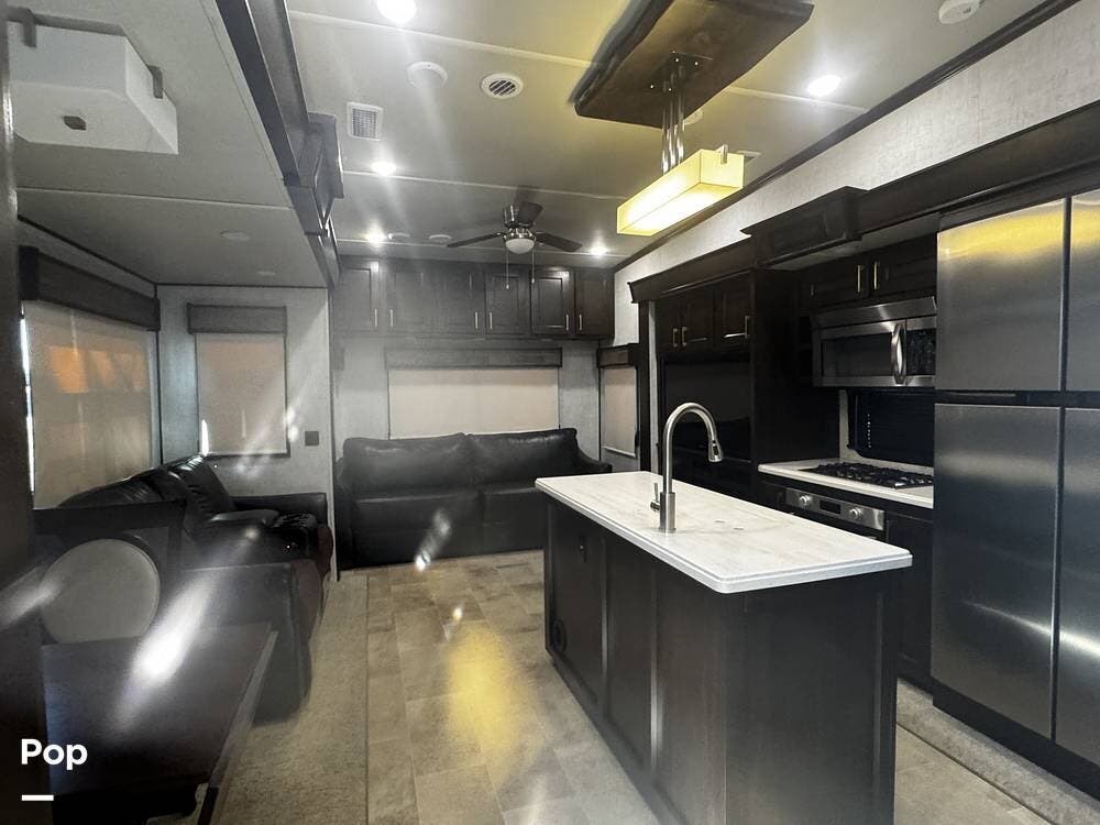 The 2020 Palomino Columbus 382FB is a luxurious fifth-wheel recreational vehicle designed to provide comfort and convenience for extended travels. It offers a spacious interior complemented by four slide-outs that expand the living space significantly.