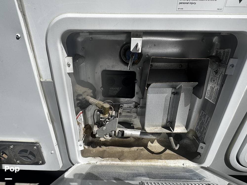 The RV has a 15,000 BTU air conditioner and a 35,000 BTU automatic heater, ensuring comfort in various climates.