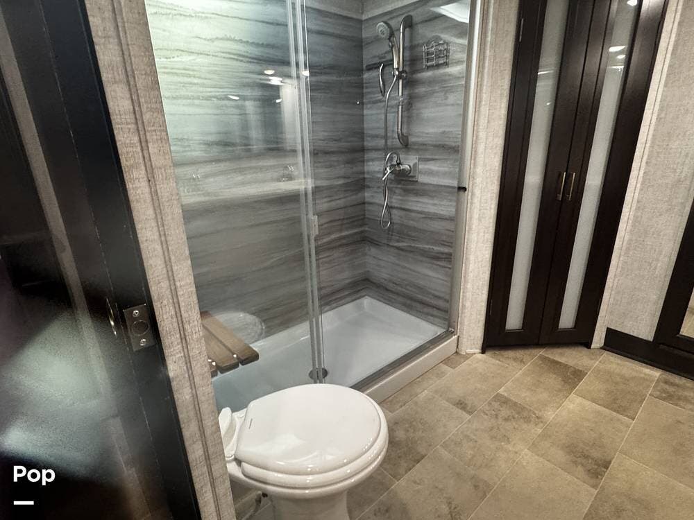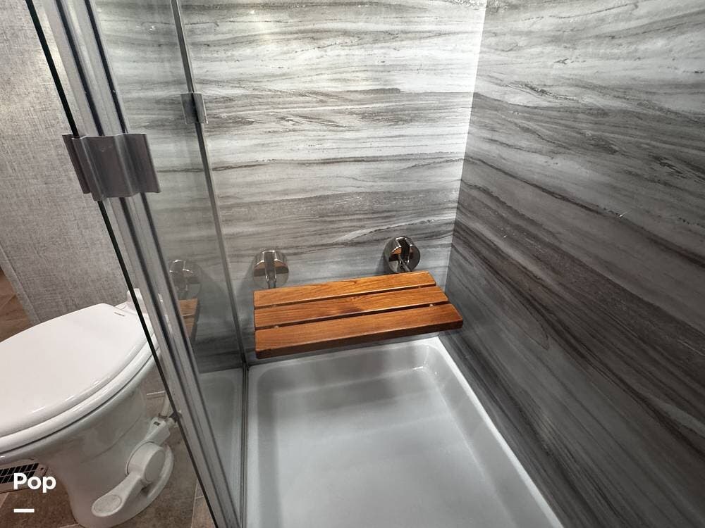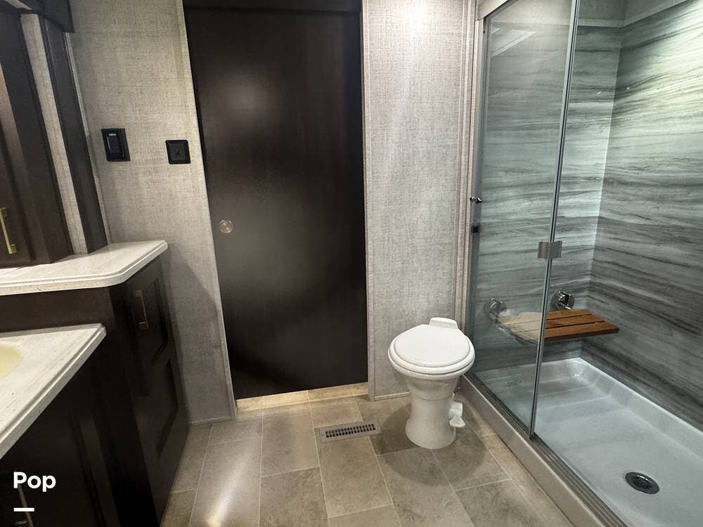 The front bathroom features a 60" x 30" walk-in shower with a dome, offering a spacious and comfortable bathing experience.