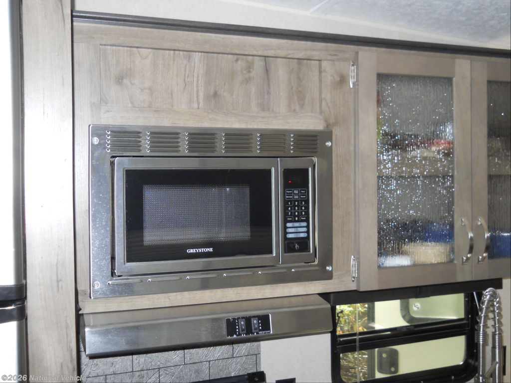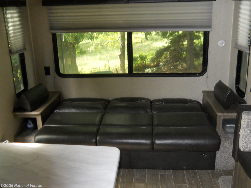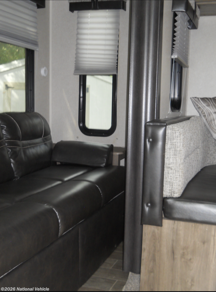 Step inside and you?ll find a welcoming living area with a slide-out that opens up the space for relaxing or entertaining. The jackknife sofa and dinette provide plenty of seating, while large windows bring in natural light to brighten the interior. The kitchen comes fully equipped with a three-burner range, oven, microwave, a large deep stainless steel sink, refrigerator, and abundant storage for all your cooking essentials.