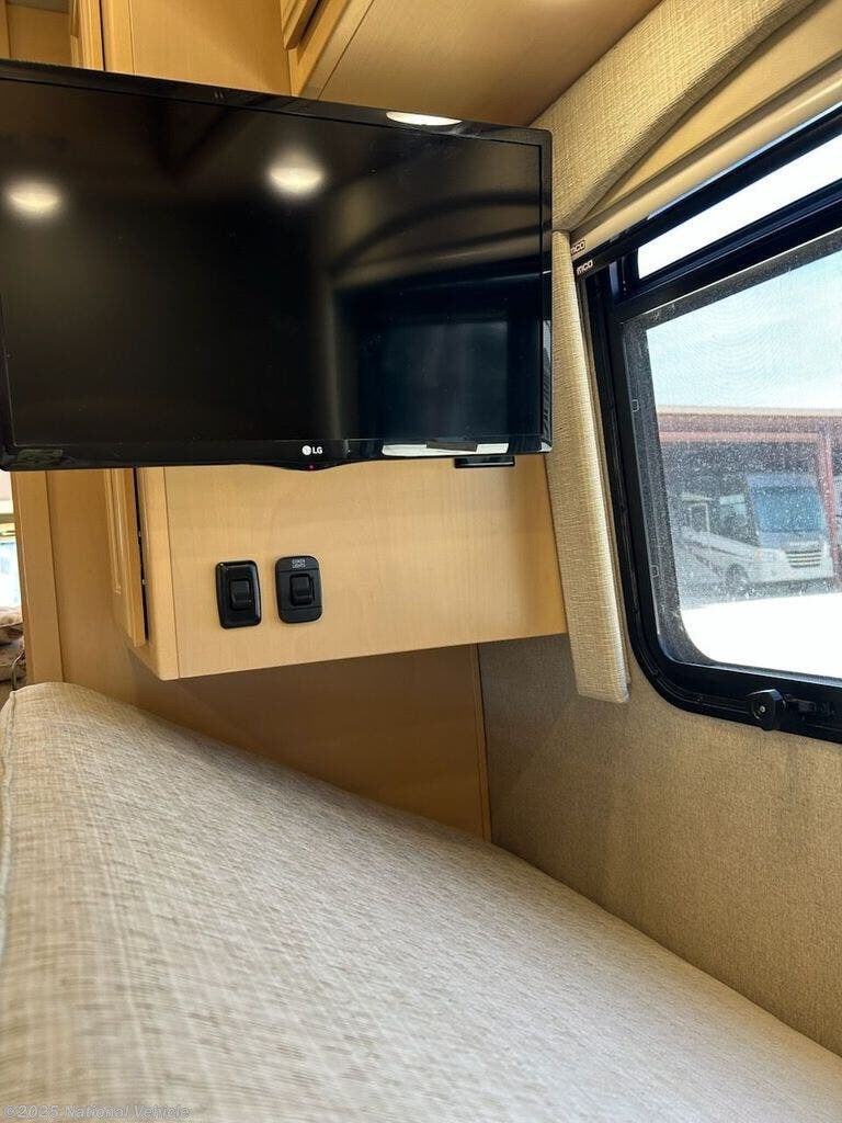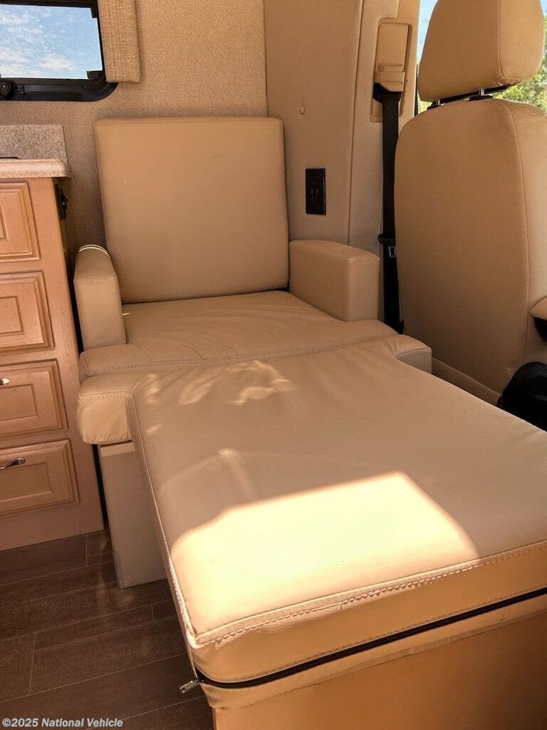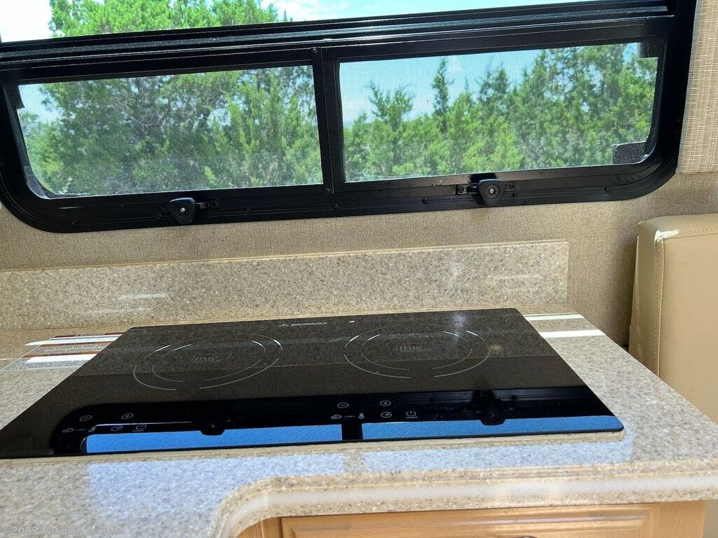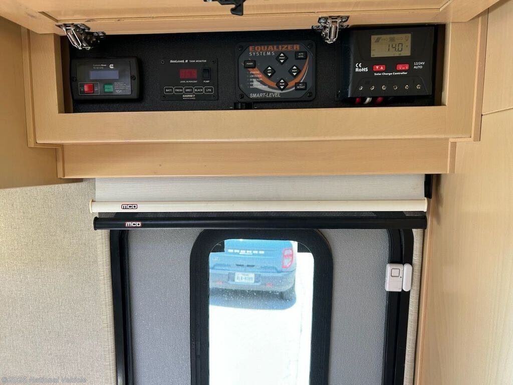Major upgrades include: 3.2 KW Onan diesel genset, auto hydraulic leveler, 400 W solar panels and controller, windshield/door shade system, macerator with touch pad control, 3000 W inverter, surge protector, keyless entry, safe, blind spot cameras, rain sensor-controlled galley vent fan, 2 burner induction cook top and microwave/convection oven.