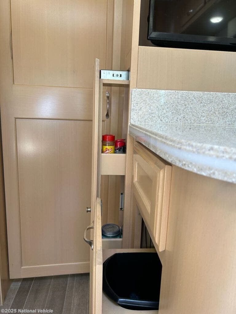 The 25TB trim level is sophisticated and convenient offering either twin or king size bed configurations. The bright interior features decorator touches including wood-like linoleum flooring, vinyl wallpaper, roller shades with valences, matching upholstery/doors/dash/driving area/cabinetry/corian countertops in pleasant earth tones.