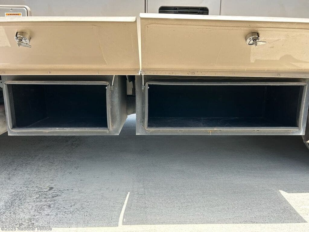 Drive-away ready for your next RV adventure to warm weather destinations this winter. Just add groceries and beverages. Lots of storage space inside and out. Everything else is already on-board including kitchenware, maintenance supplies, connection gear for city water, shore power, sewer, cable TV and a full diesel tank!