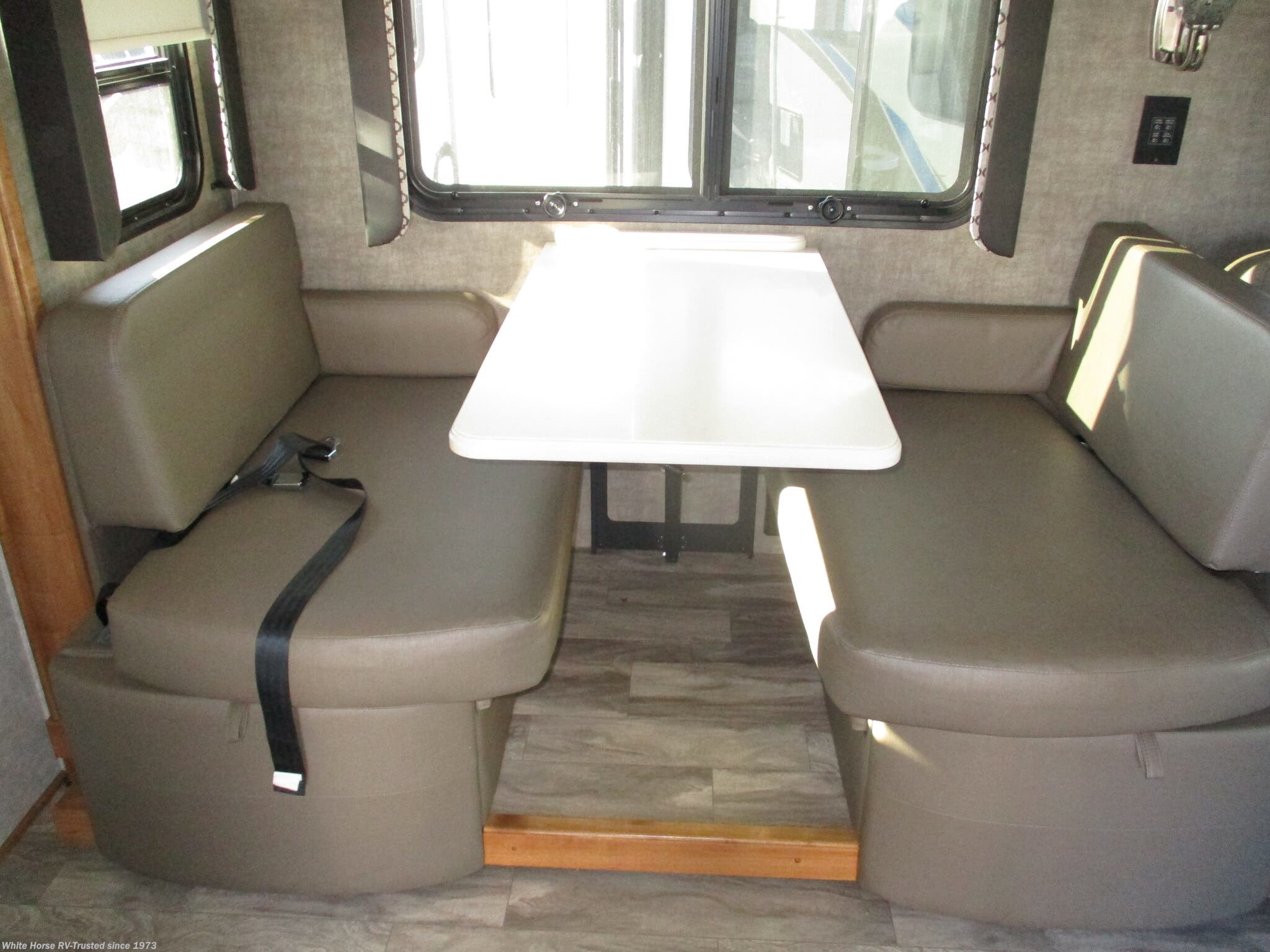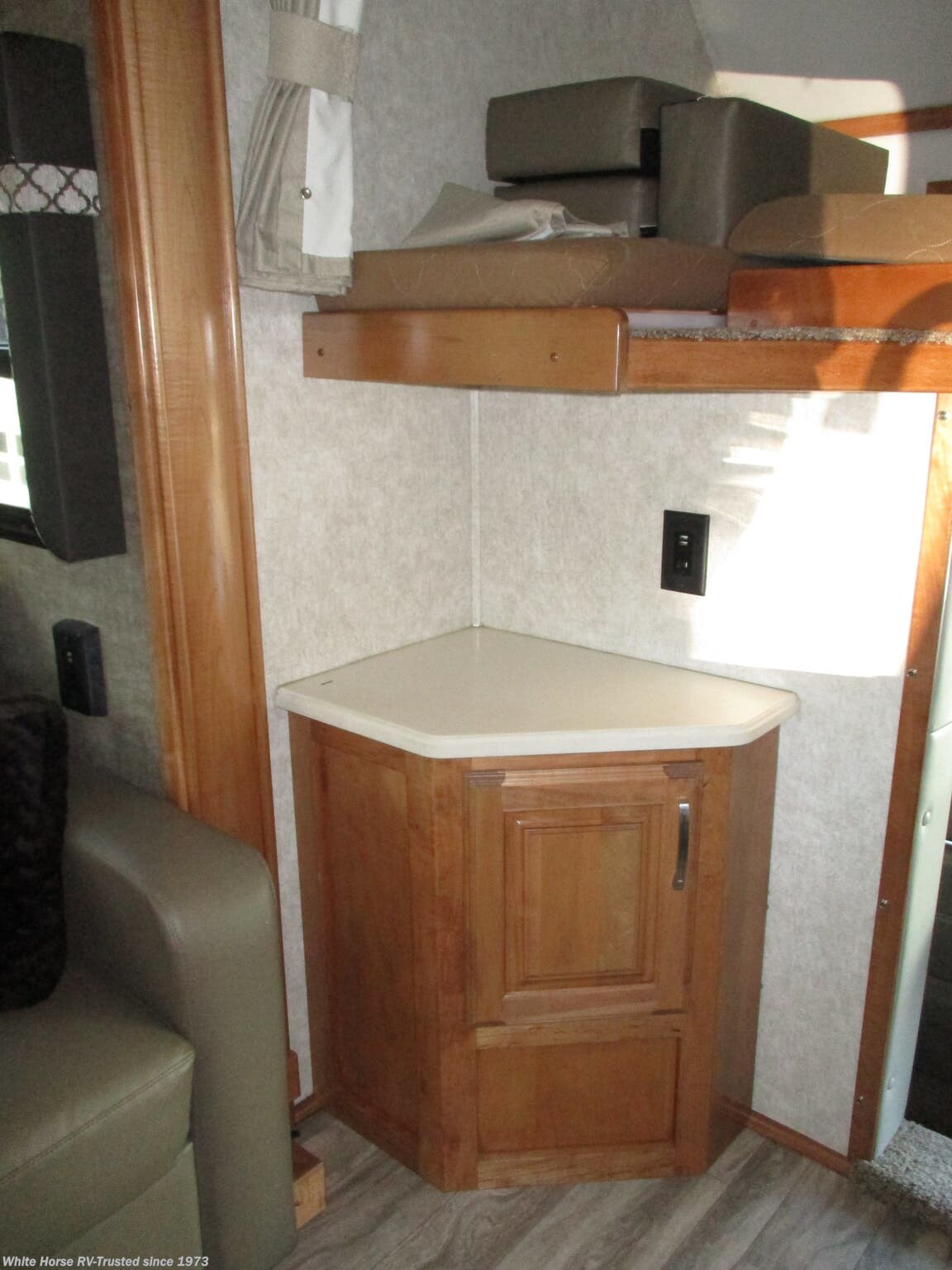 Booth Dinette, Dinette Bed, Glass Shower Door, Medicine Cabinet, Overhead Cabinetry, Queen Bed, Self Contained, Sofa Bed, Solid Surface Countertops, Wardrobe(s)