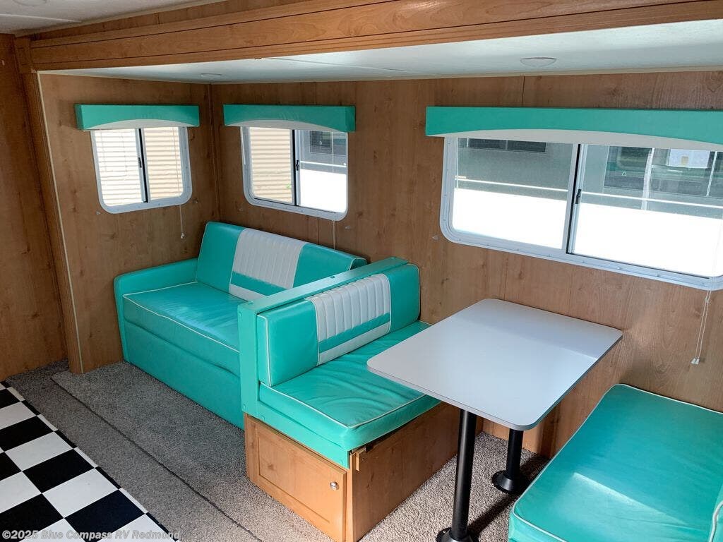 If you have been searching for a sleek travel trailer, look no further because this Retro travel trailer has you covered. You will love the rear private bedroom which allows you to have a bit more privacy, and the walk-through bath is a nice size so that you don't need to worry about small places to change in or get ready for the day. The sofa and booth dinette can be used for relaxing, playing games, or sleeping on at night.