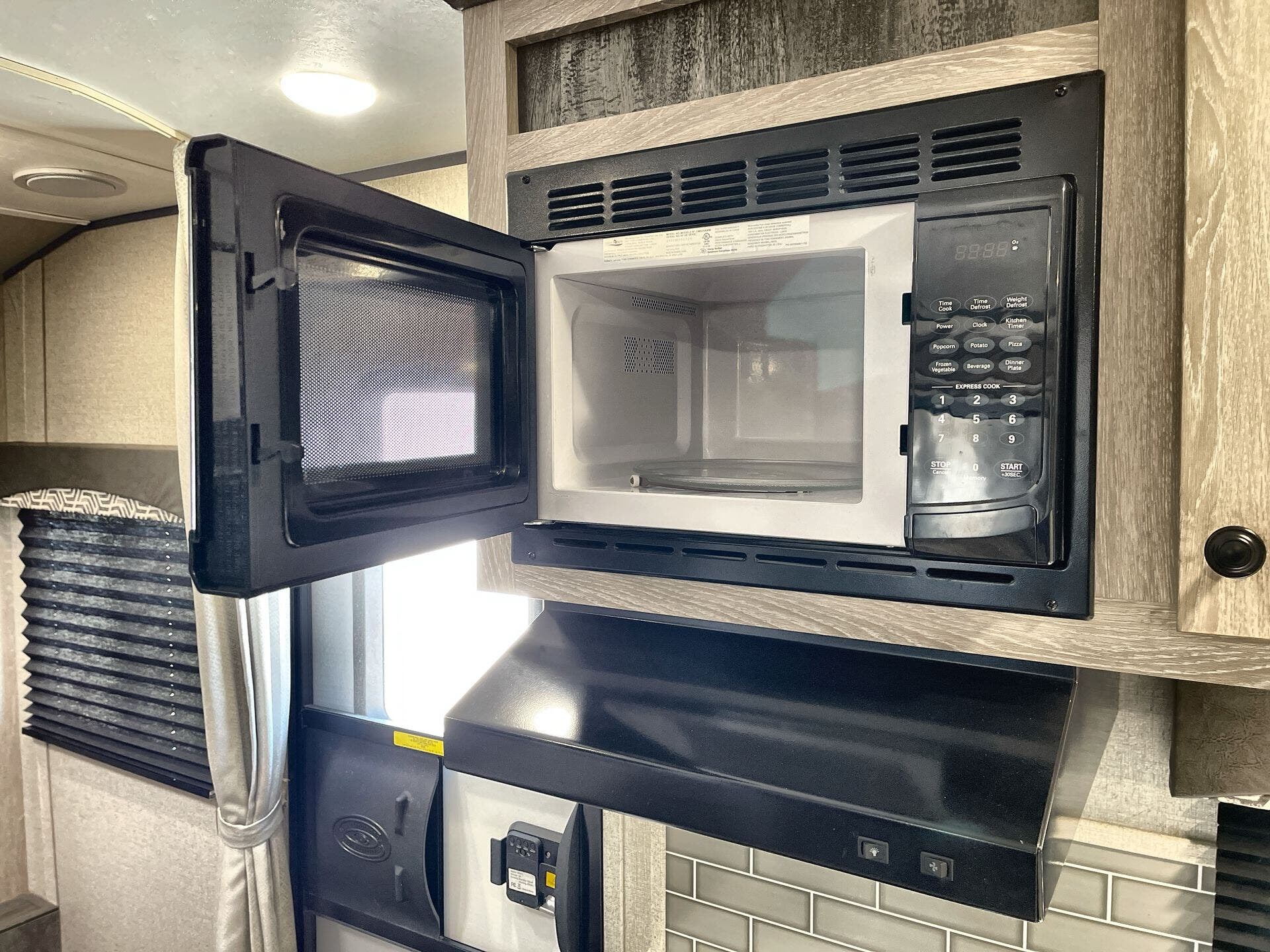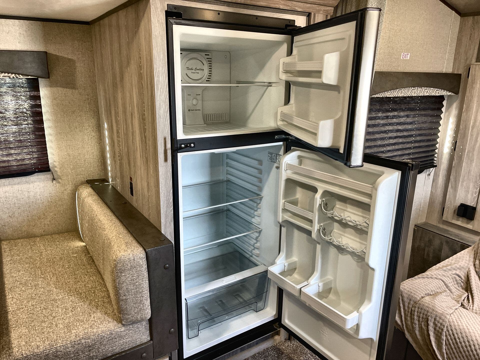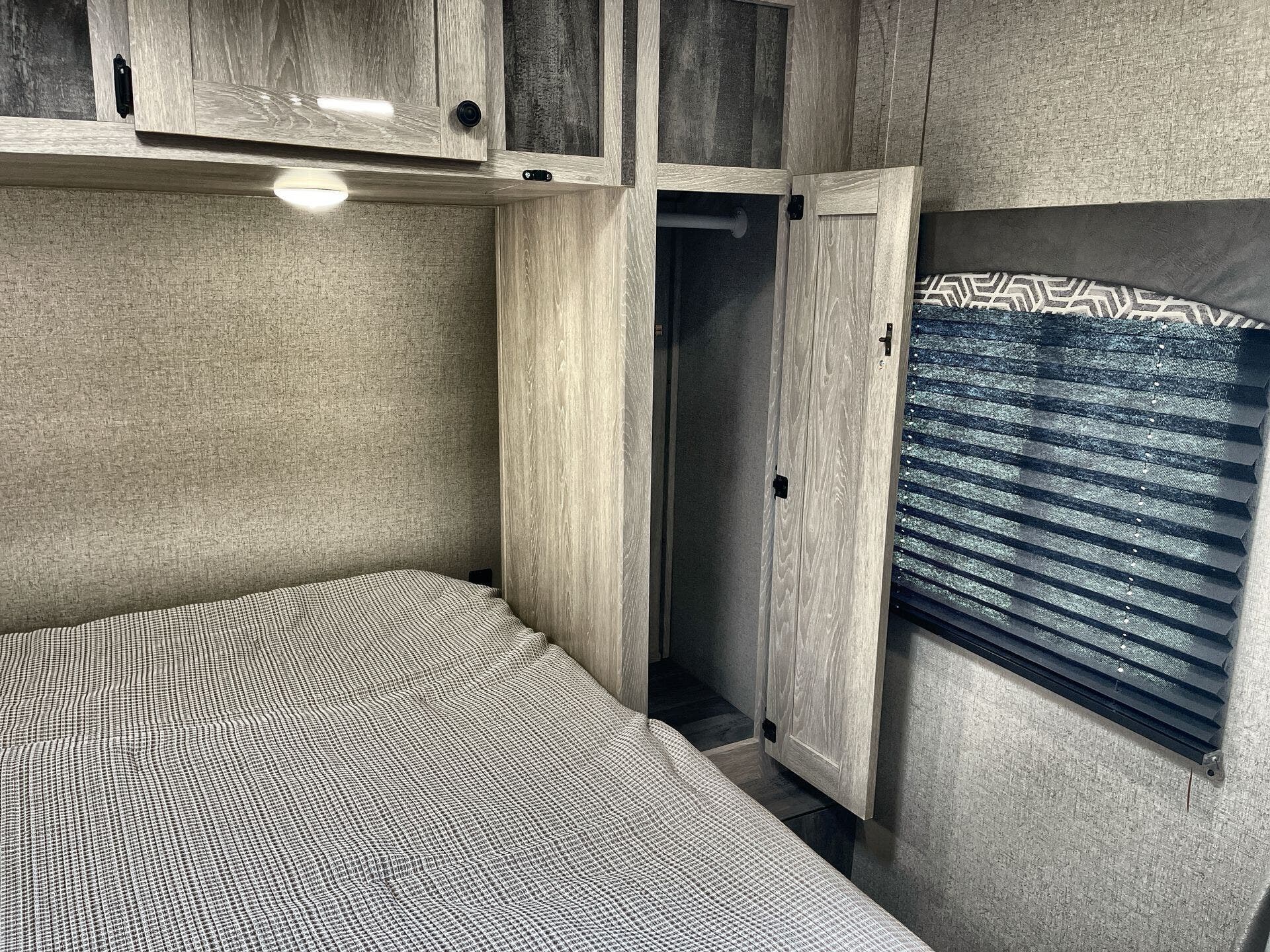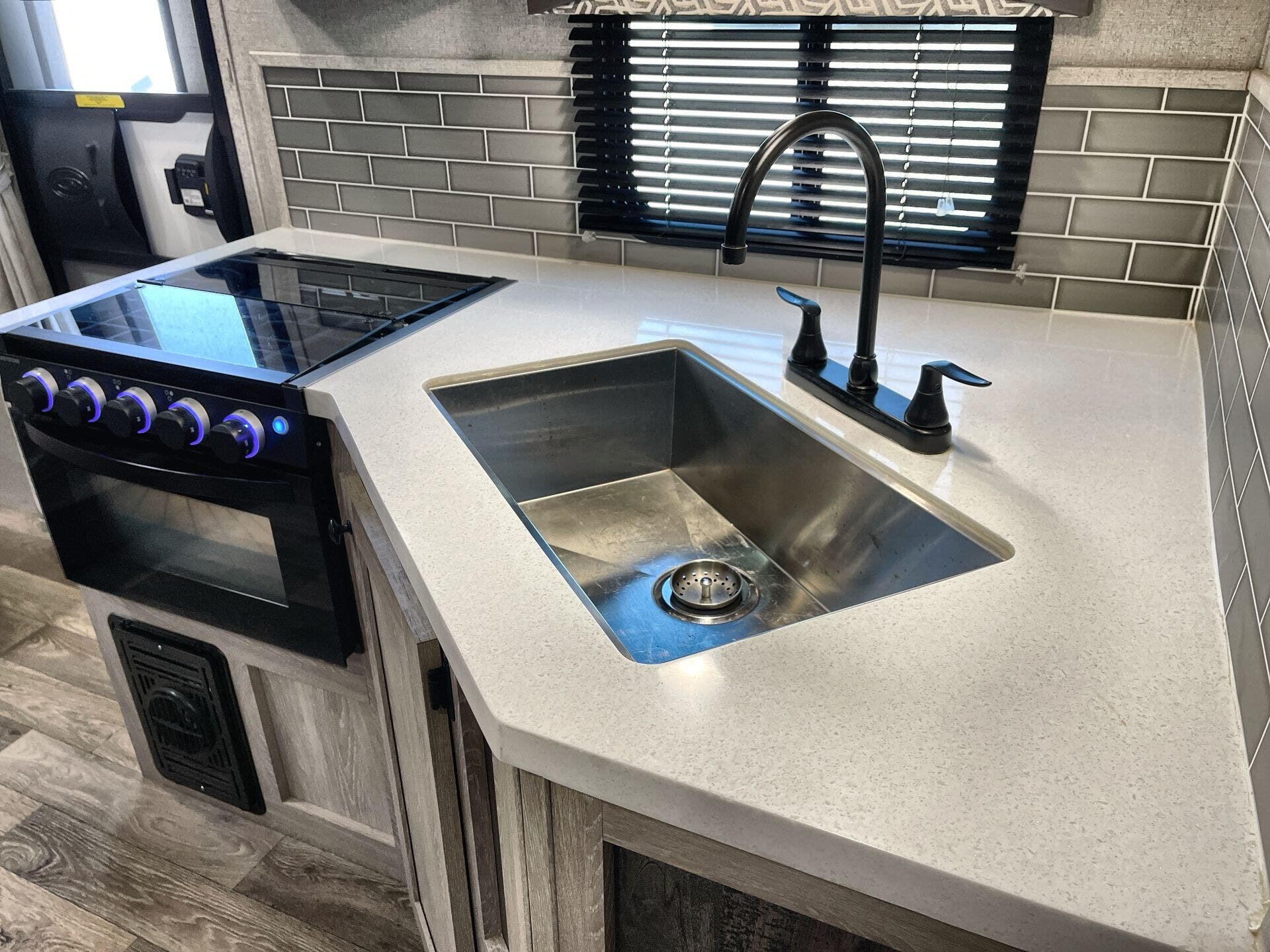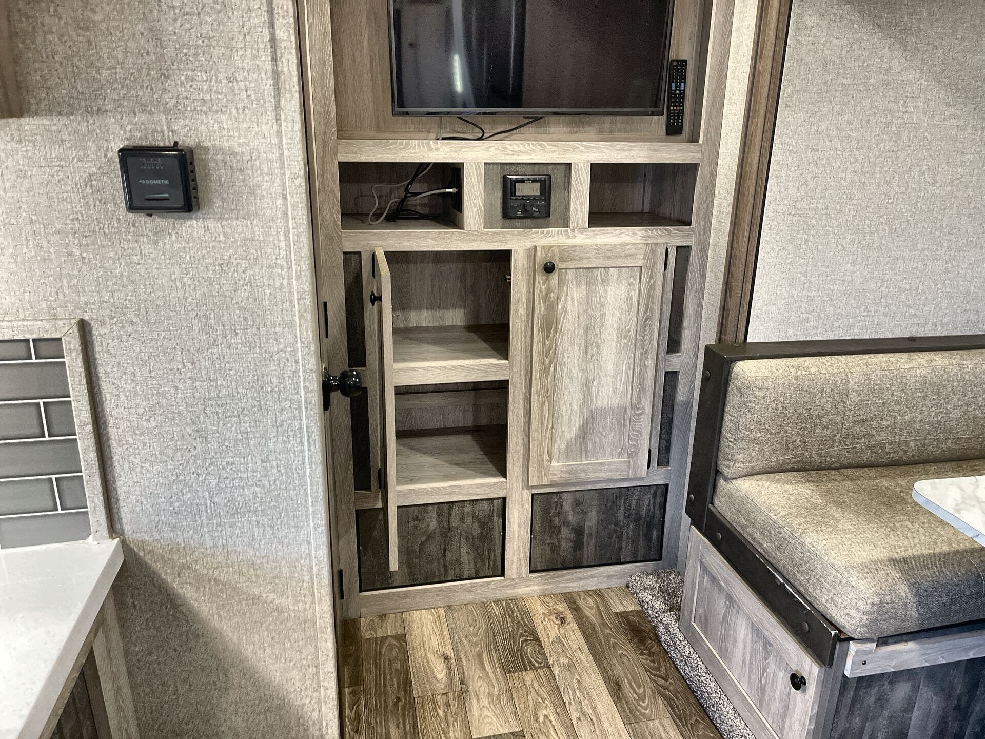 The Riverside Retro focuses on practical comfort and reliable safety for every trip. The combination of a well-equipped kitchen, a comfortable sleeping area, and a rear entertainment zone makes this trailer ideal for couples or small families who want a stylish, affordable RV option that’s easy to tow and easy to enjoy. The single slideout broadens the mid living area, enhancing dining and relaxation space while keeping everything within reach for a warm, home-like campground experience.