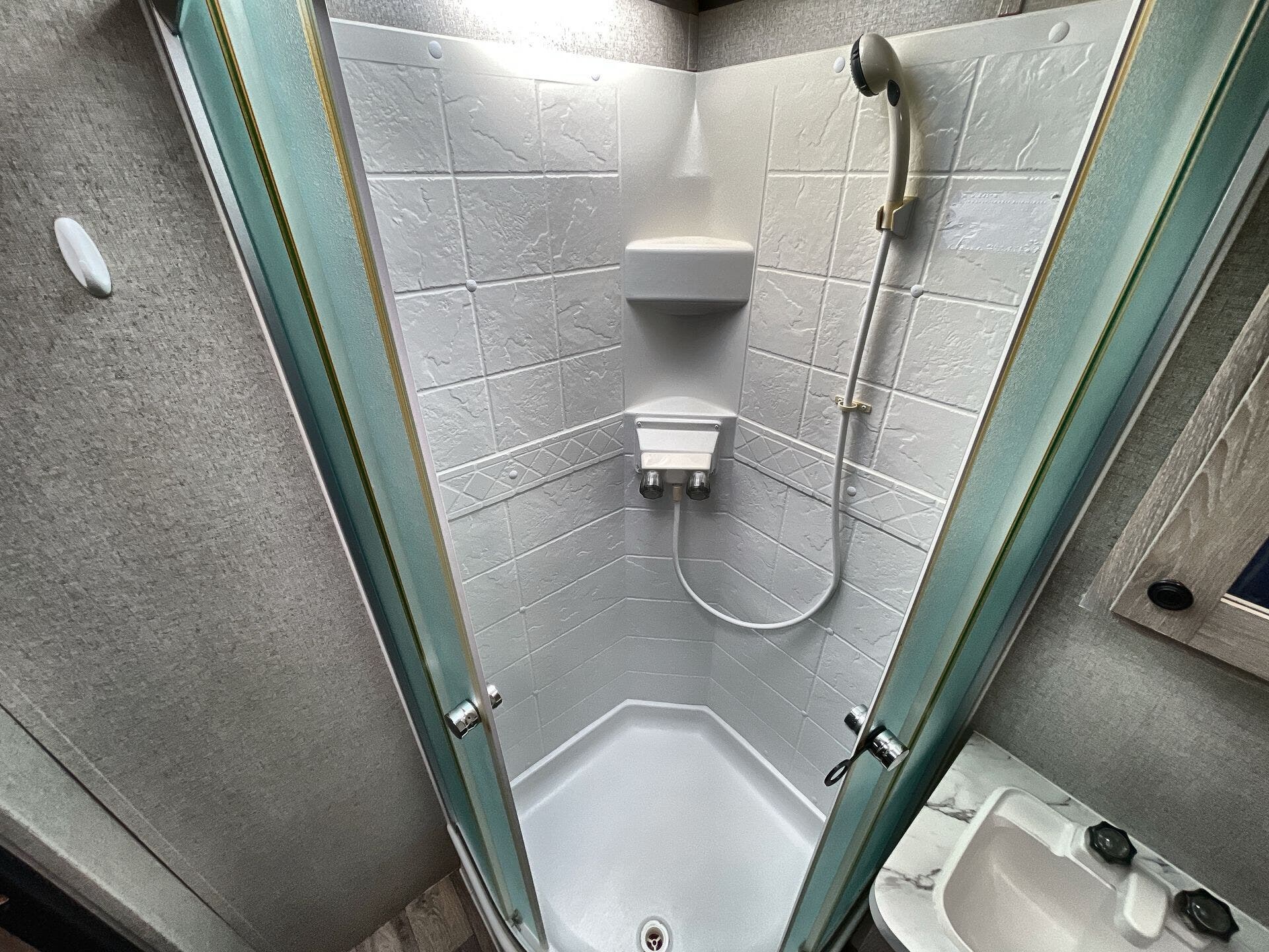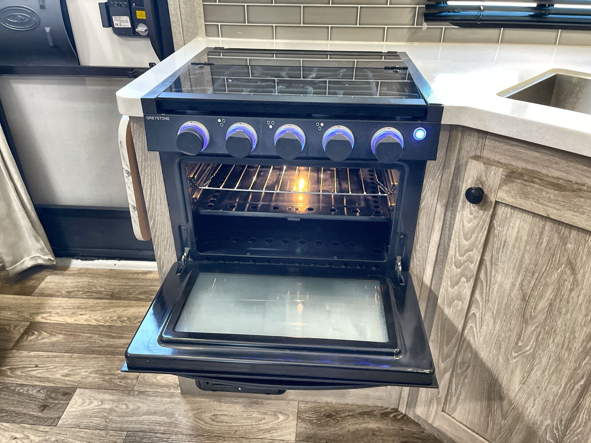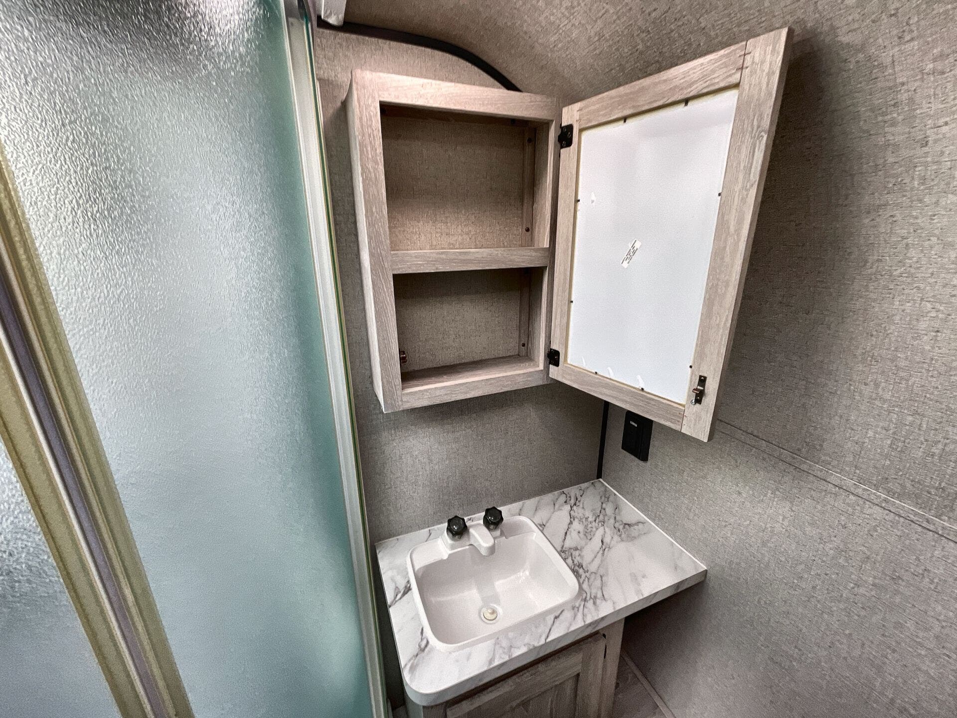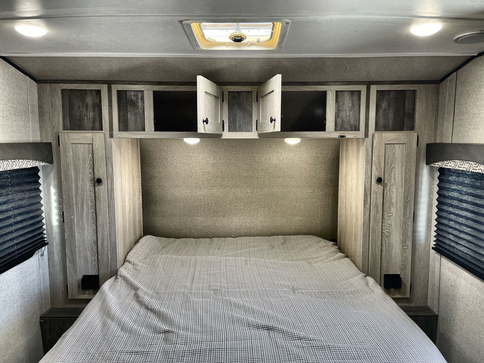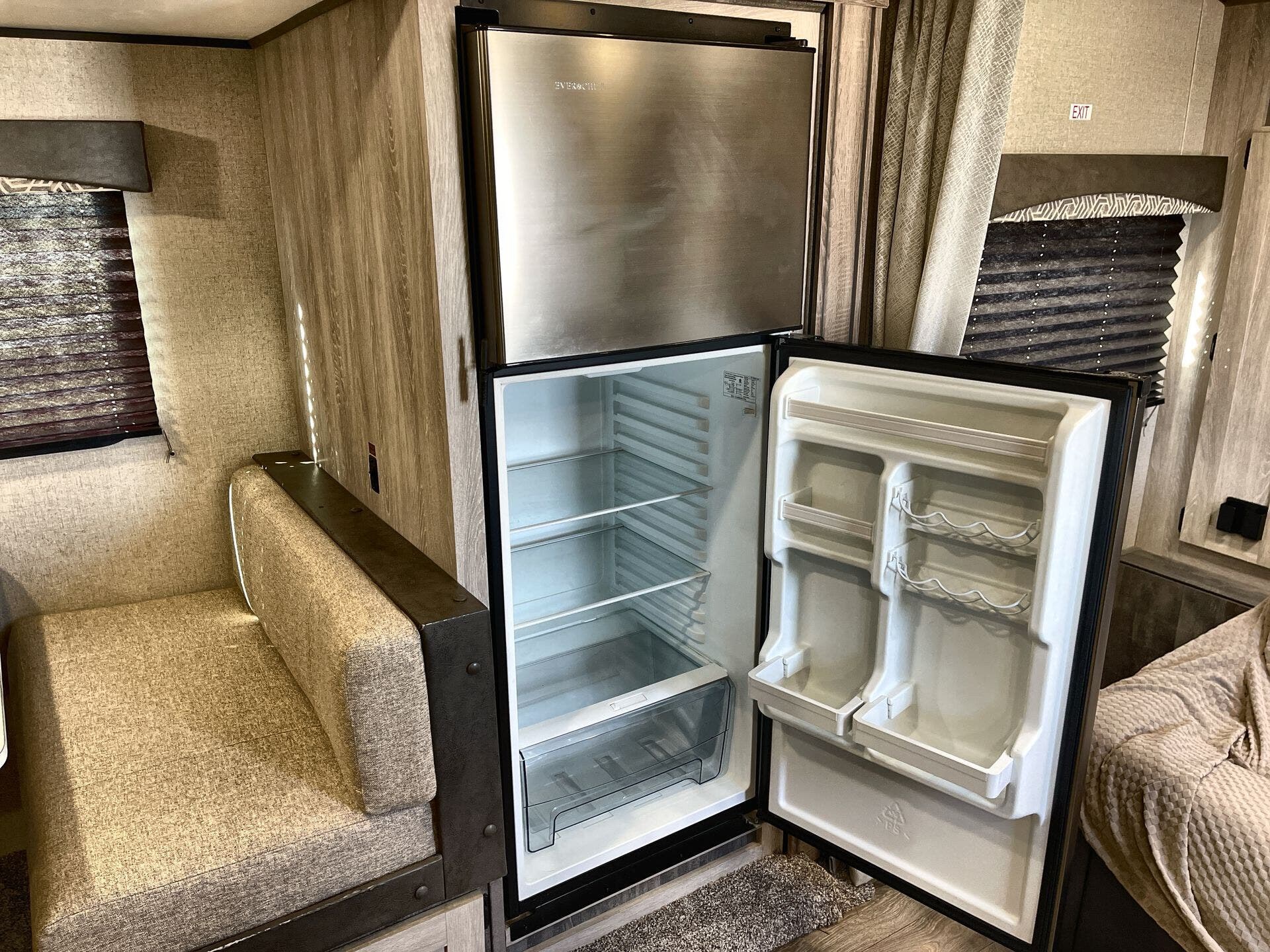 The Riverside Retro focuses on practical comfort and reliable safety for every trip. The combination of a well-equipped kitchen, a comfortable sleeping area, and a rear entertainment zone makes this trailer ideal for couples or small families who want a stylish, affordable RV option that’s easy to tow and easy to enjoy. The single slideout broadens the mid living area, enhancing dining and relaxation space while keeping everything within reach for a warm, home-like campground experience.