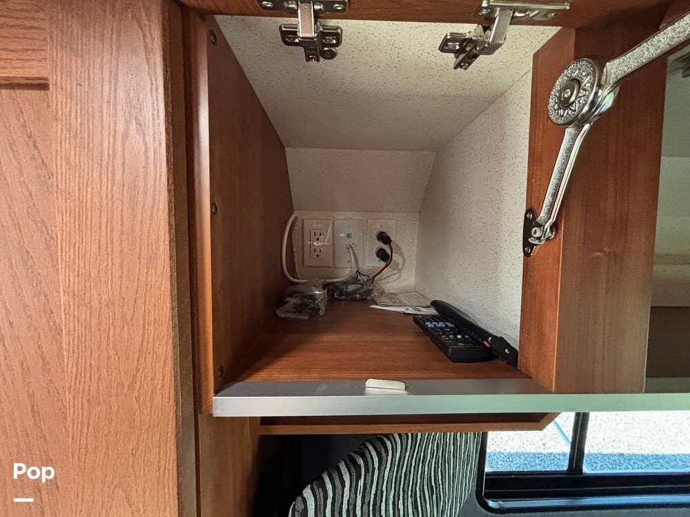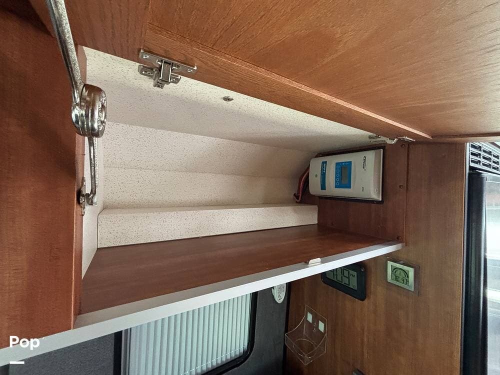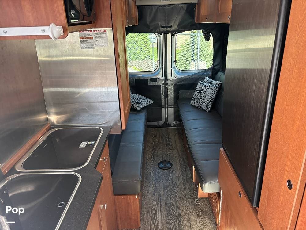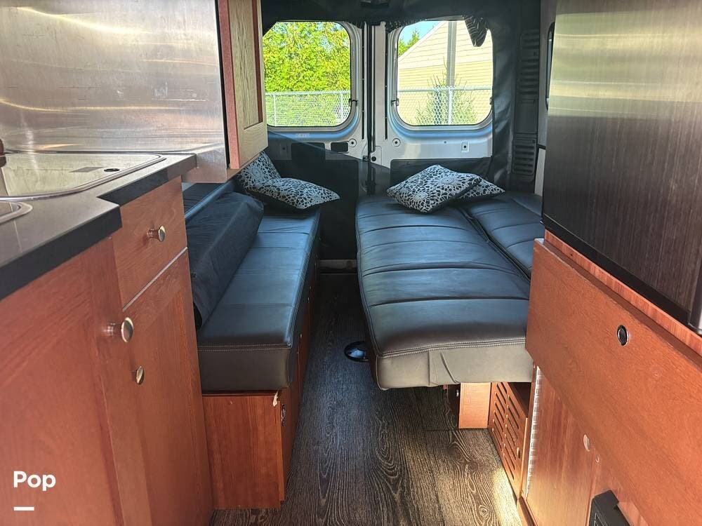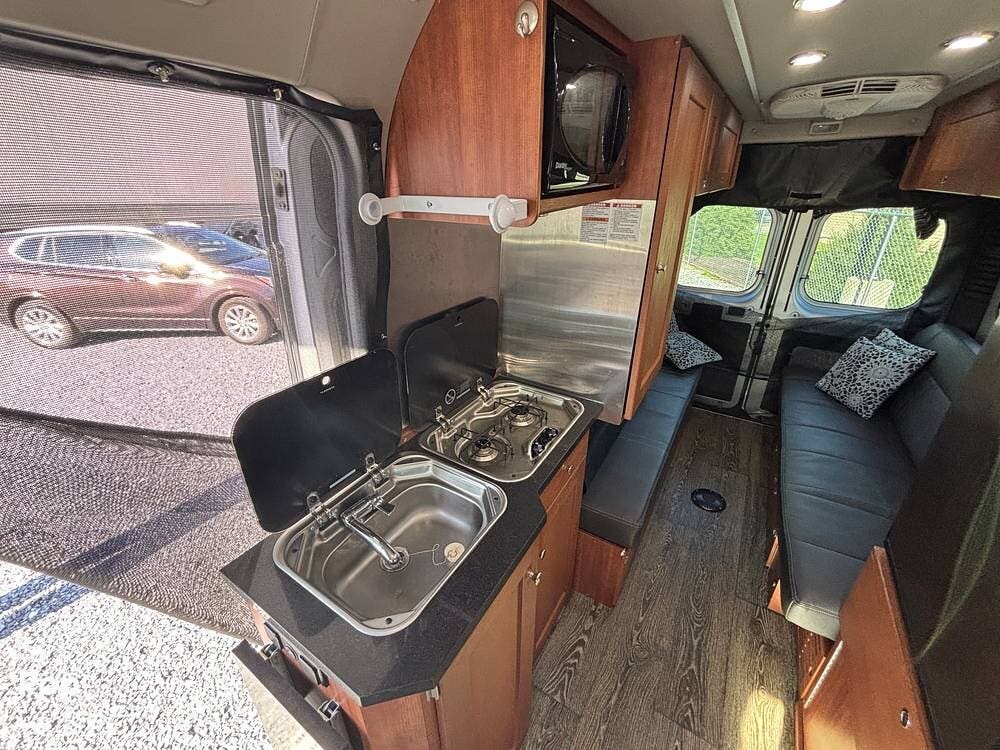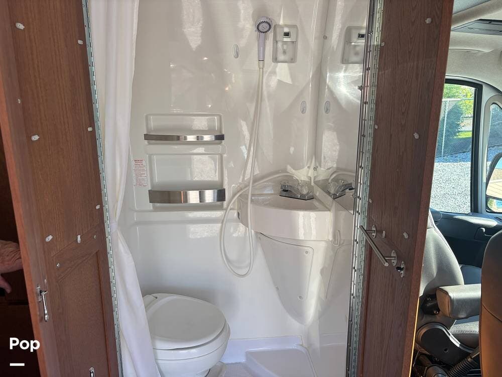 A fully enclosed wet bath with a toilet, sink, and shower completes the interior, maximizing space and convenience in this compact Class B motorhome.