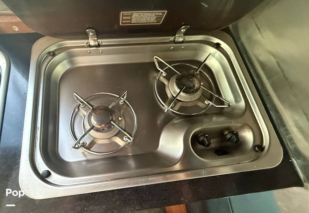 Step inside and feel at home. The open-concept interior features rich, modern cabinetry, plush seating that converts seamlessly into a cozy KING bed, and a fully equipped galley kitchen with a two-burner stove, refrigerator, microwave, and generous counter space--perfect for making your favorite meals on the go.