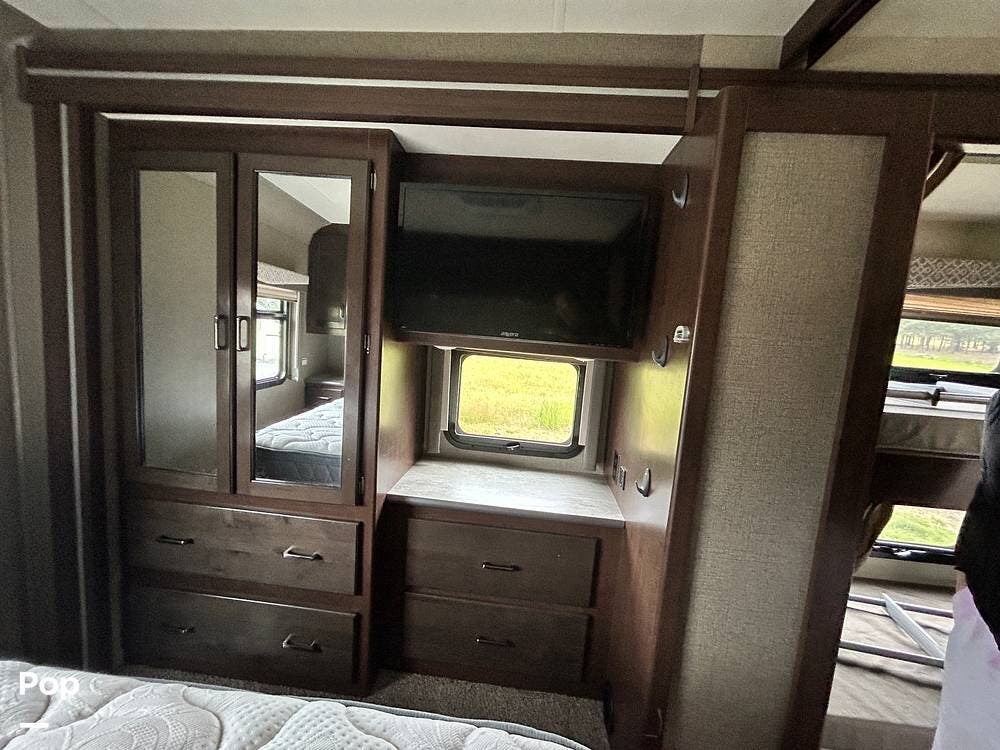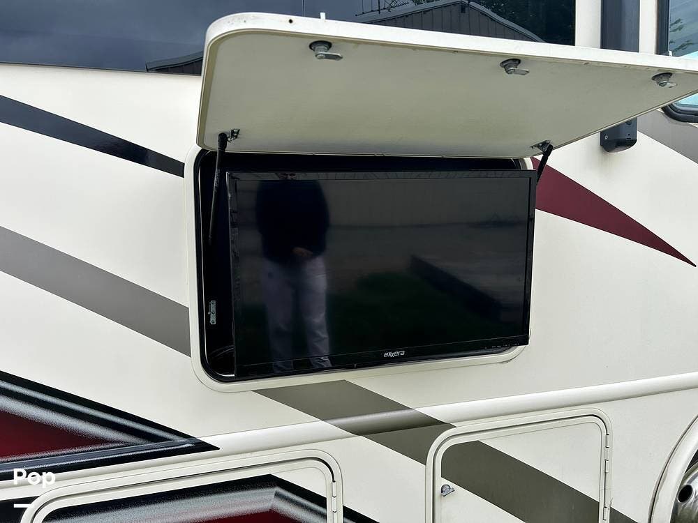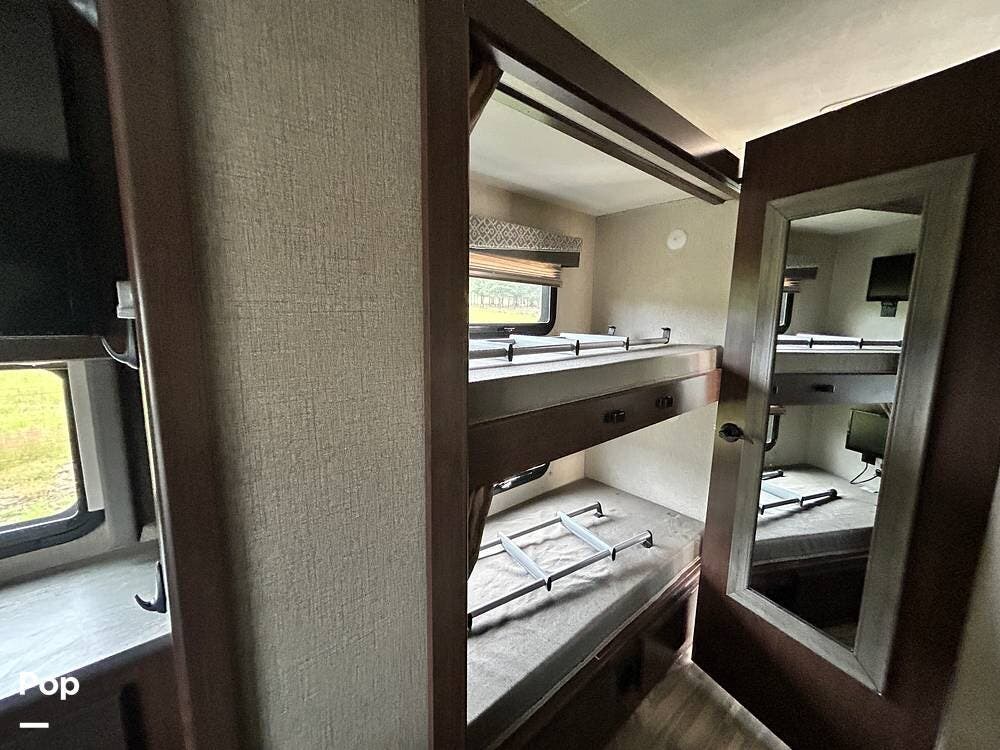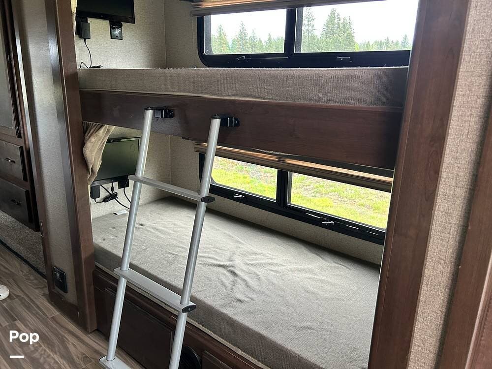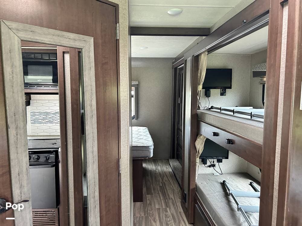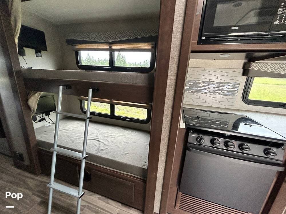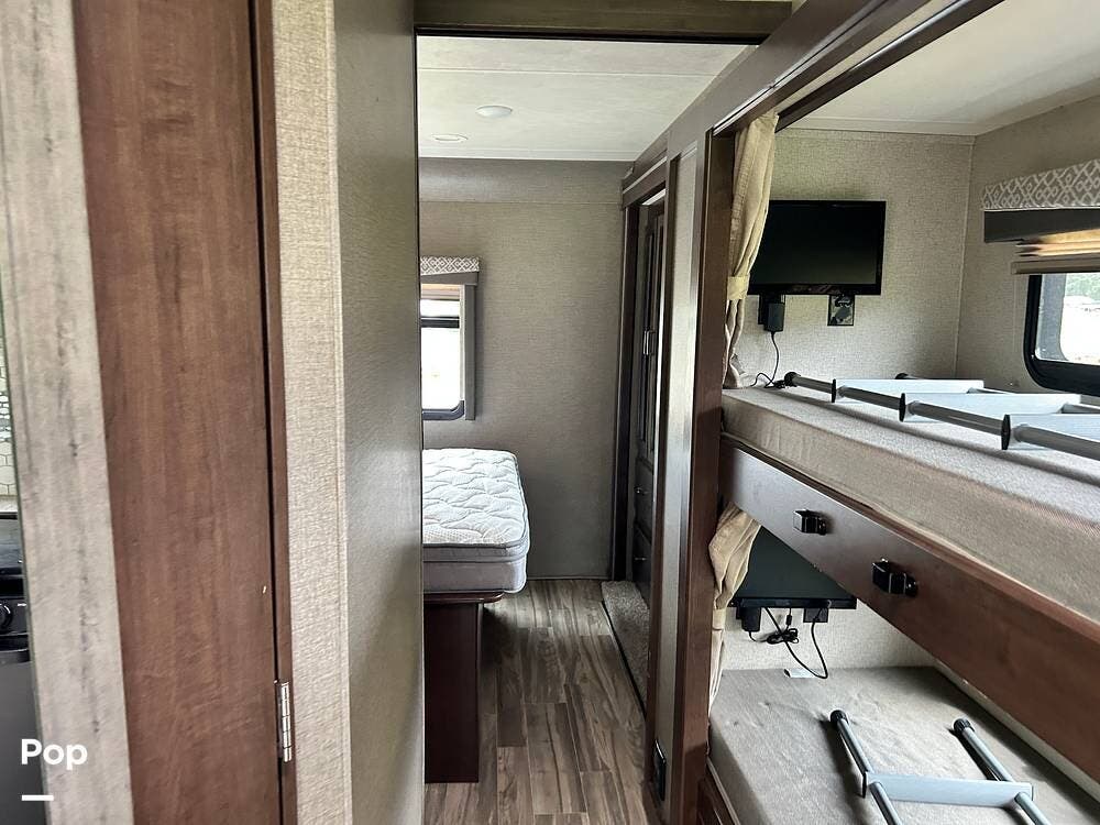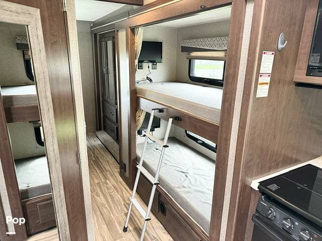 At 31'6" in length, this coach is packed with amenities, like a roof ladder, a legless awning, and an outdoor TV! Inside, there is a sofa, a dinette, and bunk beds, and there's a fully automated drop-down bunk in addition!