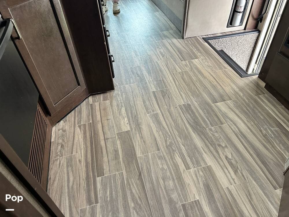 Outside is an upgraded (outside) shower and a gas hook-up for your barbecue. The full kitchen inside has a stove, an oven, a microwave, and a country-style sink. The floor is gorgeous.