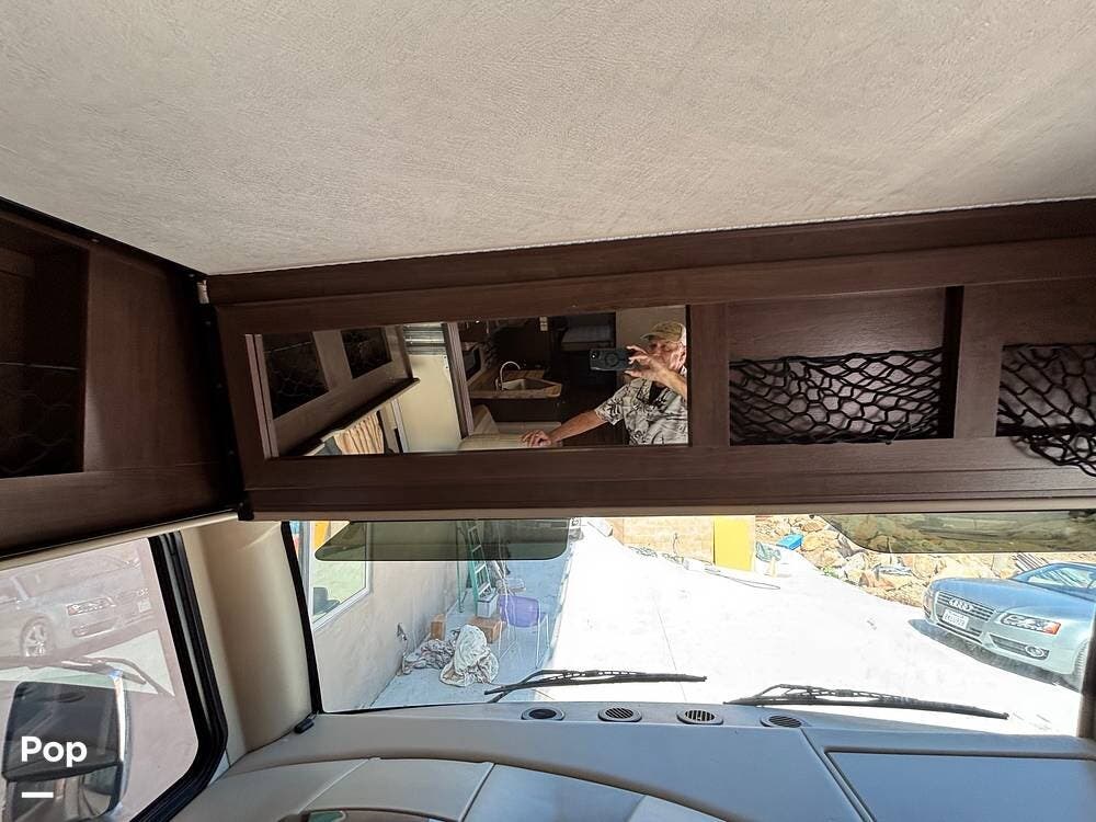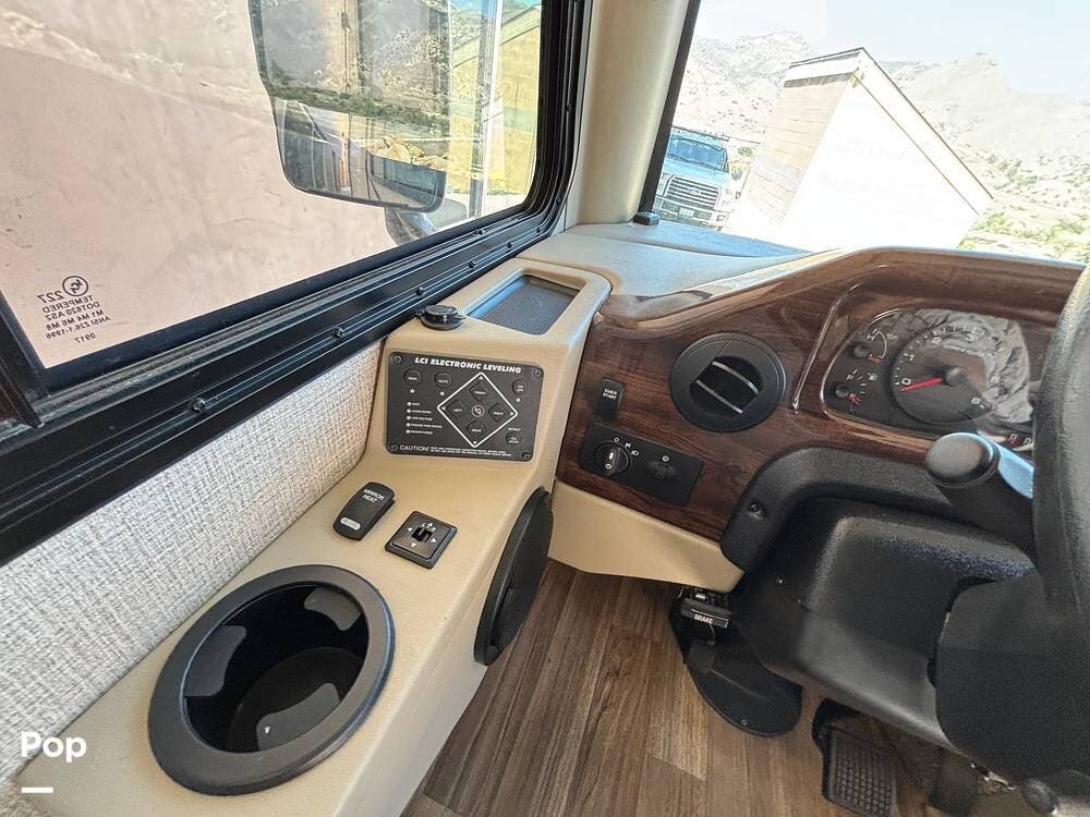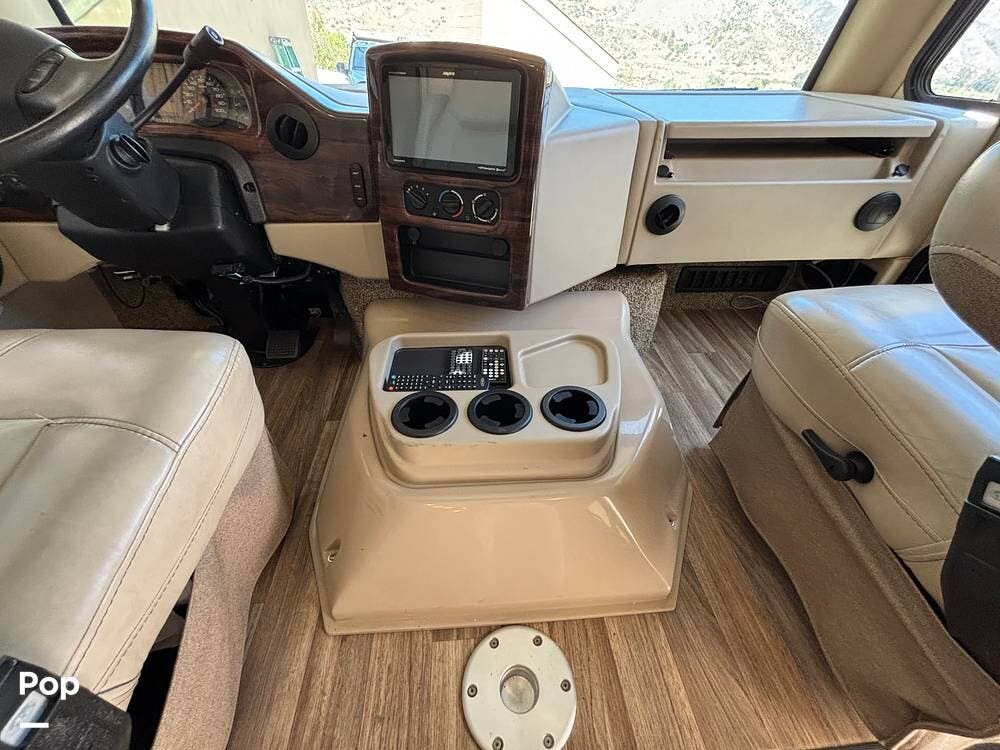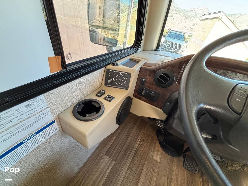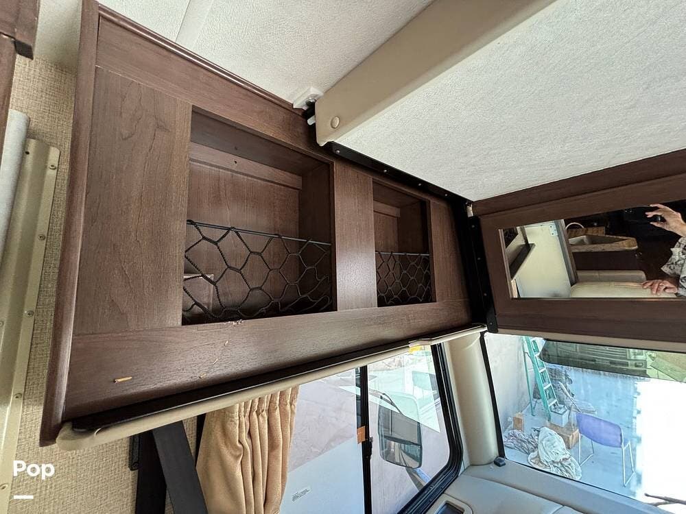 It features a smaller, more manageable windshield compared to a standard Class A, and it incorporates the drop-down bunk feature traditionally found in Class C models.