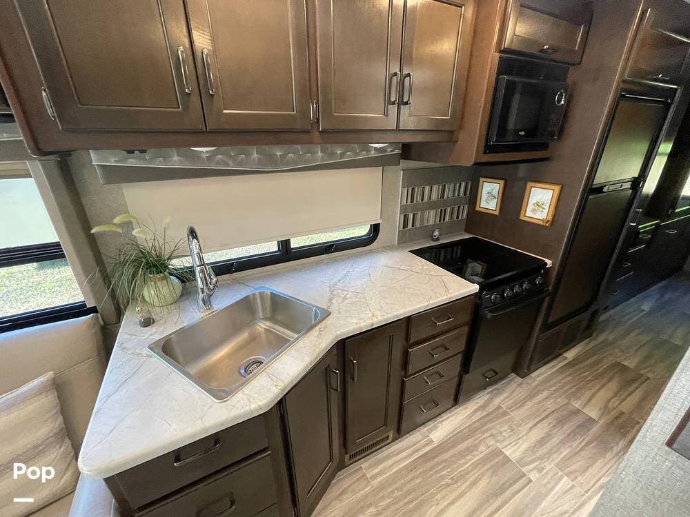 This motorhome will appeal to buyers seeking a well-equipped, mid-sized Class A with a practical layout and many conveniences for road travel or seasonal use.