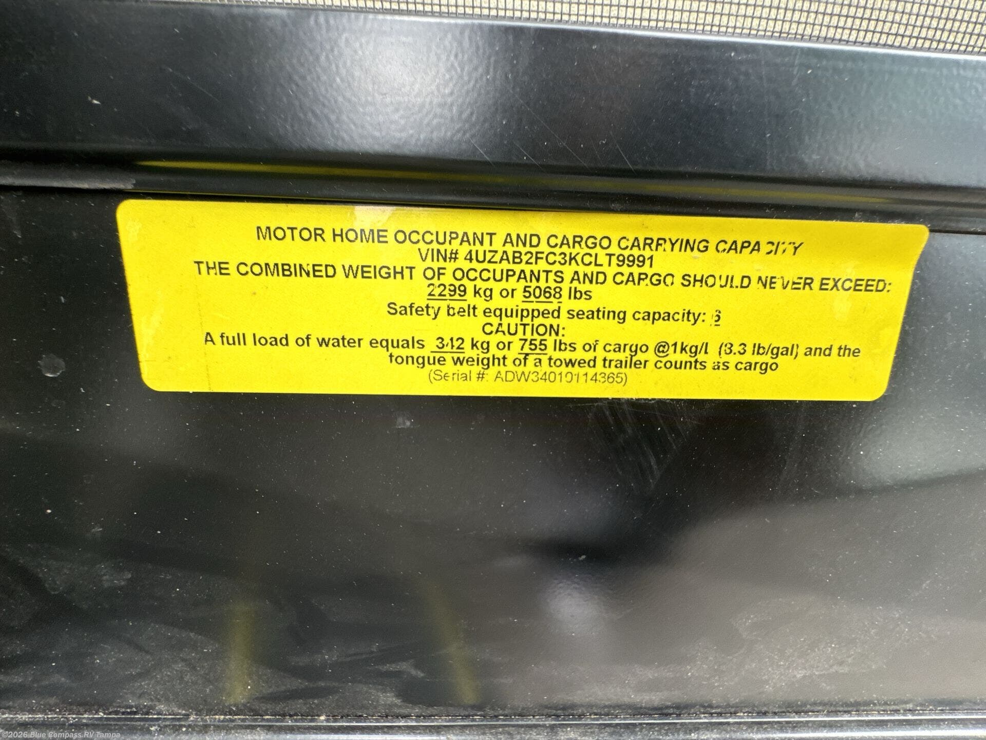 - VIN4UZAB2FC3KCLT9991