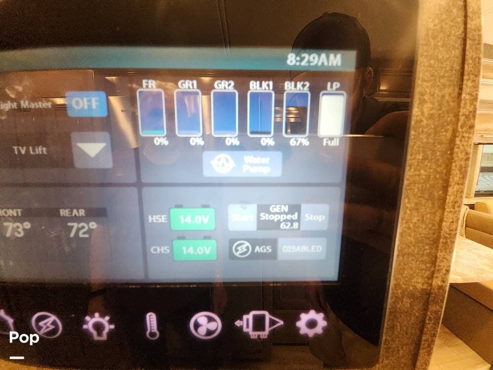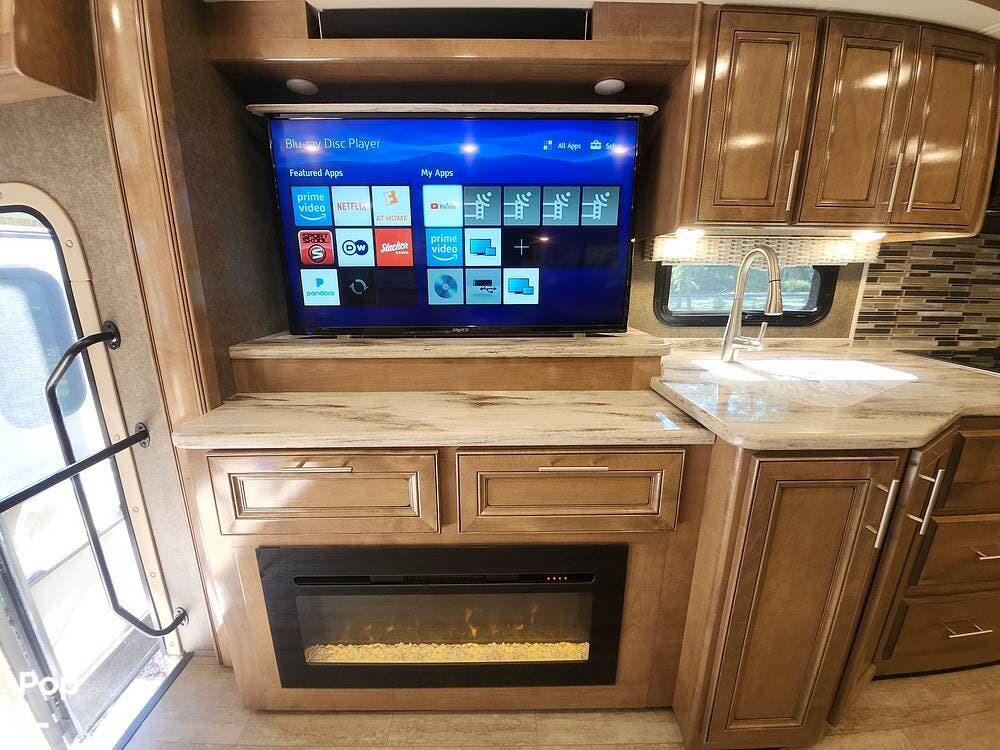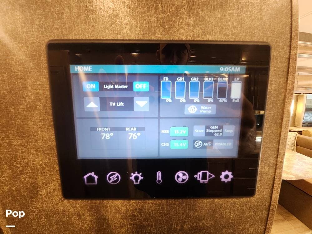 Outside, the coach has been upgraded with various items, including the front and rear sway bars, steering stabilizer, rear track bar, Sumo springs, and tire pressure monitoring system.
