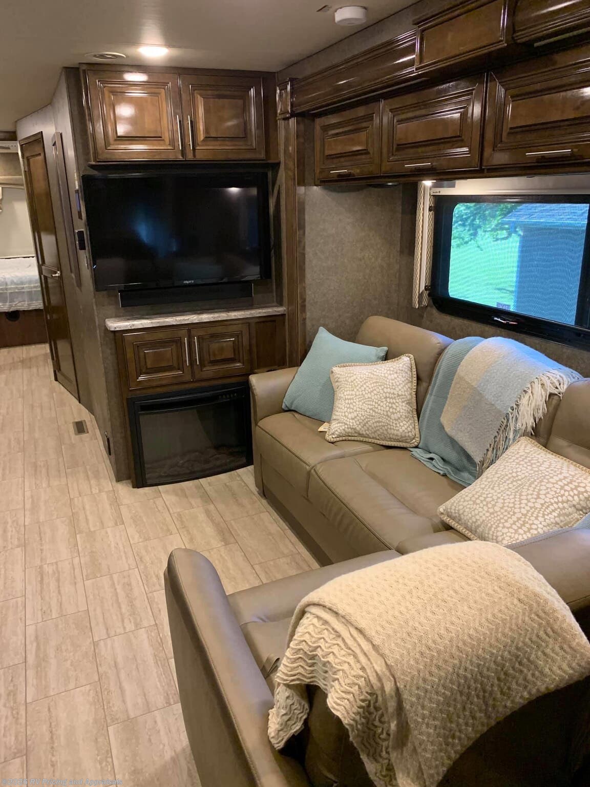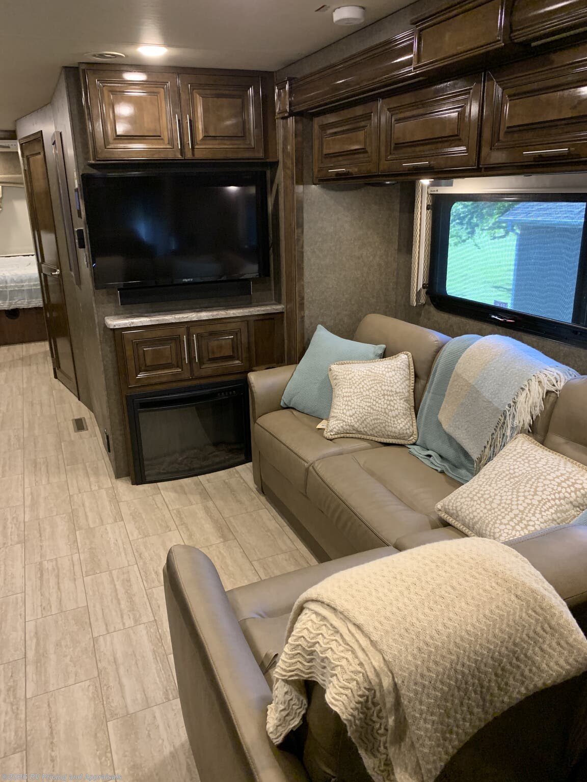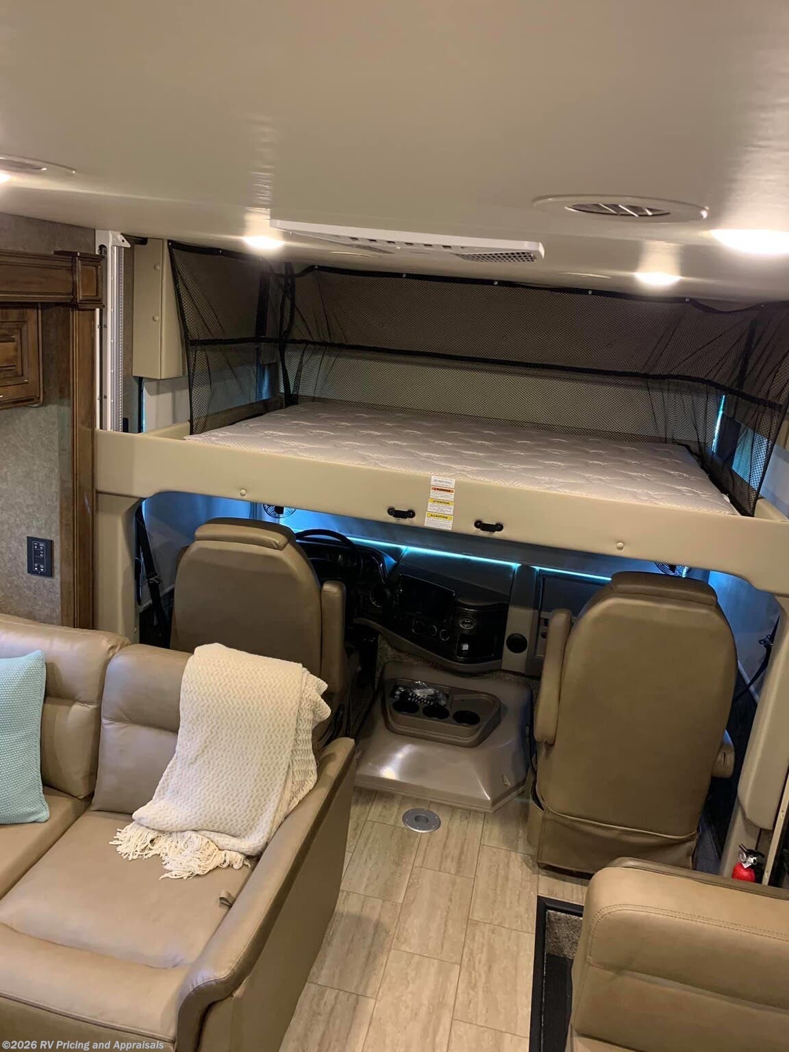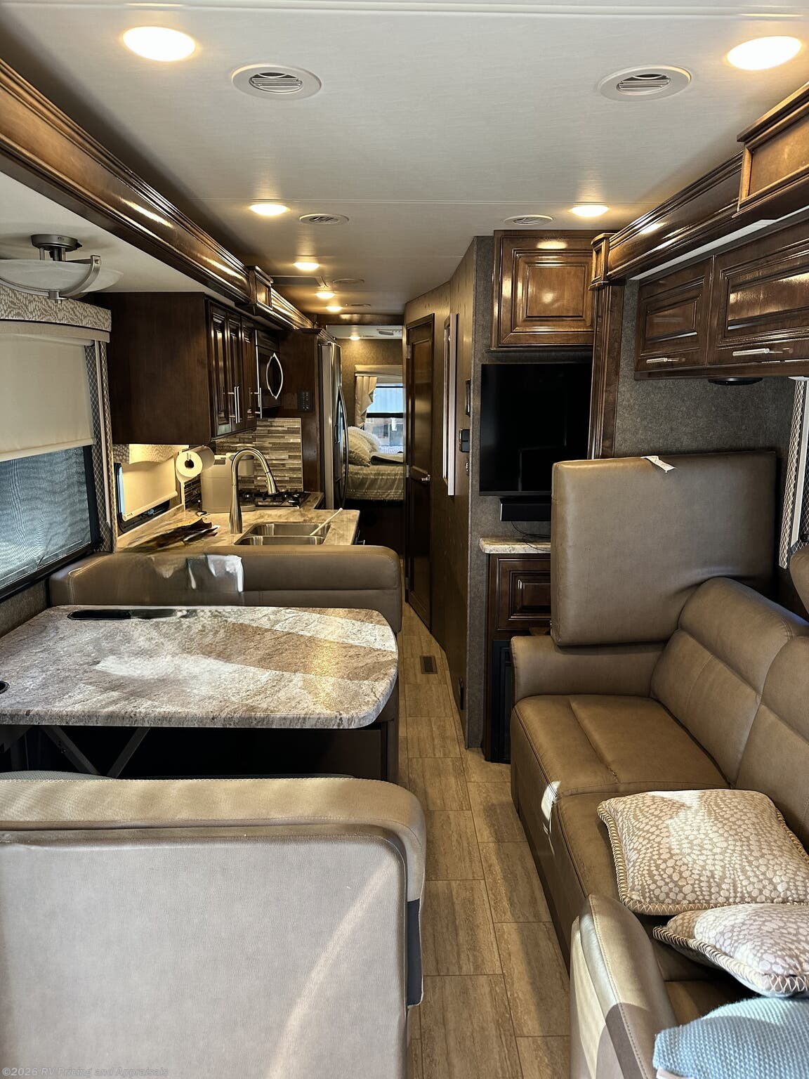 Enjoy entertaining with a fireplace, a 40" always-in-view TV, and an expanding sectional sofa/bed. This is the largest bathroom in a gas motorhome, and amenities include dual vanities, large, enclosed shower with skylight, storage with washer/dryer prep, and a spacious dressing area, making it convenient for all travelers with dual entries. Additional features such as a rear video camera, dash radio with navigation, and exterior entertainment add practicality and comfort. Do not miss the opportunity to own this remarkable motorhome – it is time to create unforgettable memories on the road with the 2020 THOR MOTOR COACH CHALLENGER 37YT!