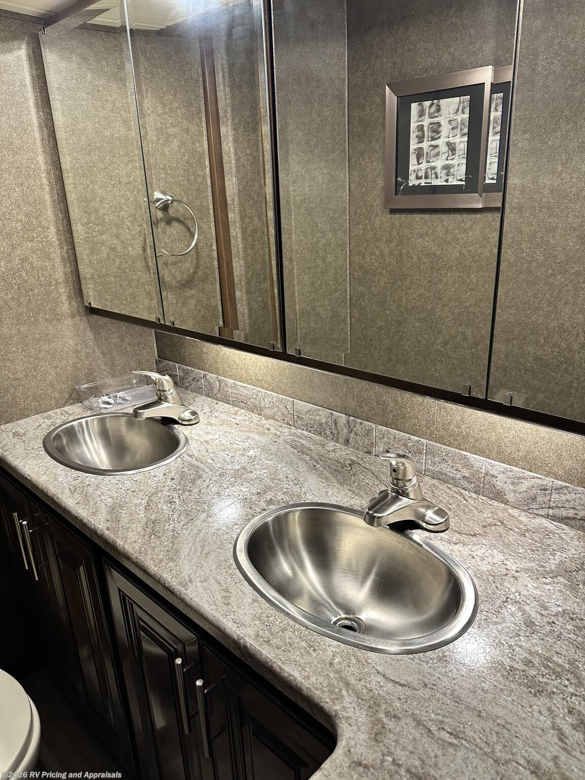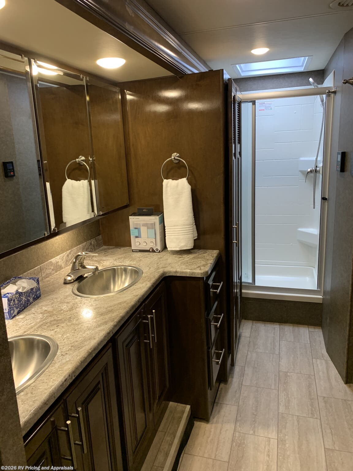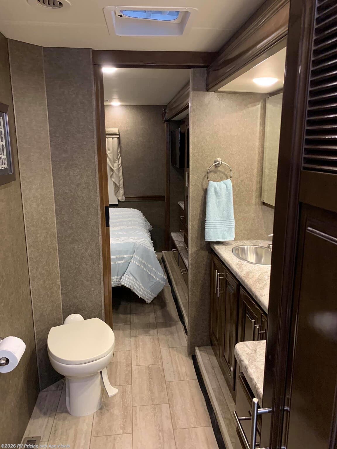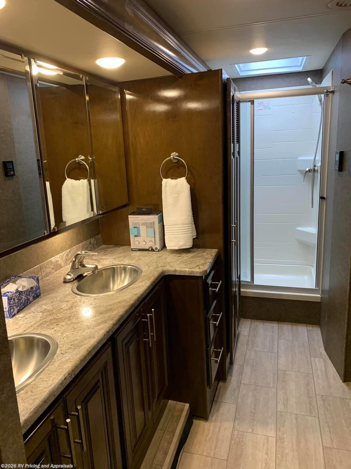 Enjoy entertaining with a fireplace, a 40" always-in-view TV, and an expanding sectional sofa/bed. This is the largest bathroom in a gas motorhome, and amenities include dual vanities, large, enclosed shower with skylight, storage with washer/dryer prep, and a spacious dressing area, making it convenient for all travelers with dual entries. Additional features such as a rear video camera, dash radio with navigation, and exterior entertainment add practicality and comfort. Do not miss the opportunity to own this remarkable motorhome – it is time to create unforgettable memories on the road with the 2020 THOR MOTOR COACH CHALLENGER 37YT!