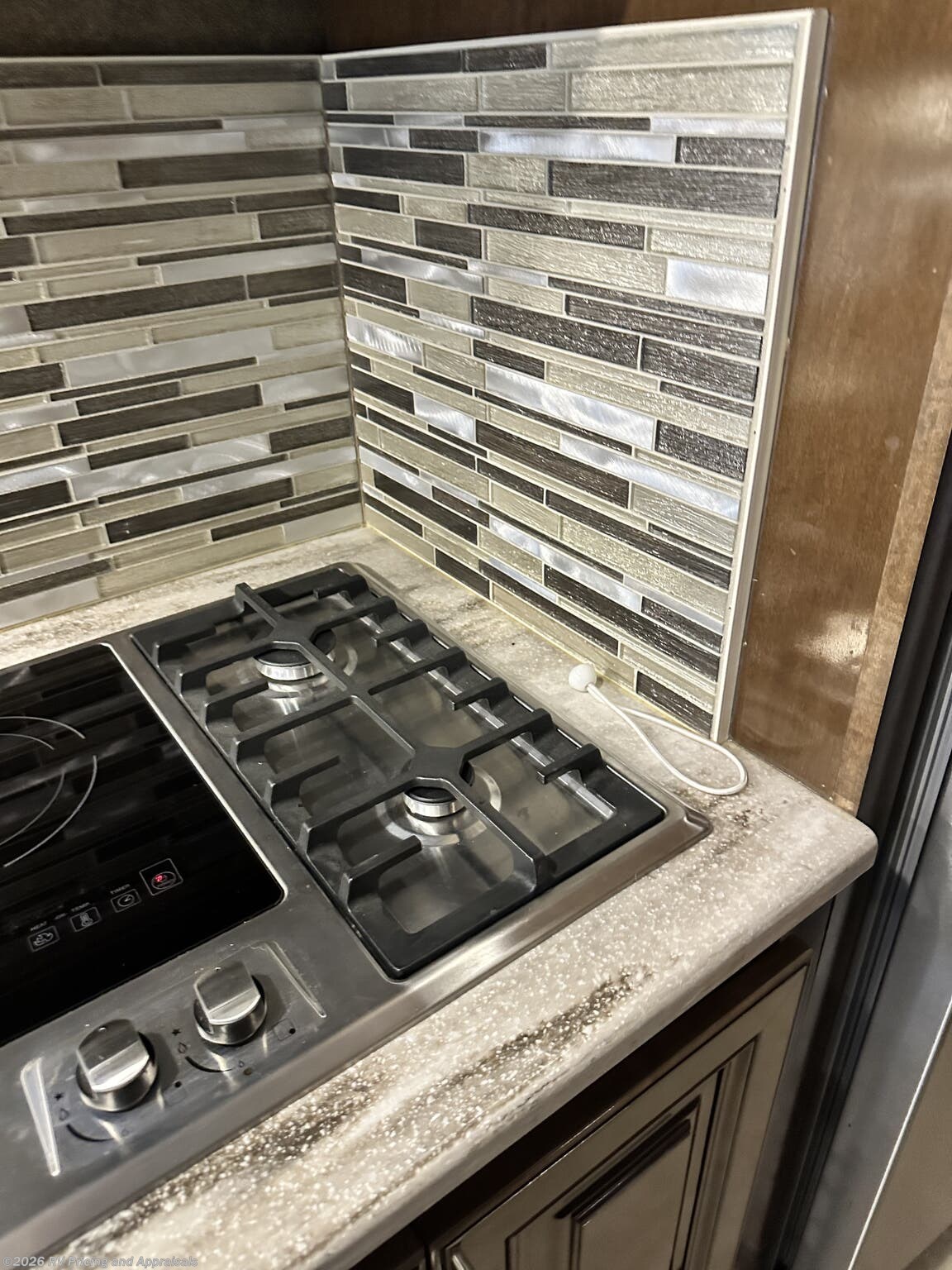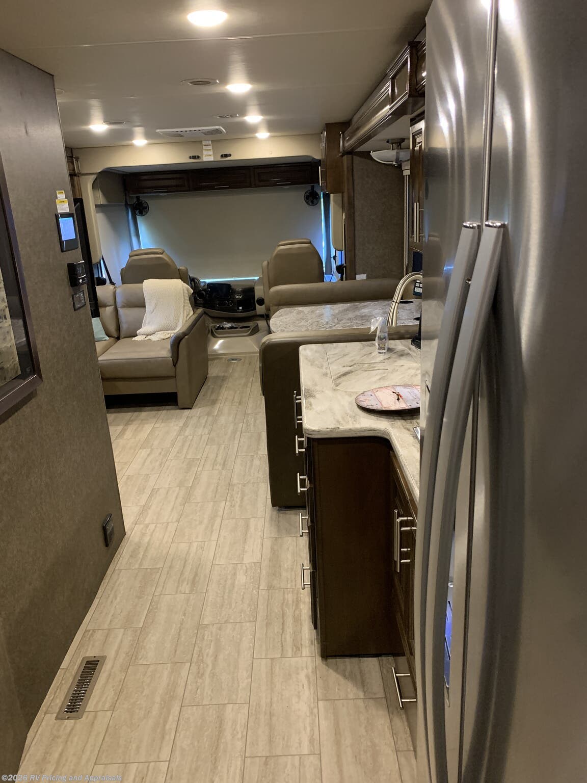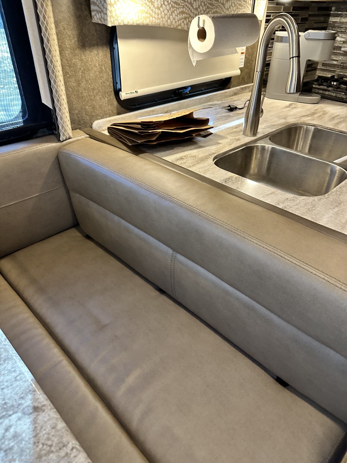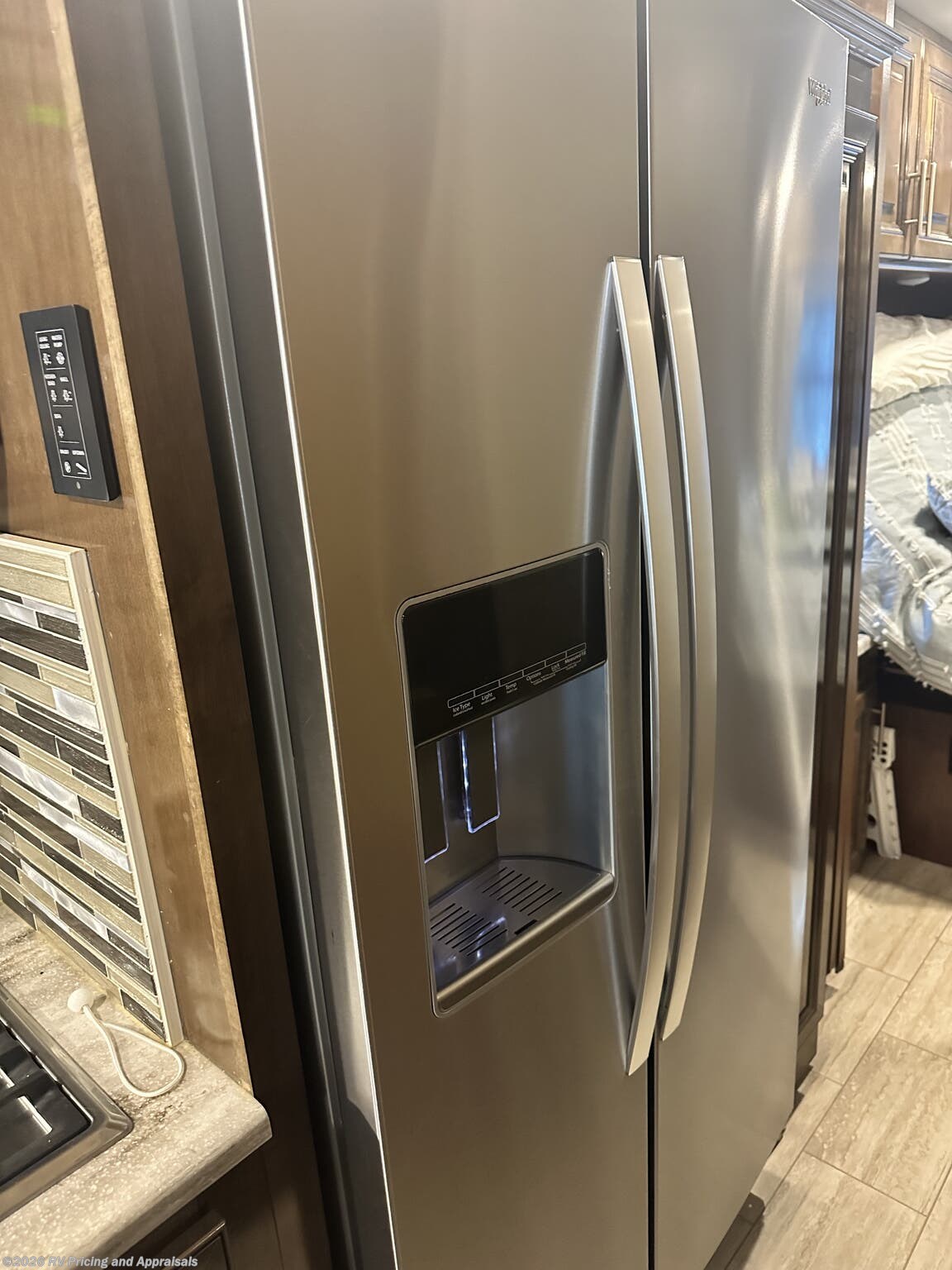 Designed for adventure seekers, this 2020 model boasts a sleek appearance and modern amenities, offering spacious interiors that cater to families and travelers alike. With a full wall slide and three total slide-outs, the motorhome sleeps up to 6 people comfortably. Key features include a Tilt-A-View Inclining King Bed, a Power Drop-Down Overhead Bunk, Dream Dinette that converts to a bed, and a residential refrigerator/freezer equipped with water/ice maker. The kitchen is a chef's dream, featuring solid surface countertops, stainless steel appliances, double sink with high top faucet, and a 3 burner/induction cooktop with a convection microwave.