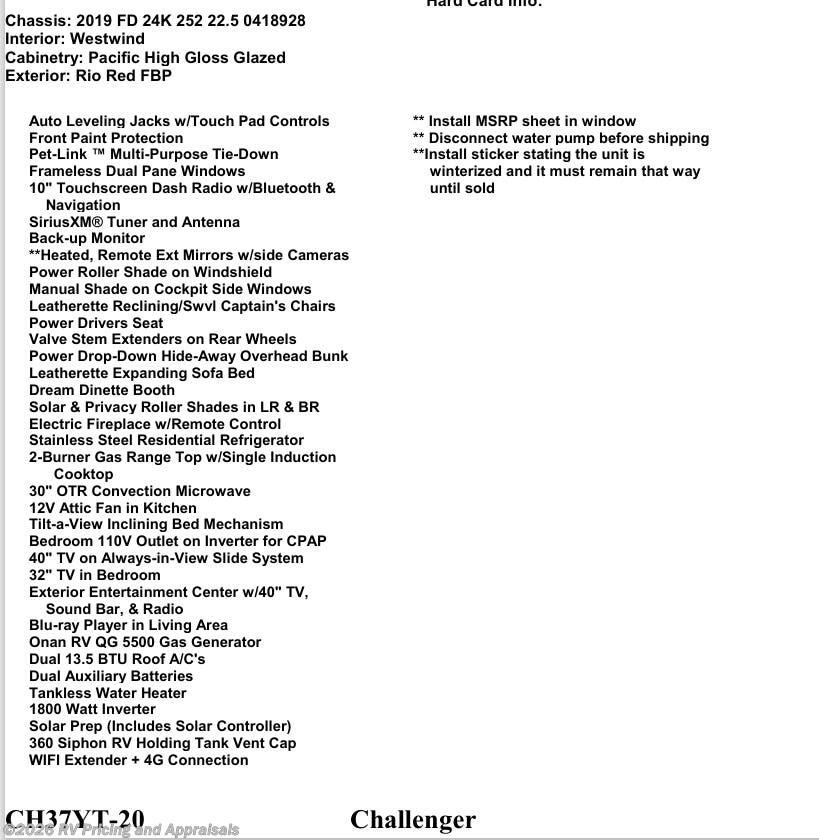 Request More Info on this 2020 Thor Motor Coach Challenger 37YT- LOCATED IN JOHNSTON, IOWA Offered for sale by RV Pricing and Appraisals