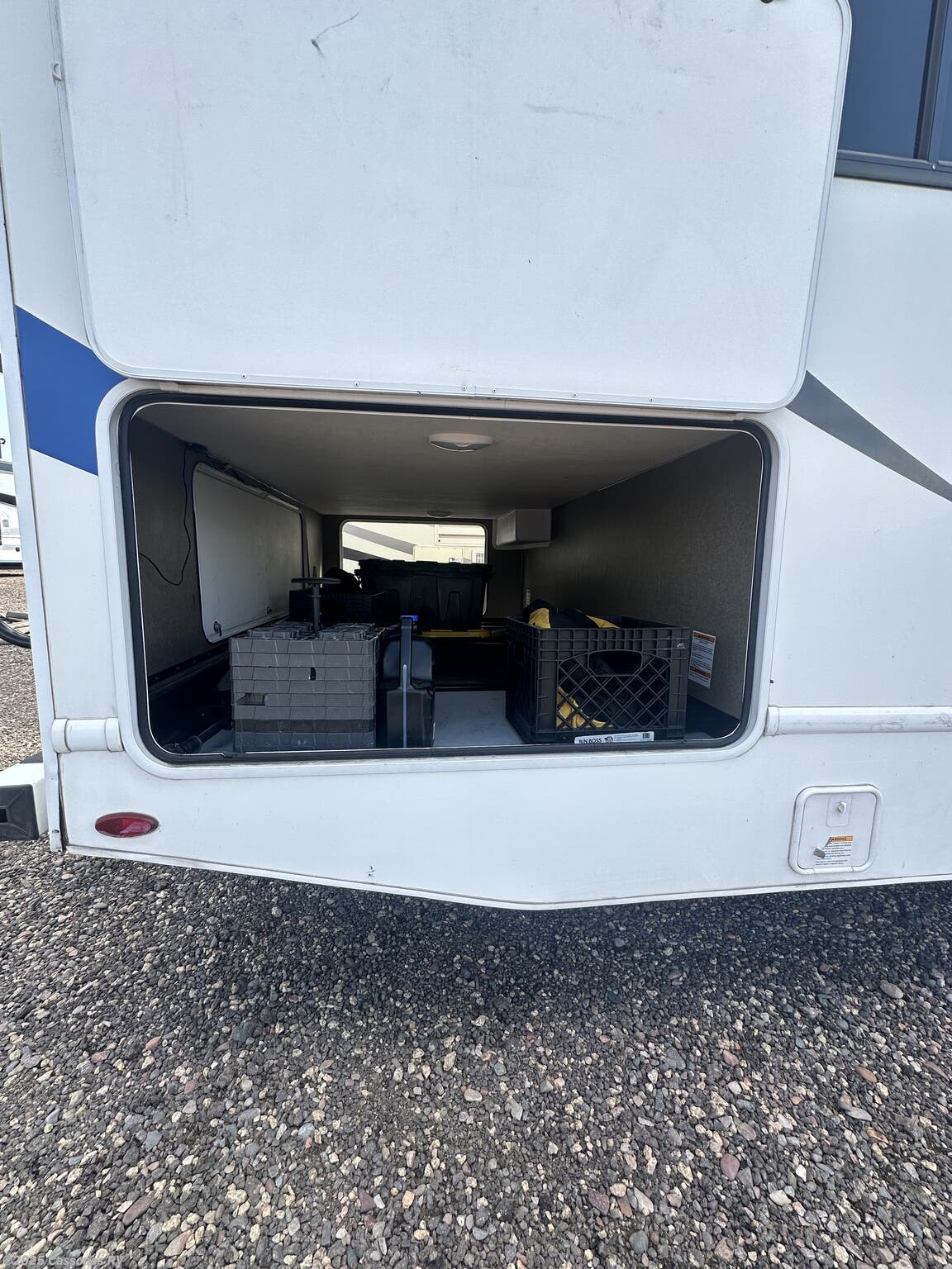 - Exterior features include an awning, exterior speakers, backup monitor, ladder, and power roof vent
