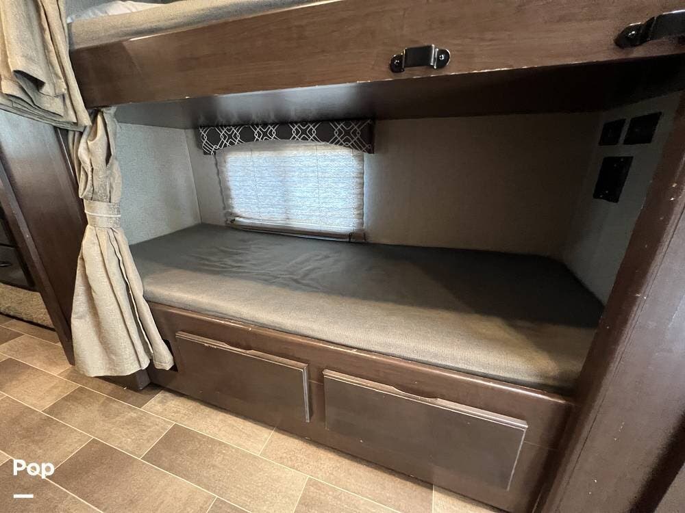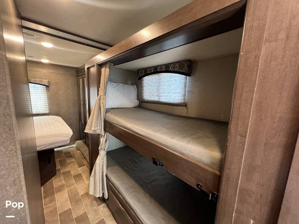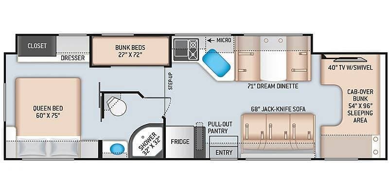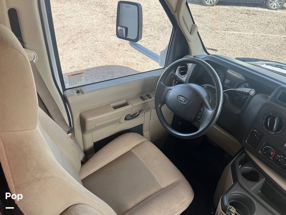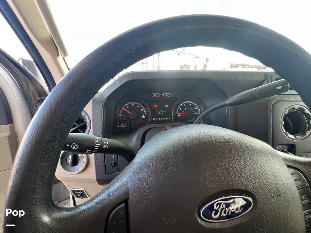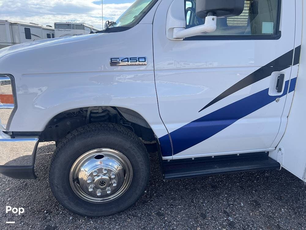 Measuring just over 32 feet, it's built on a dependable Ford chassis with a strong V10 engine, offering a smooth and confident driving experience. Inside, the smart layout accommodates up to 10, thanks to a rear queen bed, bunk beds, a convertible dinette, a jackknife sofa, and a roomy over-cab bunk -- plenty of space for everyone to rest and recharge.