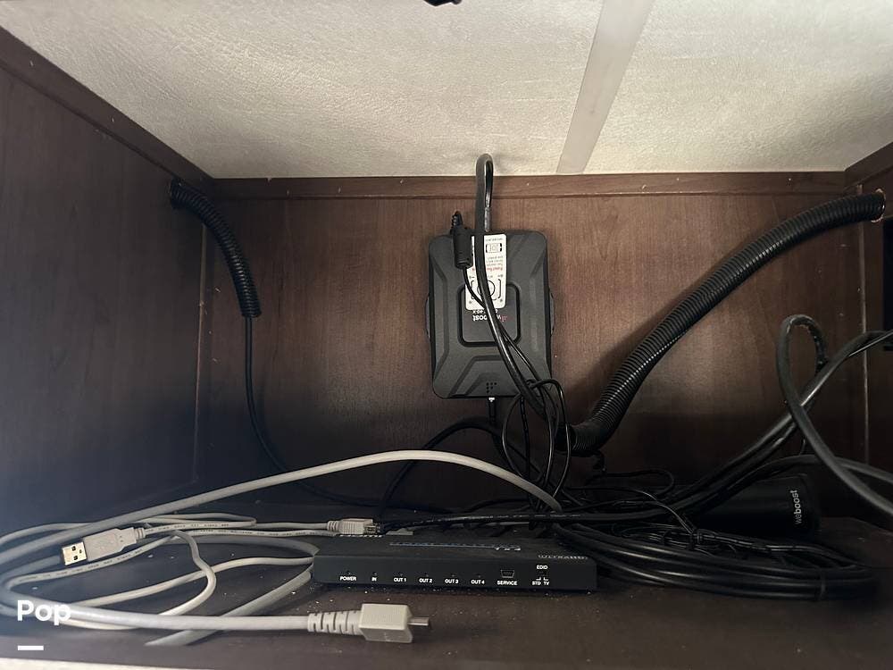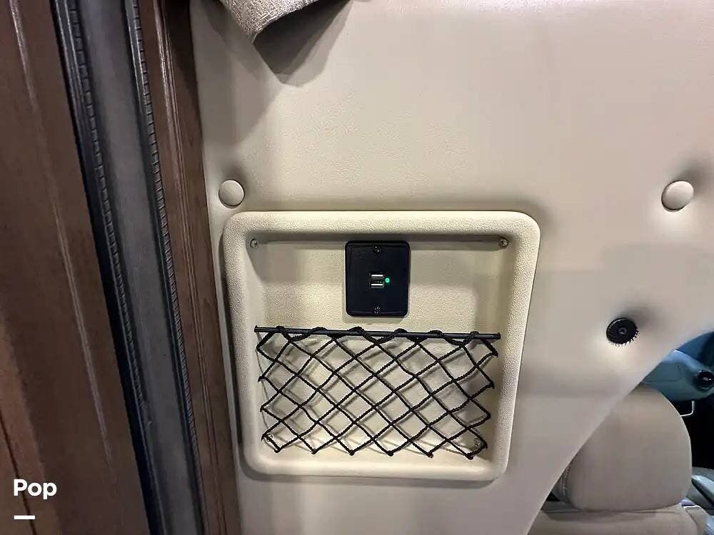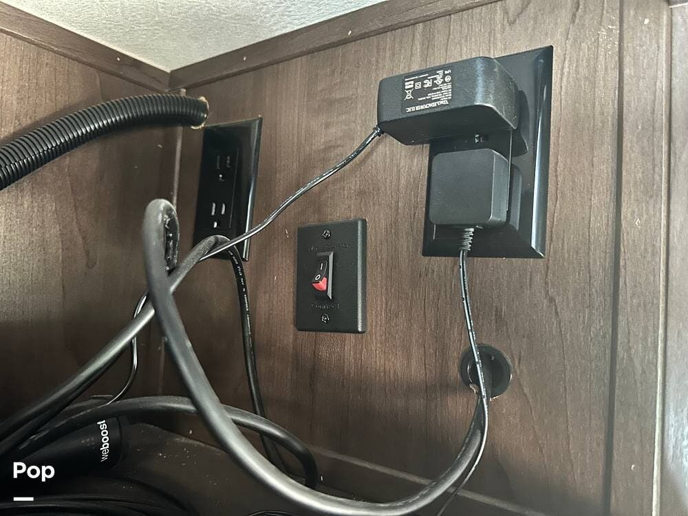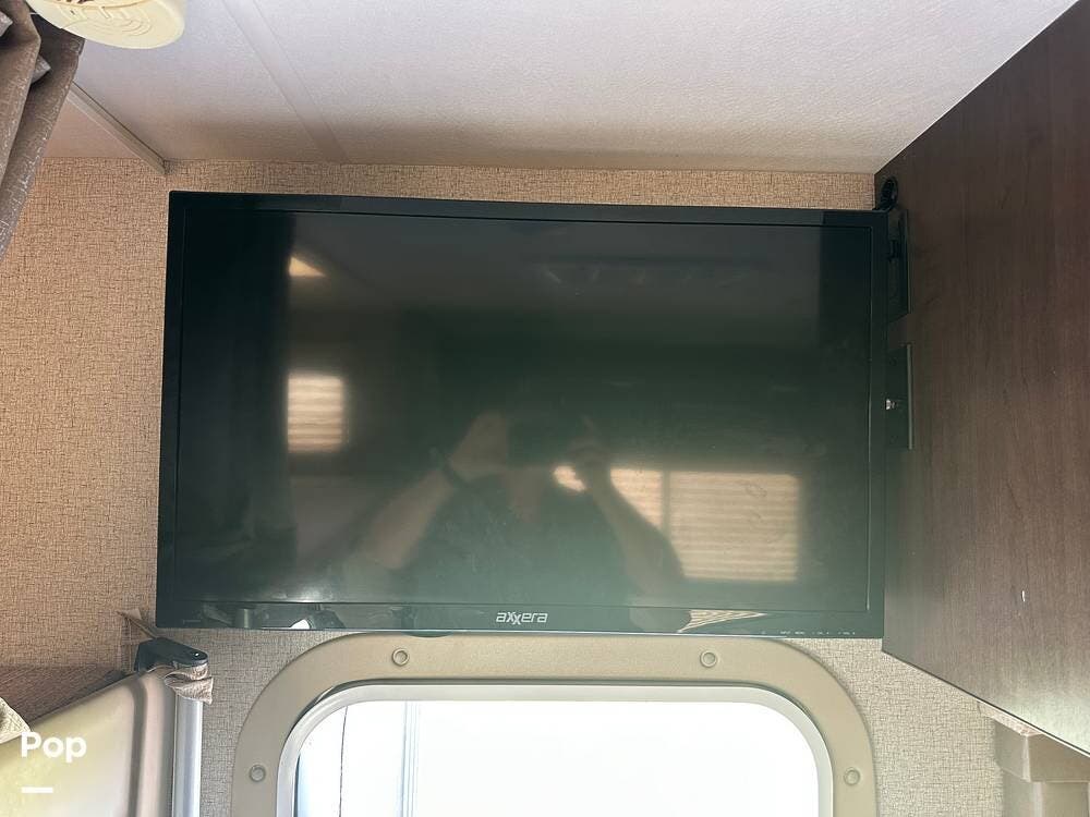 In the back is a queen-sized bed with a TV in the bedroom. You also have USB ports next to the bed.