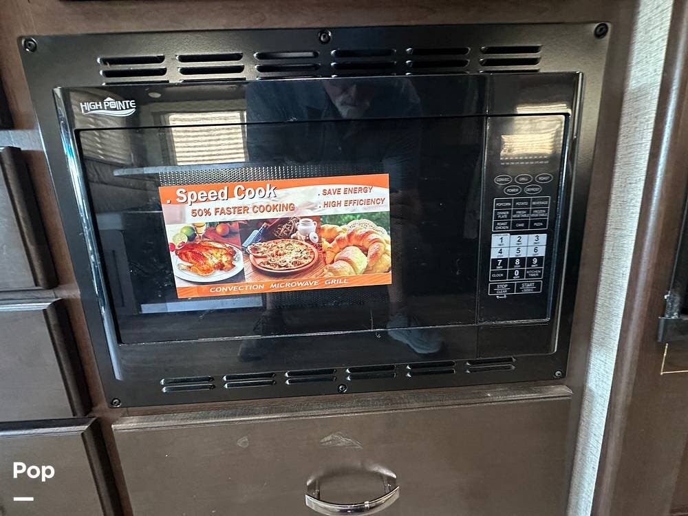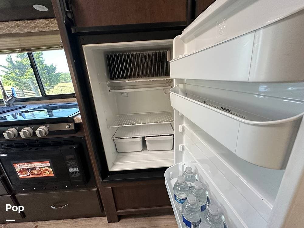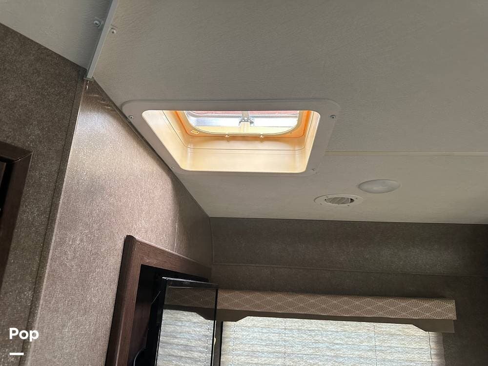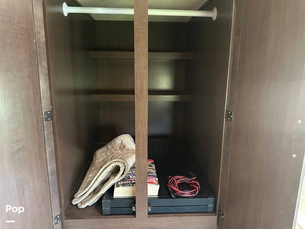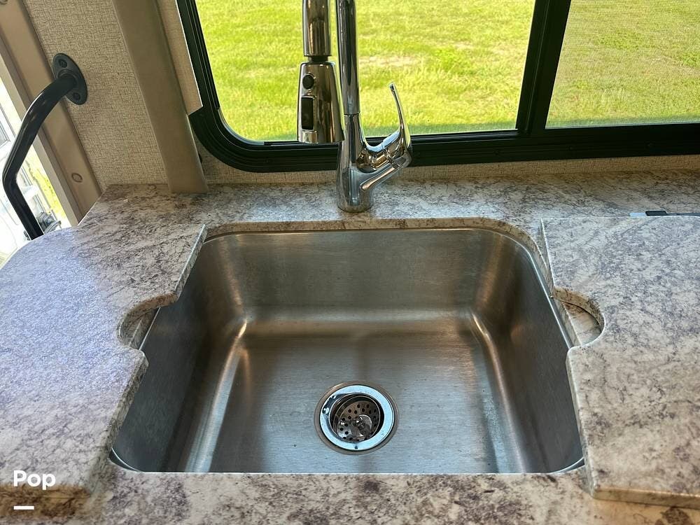 As you enter this RV, you notice that the garage-kept RV has a lot of room, thanks to its open plan and full-body slide.