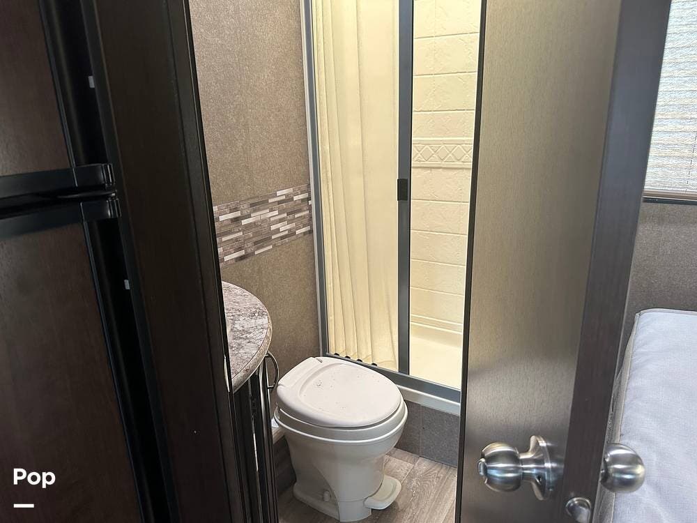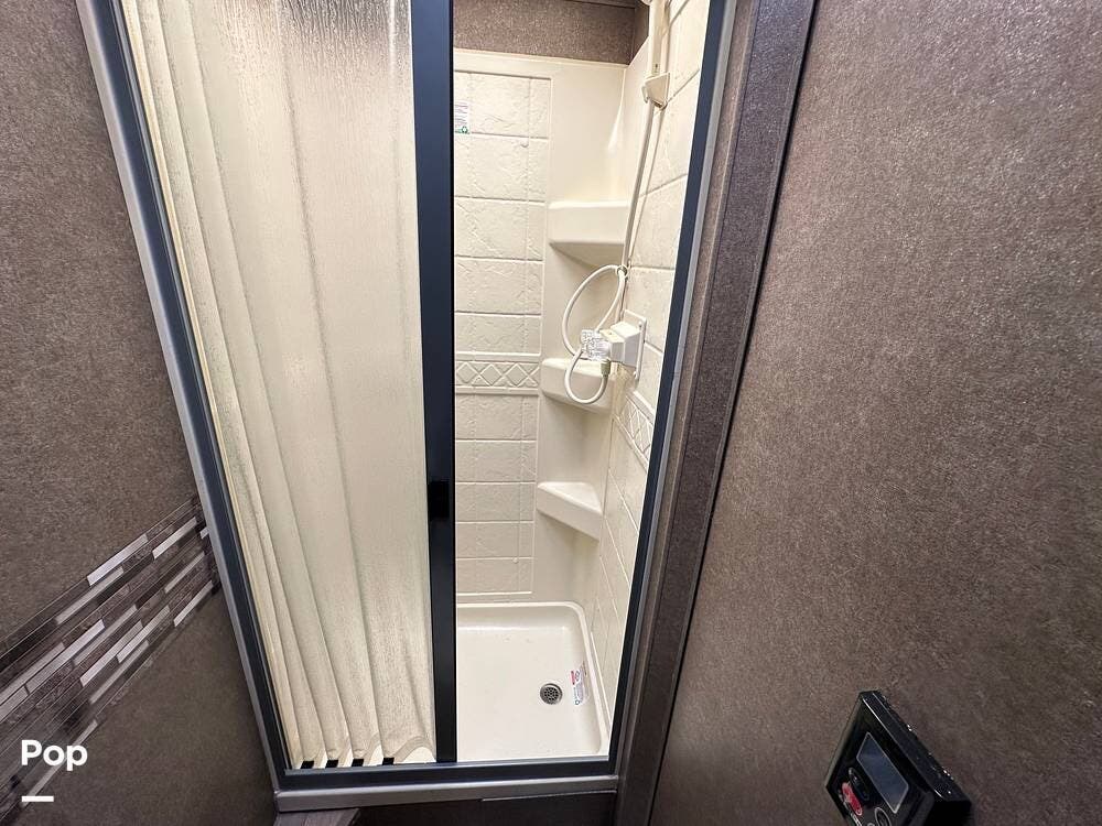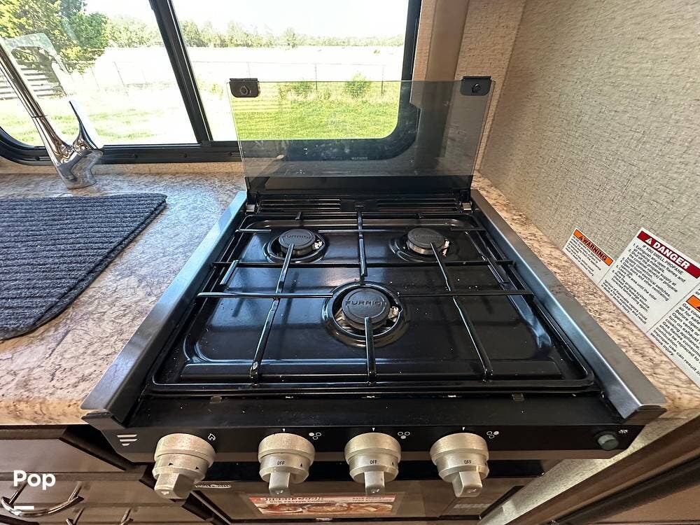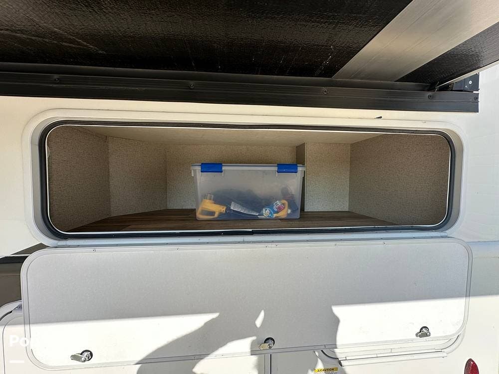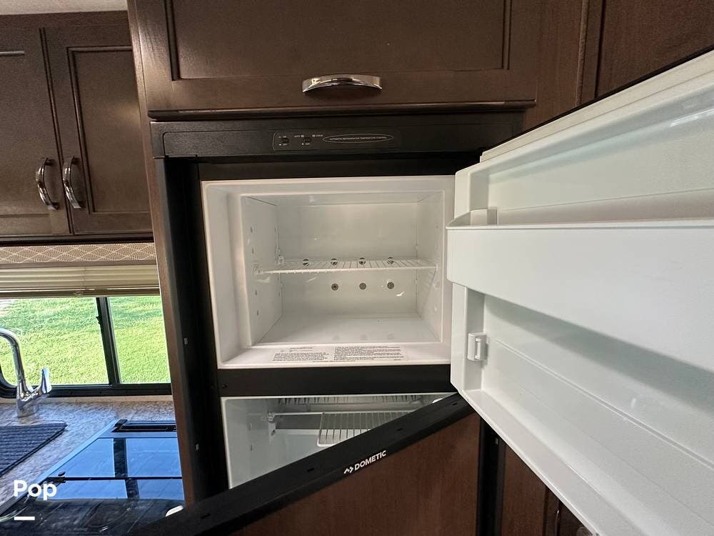 As you enter this RV, you notice that the garage-kept RV has a lot of room, thanks to its open plan and full-body slide.