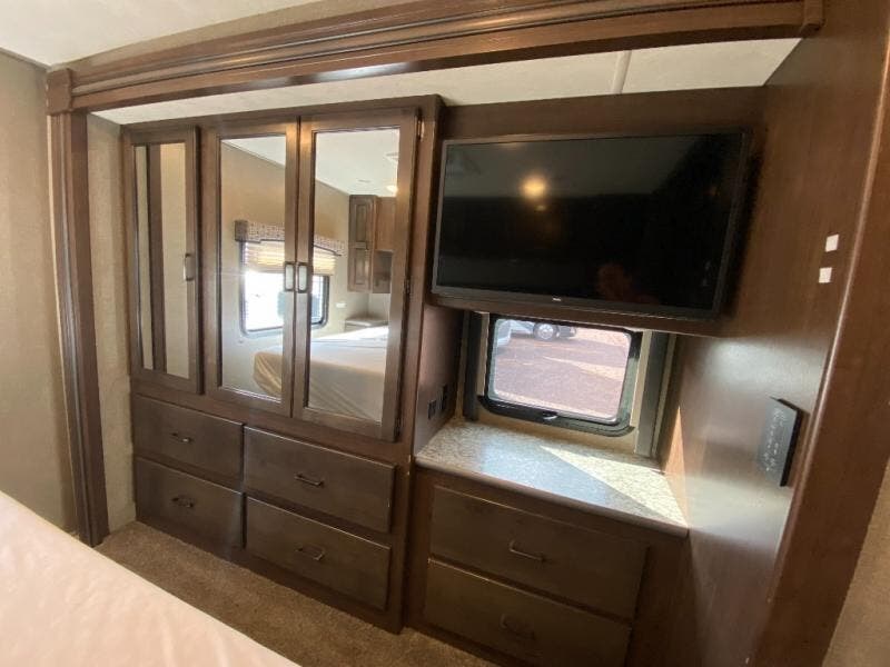 Imagine taking this Hurricane model out to the next tailgate party. Everyone will surely be gathered under the power awning and around the exterior kitchen and/or 32" LED TV to watch the previews or even stay to watch the big game. If there isn't a game, take this unit to the nearest campground to relax for the weekend. Be sure to invite your friends to tag along since you have sleeping space for a total of nine in this RV. If you decide to entertain inside, no problem. The residential refrigerator can hold food and cold drinks for the whole week. This model features a full wall slide, which provides more space than ever. There is a Dream dinette, a sofa bed, two captains chairs, plus a full kitchen and bath amenities. Own this motorhome today and start having fun tomorrow!