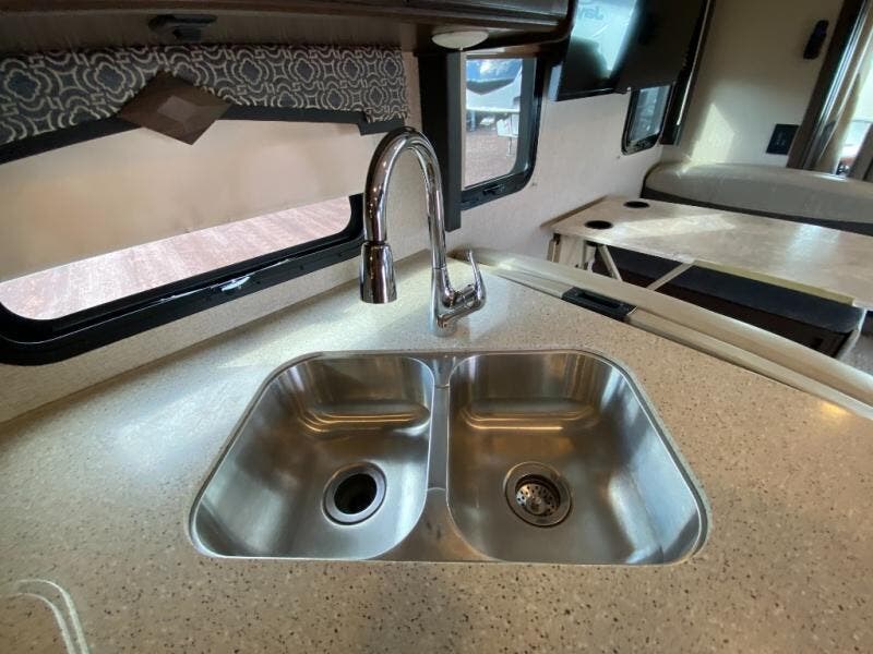 With any Thor Motor Coach Hurricane Class A gas motorhome you will begin with a welded tubular steel frame with a welded tubular aluminum roof and sidewall cage construction. Some exterior features include the one-piece fiberglass front and rear caps, the automatic leveling jacks with Touchpad controls, and the Pet-Link multi-purpose tie-down allowing you to keep your family pet safely near you. More features you are sure to enjoy while on your adventures, the touch screen radio with Bluetooth connectivity, SiriusXM radio, and monitor for your rearview and side view camera, the flip-out workstation, the easy to care for residential vinyl flooring, the Leatherette furniture, the USB charging ports and so much! Start your Hurricane adventure today!