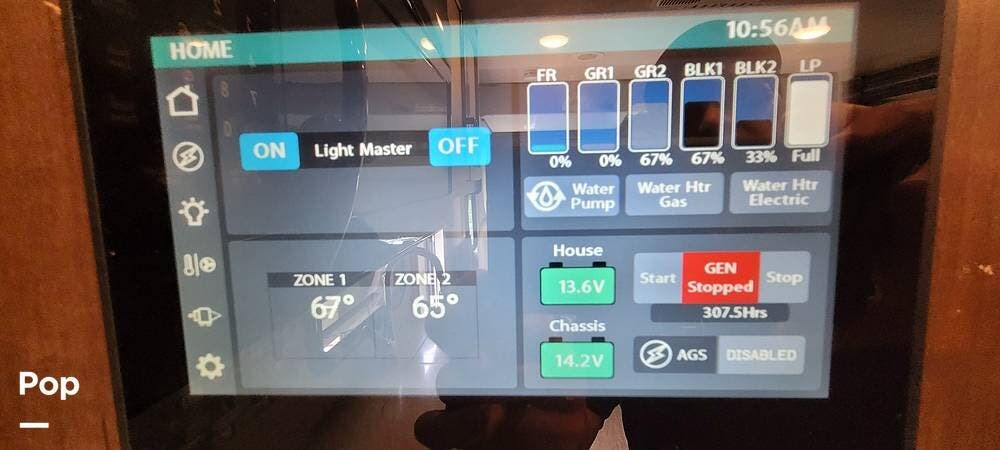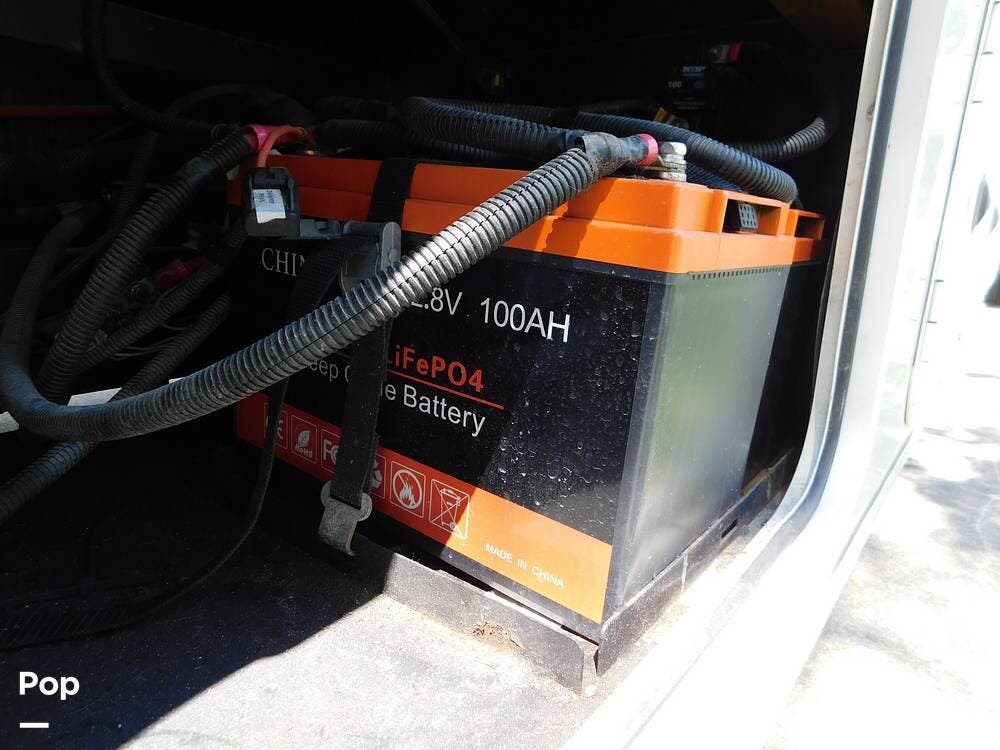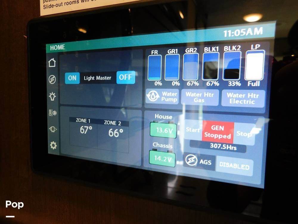 Additional features of this RV include updated lithium house batteries, leveling jacks, a rearview and side-view camera system for safer maneuvering, and a generator for off-grid power supply. Climate control is handled by dual roof air conditioners and a furnace, ensuring comfort in a range of weather conditions.