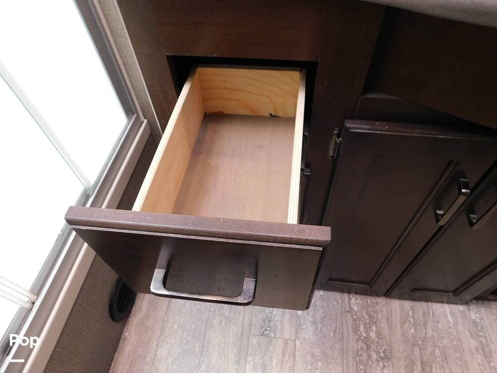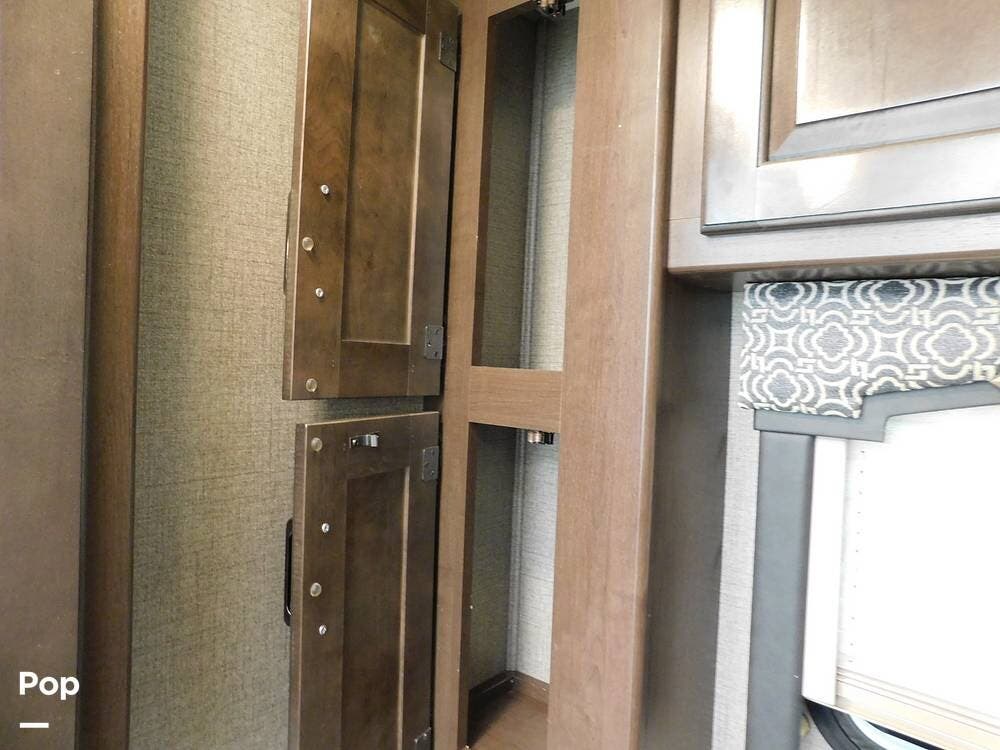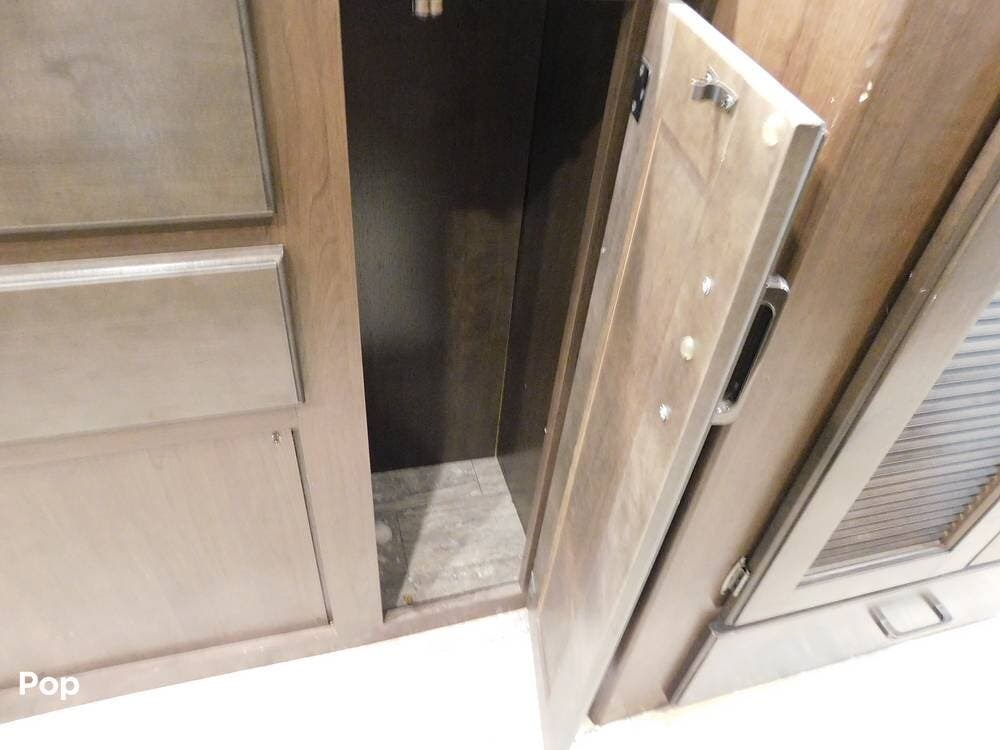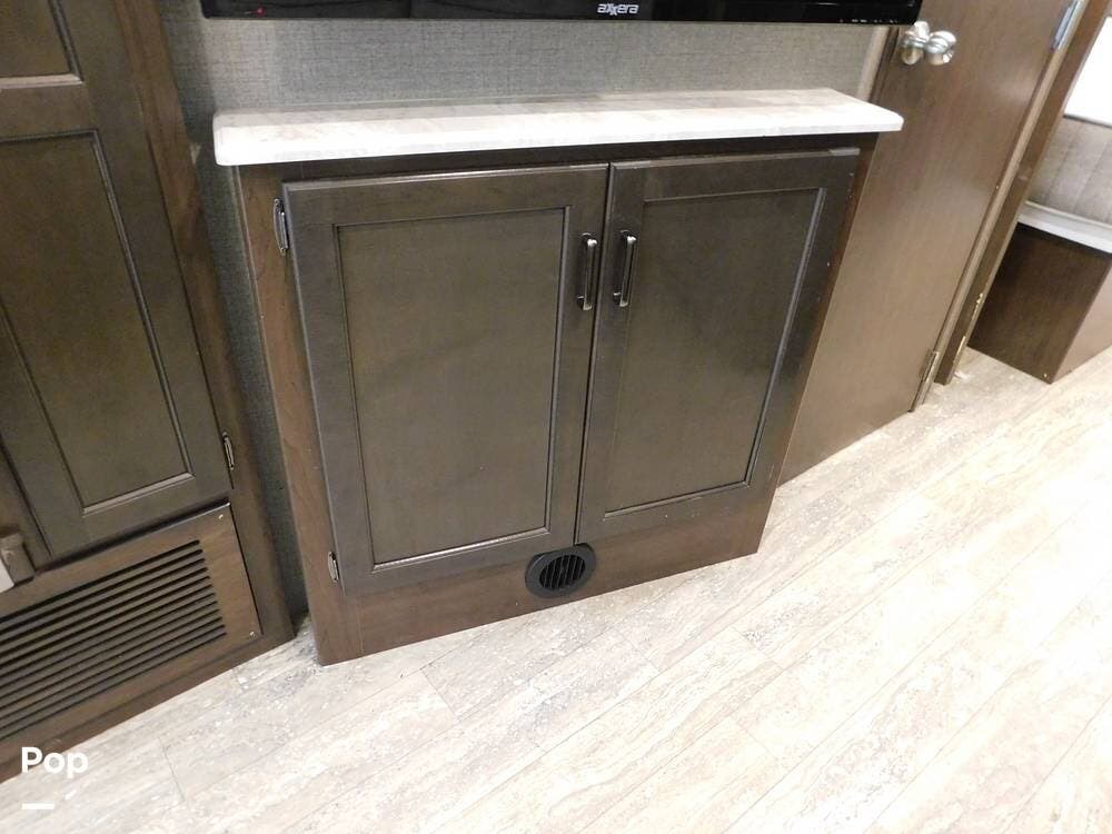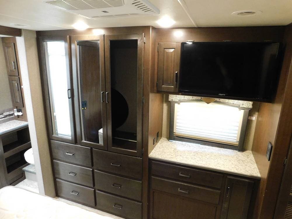For those who enjoy outdoor living, the Hurricane 35M features an exterior entertainment center equipped with a TV and speakers, as well as a power patio awning with integrated LED lighting, providing shaded relaxation in the evenings. Multiple storage compartments around the exterior provide ample space for camping gear, outdoor furniture, and other essentials.