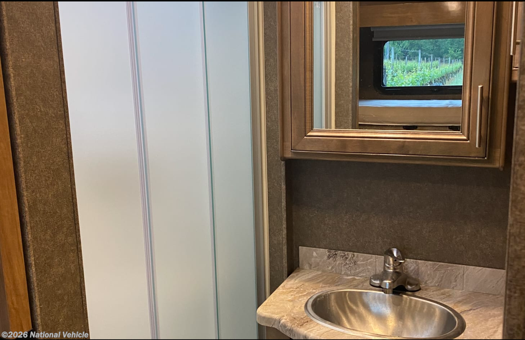 A family of seven to nine can travel and stay in comfort in this Miramar Class A gas motorhome that has three slide outs! You will find seatbelts on the furniture from the captain's chairs that swivel to the 68" sofa bed and 72" Dream Dinette so that everyone can be secure the whole trip. Convenience is found with two full bathrooms, so getting ready for adventure or bedtime is made more efficient. And the bunk beds as well as the drop-down overhead bunk will be the kids' favorite spots! The cook will have full amenities to keep everyone fed from the convection microwave to the residential refrigerator, and the Always-In-View 39" LED TV with fireplace below will be a great escape after a fun day. When you are ready for bed, head back to your master suite that has a full bathroom, a Tilt-A-View inclining RV king bed, and a 32" LED TV!