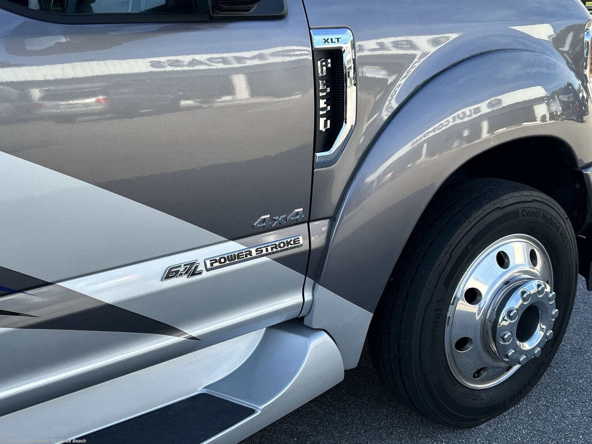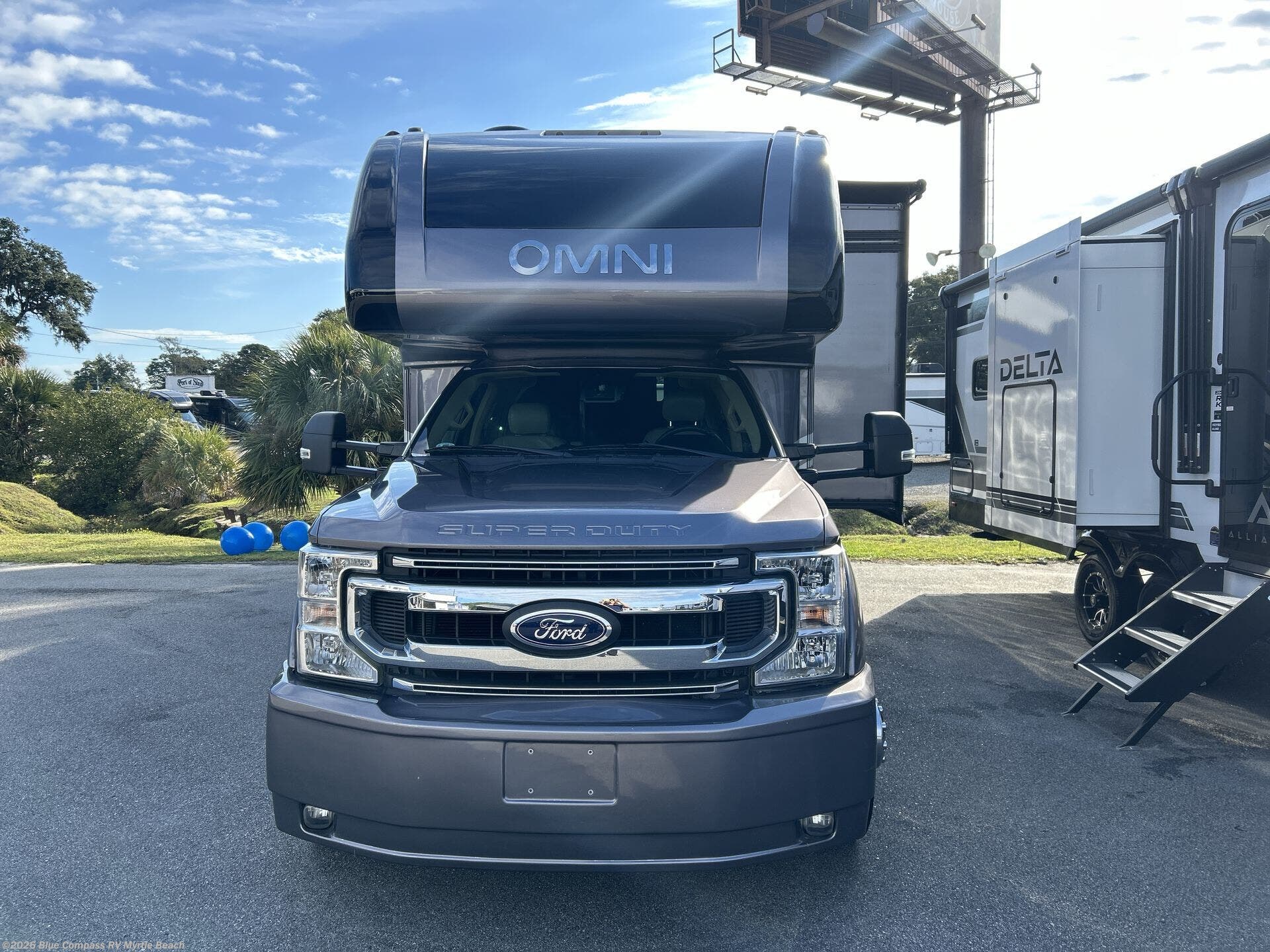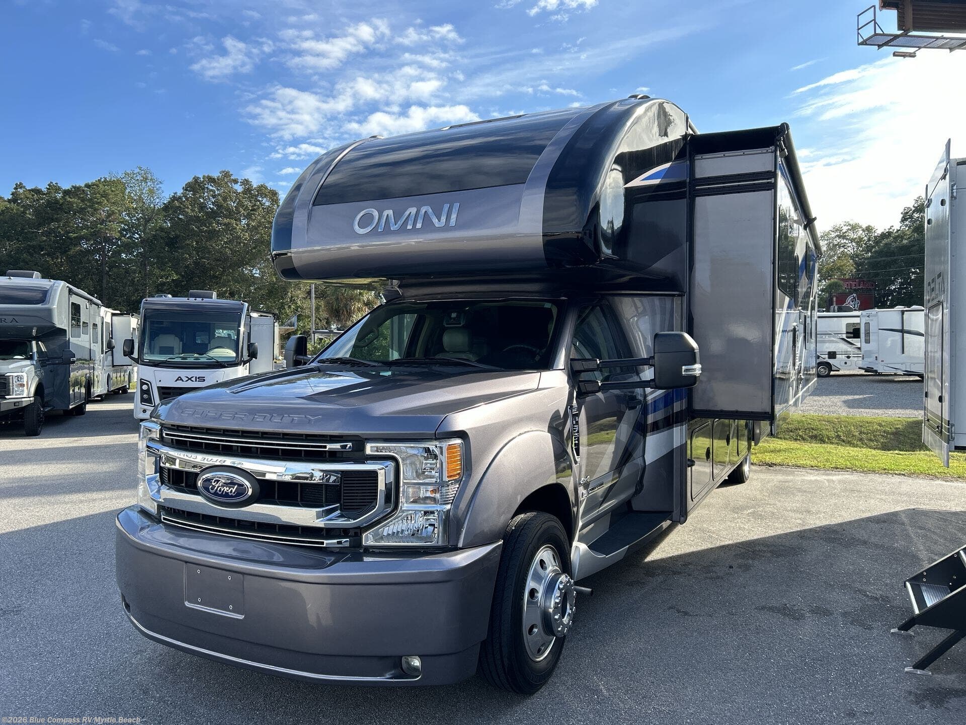 In any Thor Motor Coach Omni Super C diesel, you will find a motorhome that was built with the style and comfort of a class A RV while still giving you the power of a F-550 chassis and a 6.7L PowerStroke engine. They are constructed with a welded tubular aluminum roof and sidewall cage, a premium one-piece TPO roof, and an invisible front paint protection to give you a motorhome that will last a lifetime. Convenient features like the patio power awning with integrated LED lights, the AM/FM radio equipped with the SYNC with MyFord option, and the mobile eye driver assistance--collision and lane departure warning are just a few that will keep you impressed with these motorhomes comfort and quality.