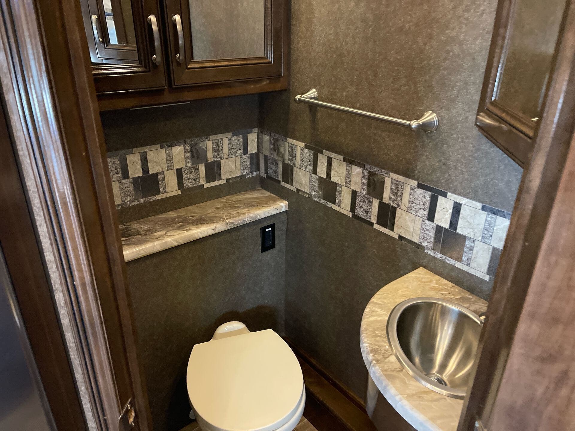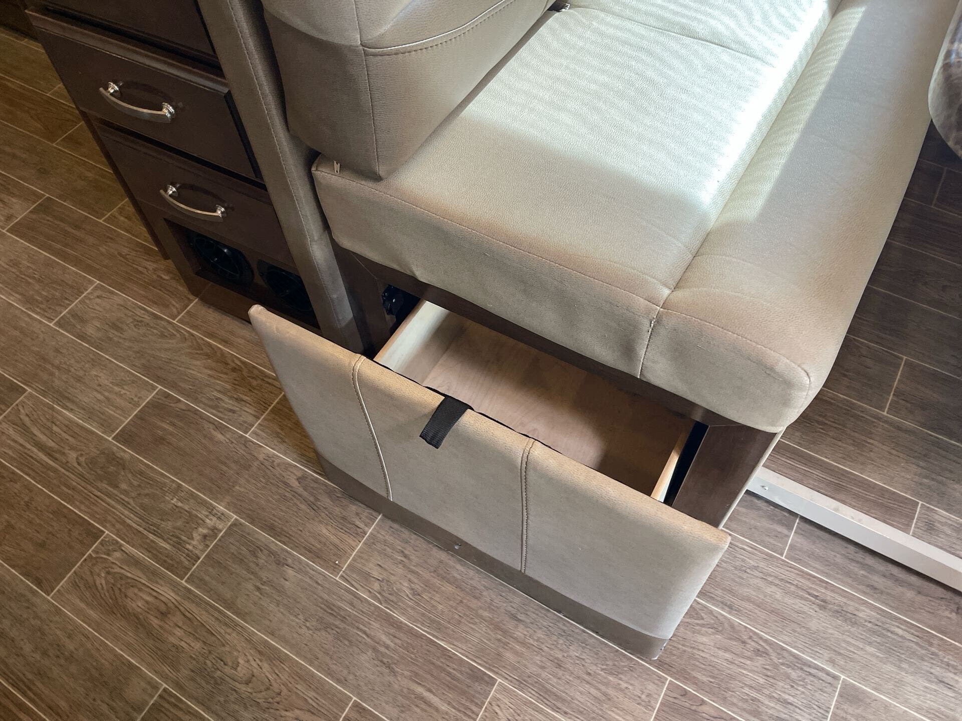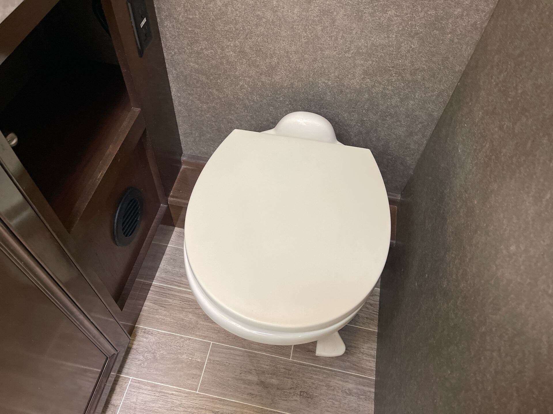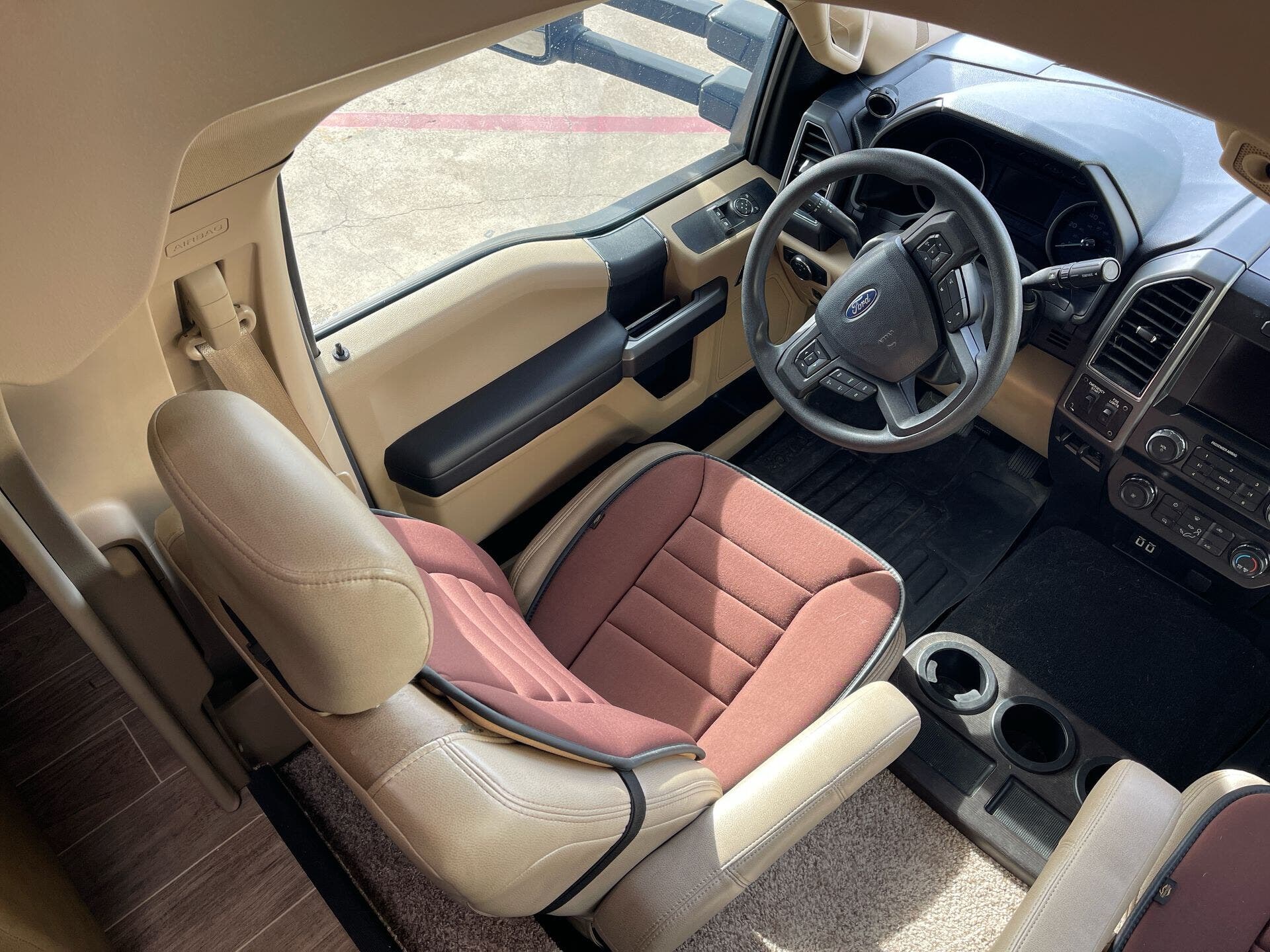 Up front, the driver and passenger captain’s chairs swivel into the living area, adding seating flexibility. The private bedroom includes a comfortable queen bed with bedside storage. A full bathroom with separate shower and toilet keeps the interior functional for everyday living. With its balance of sleeping capacity, usable living space, and smart layout, the 2020 Thor Omni BH35 is a great choice for families or groups seeking affordable comfort and convenience on the road.