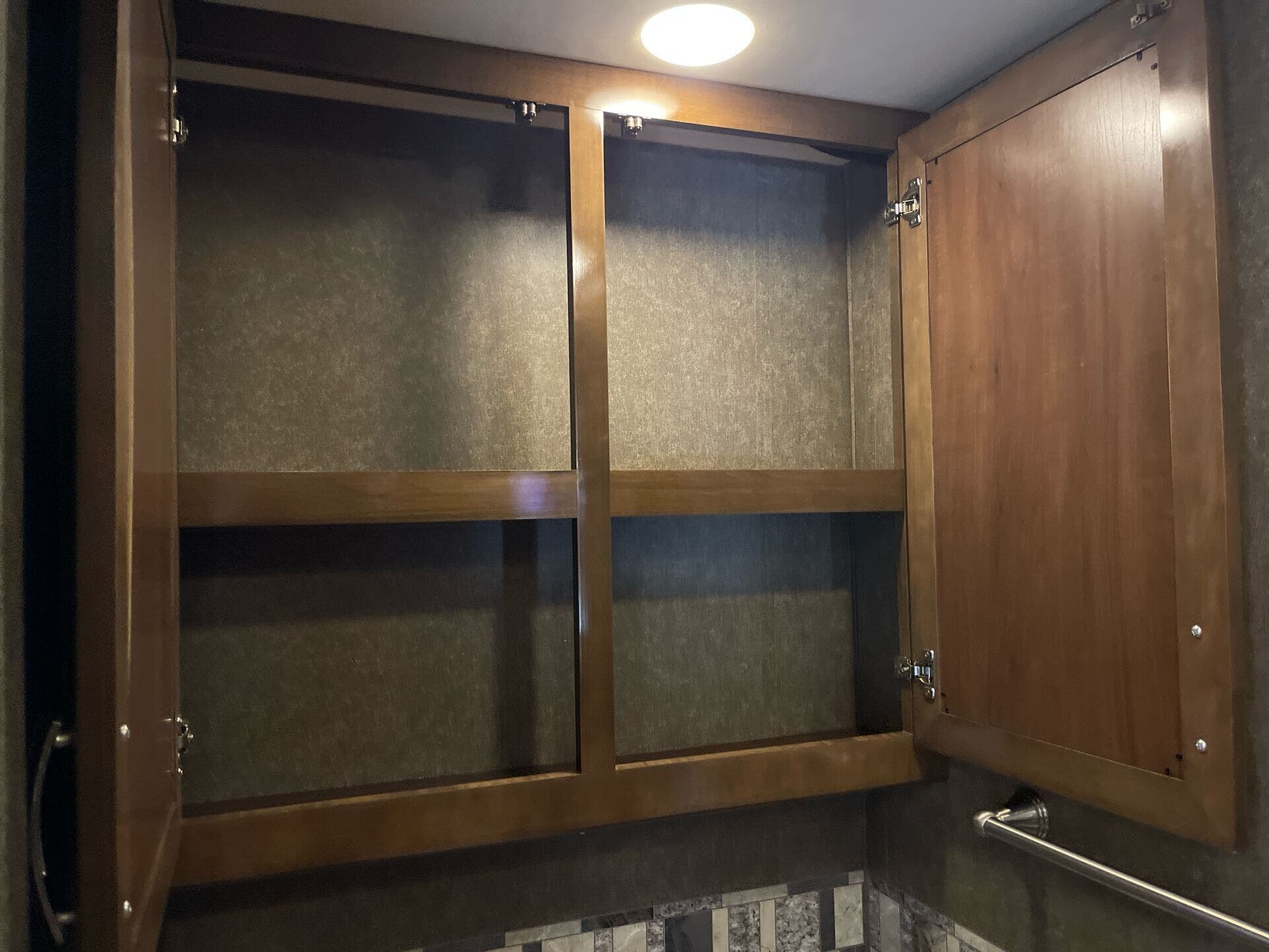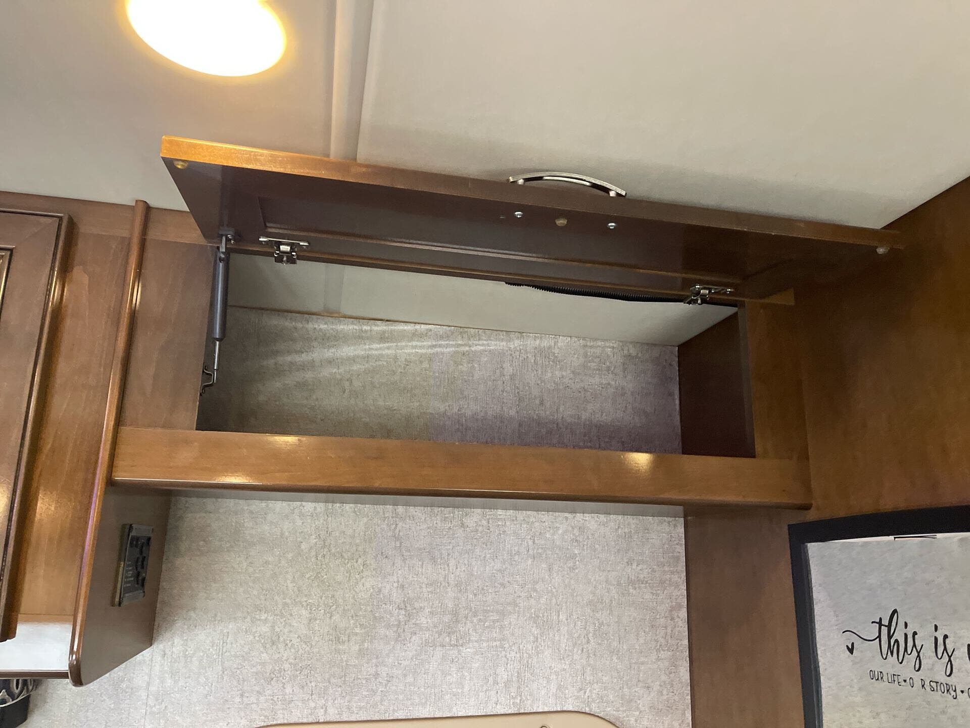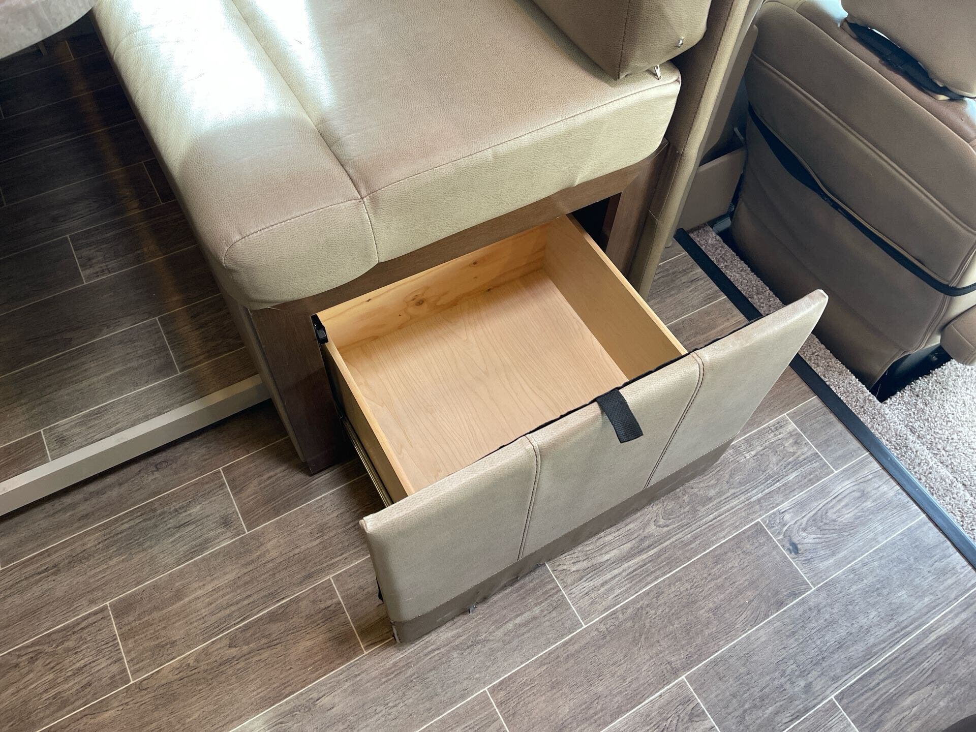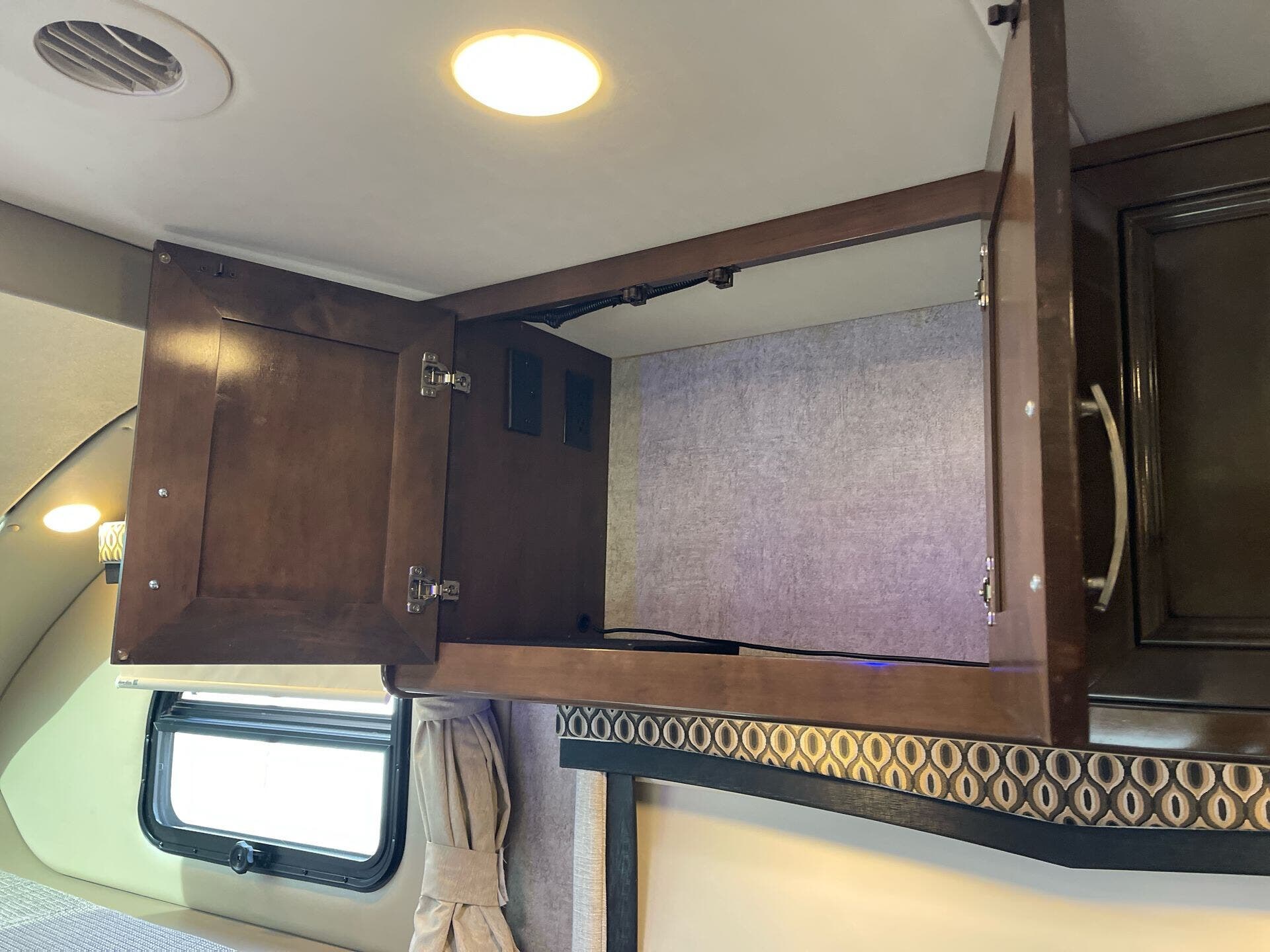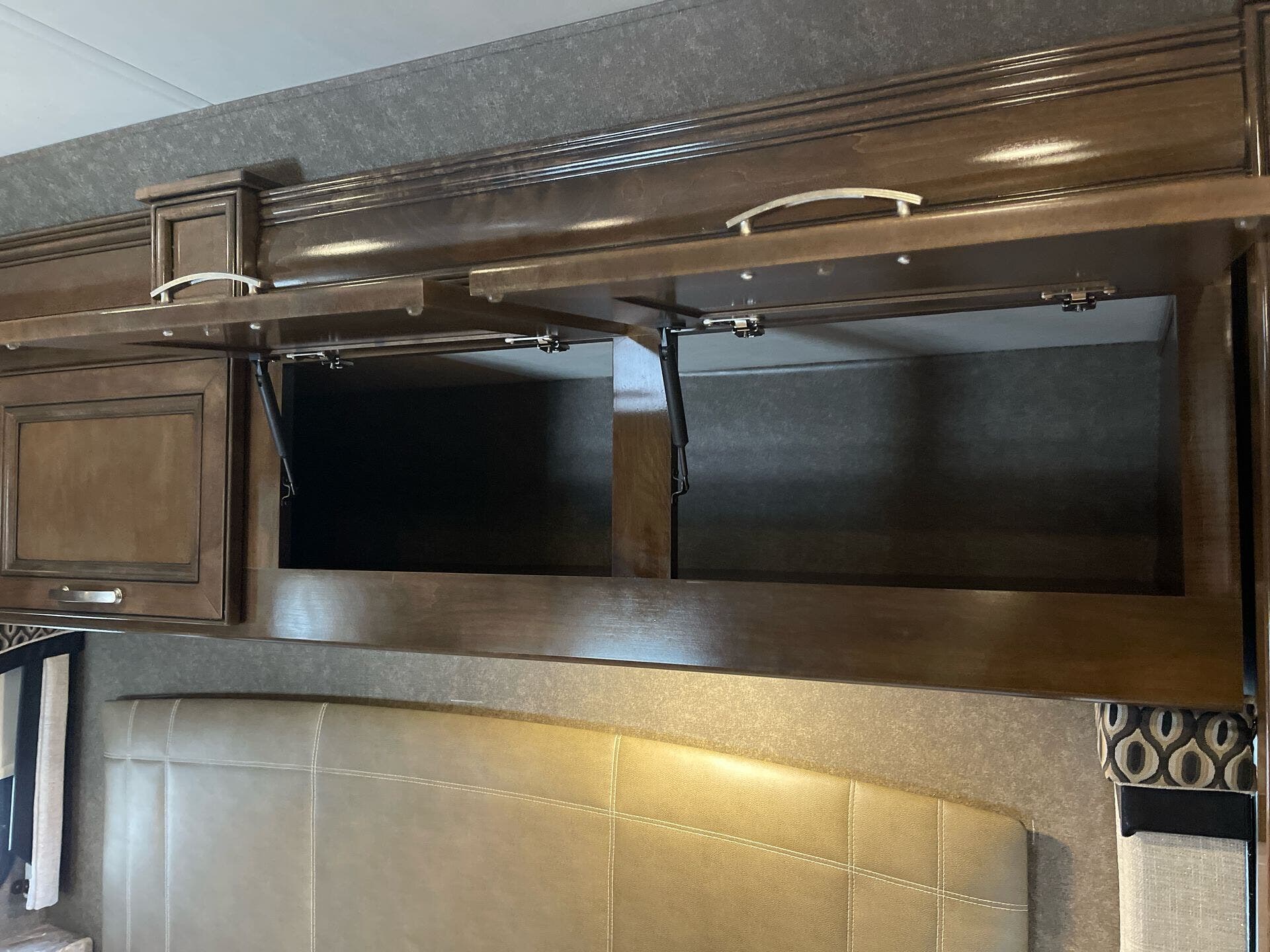 Up front, the driver and passenger captain’s chairs swivel into the living area, adding seating flexibility. The private bedroom includes a comfortable queen bed with bedside storage. A full bathroom with separate shower and toilet keeps the interior functional for everyday living. With its balance of sleeping capacity, usable living space, and smart layout, the 2020 Thor Omni BH35 is a great choice for families or groups seeking affordable comfort and convenience on the road.
