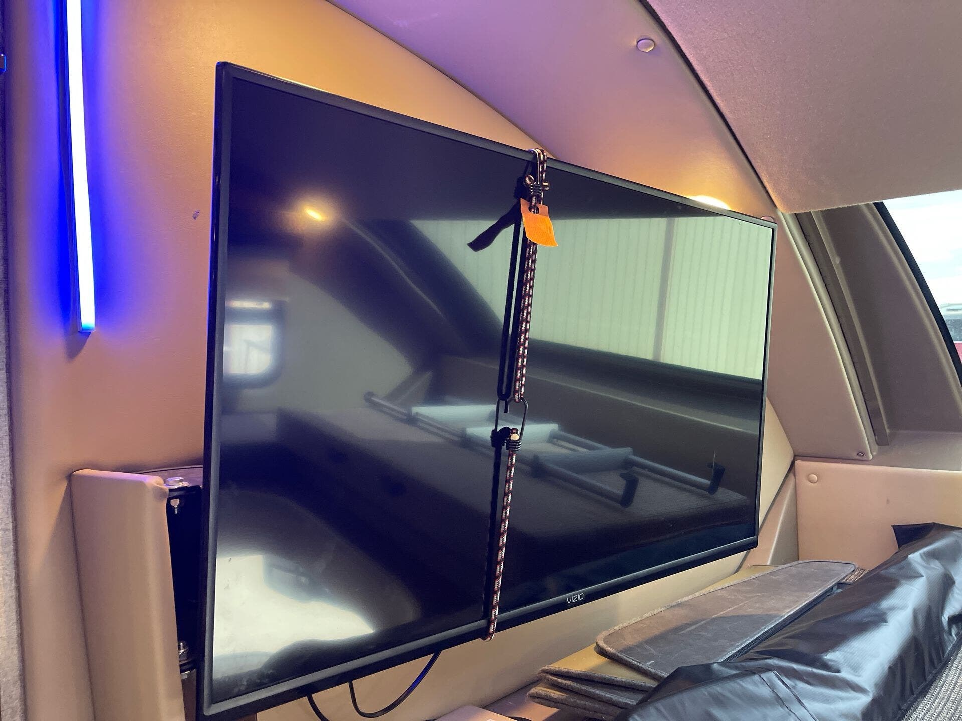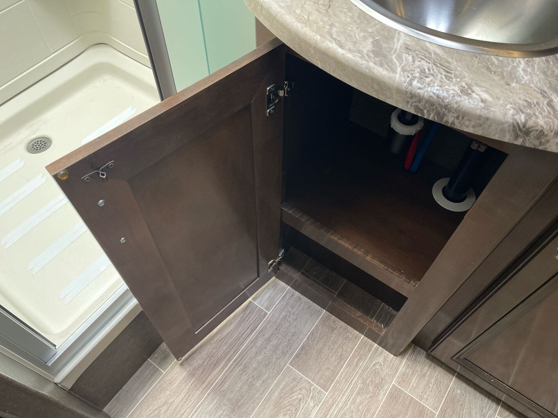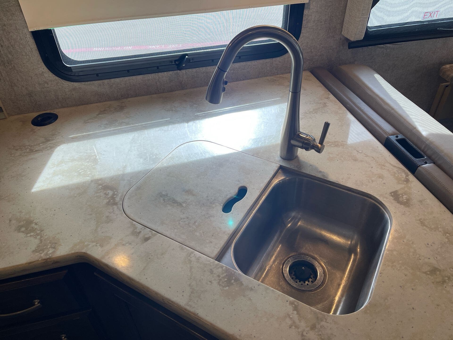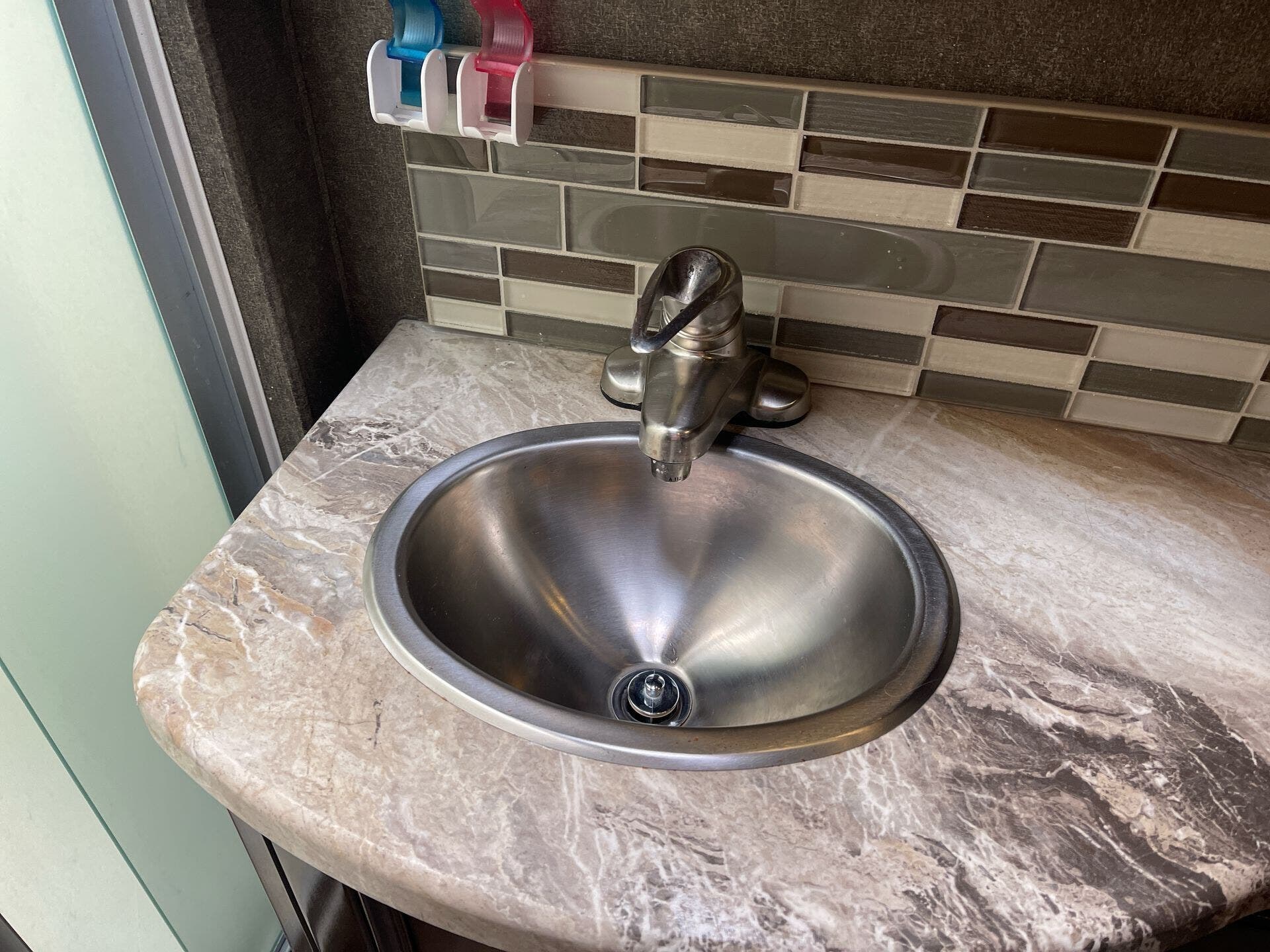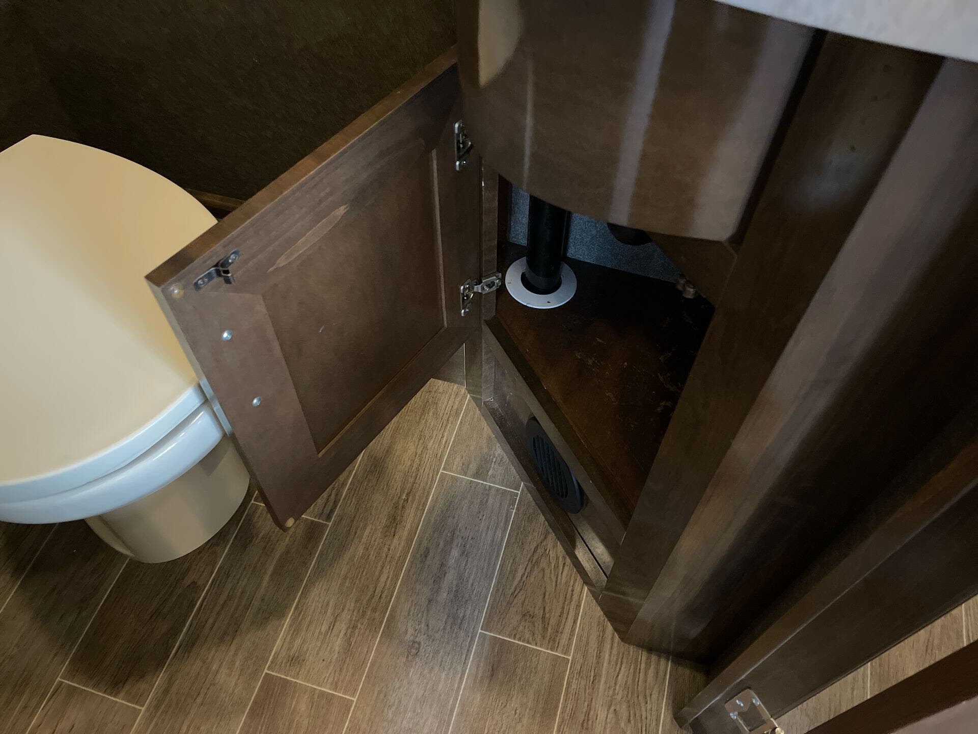 Up front, the driver and passenger captain’s chairs swivel into the living area, adding seating flexibility. The private bedroom includes a comfortable queen bed with bedside storage. A full bathroom with separate shower and toilet keeps the interior functional for everyday living. With its balance of sleeping capacity, usable living space, and smart layout, the 2020 Thor Omni BH35 is a great choice for families or groups seeking affordable comfort and convenience on the road.