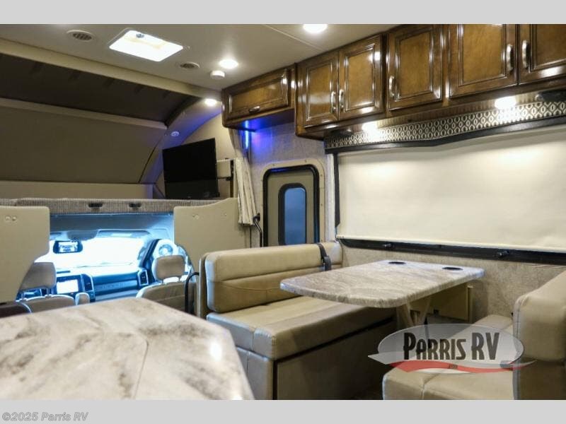 In any Thor Motor Coach Omni Super C diesel, you will find a motorhome that was built with the style and comfort of a class A RV while still giving you the power of a F-550 chassis and a 6.7L PowerStroke engine. They are constructed with a welded tubular aluminum roof and sidewall cage, a premium one-piece TPO roof, and an invisible front paint protection to give you a motorhome that will last a lifetime. Convenient features like the patio power awning with integrated LED lights, the AM/FM radio equipped with the SYNC with MyFord option, and the mobile eye driver assistance--collision and lane departure warning are just a few that will keep you impressed with these motorhomes comfort and quality.