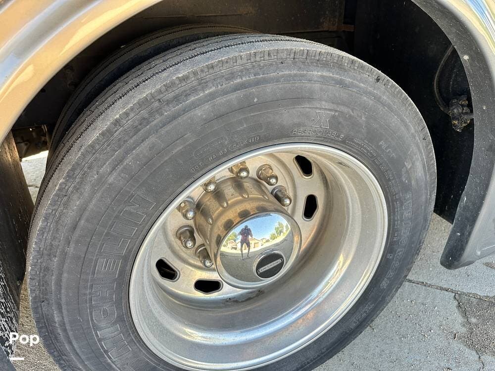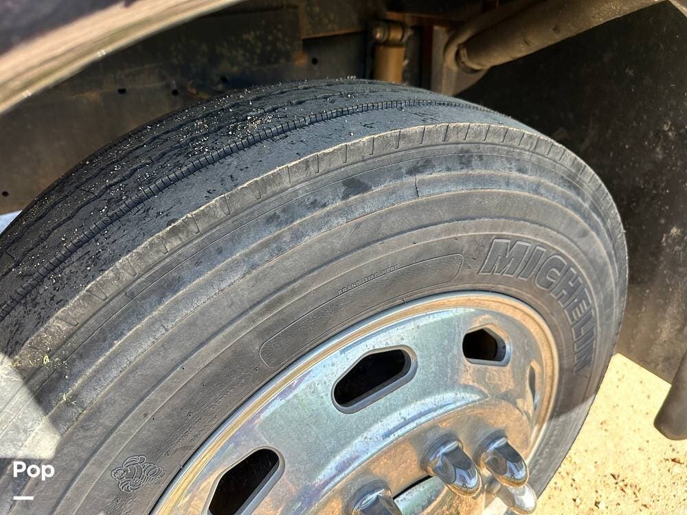 It sits on a Freightliner chassis with air-ride suspension, is powered by a Cummins ISB 6.7L 340hp engine, and is rated to tow 10,000 lbs