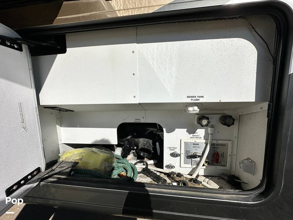 The cockpit includes a 10" touchscreen with radio, SiriusXM, Bluetooth, navigation, along with back-up & side view monitoring. You'll also find reclining & swivel captains chairs, power driver's seat, dash fans, and a power front shade.