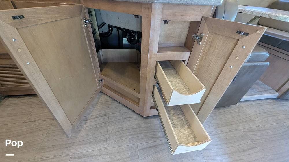 Over the cab bunk, a queen-size bed in the main sleeping area, and the booth dinette converts to accommodate overnight guests.
