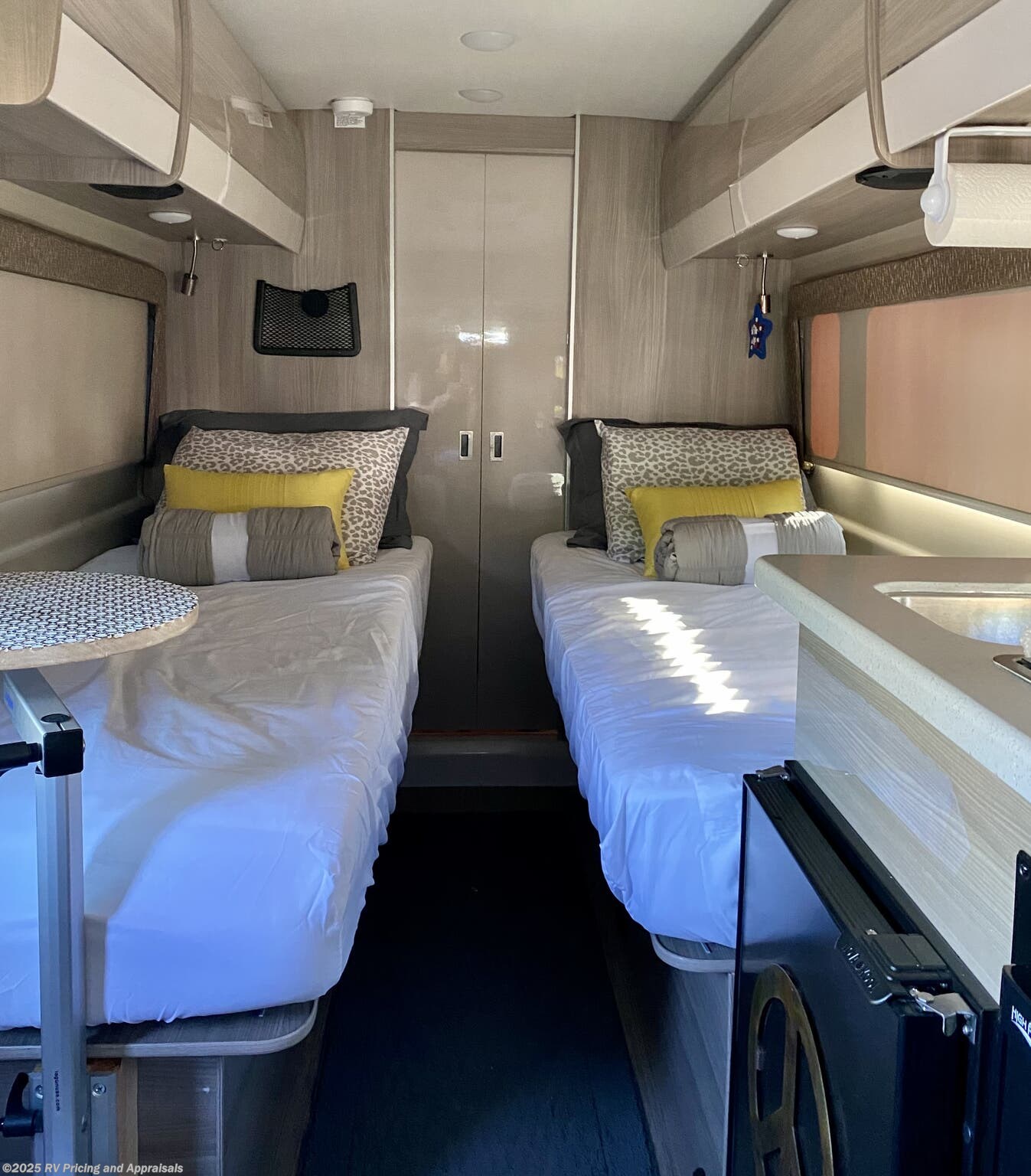 Designed for two travelers, this Sequence 20L floorplan blends practical RV living with everyday convenience. With a 26-gallon fresh water tank and 13 gallons each for gray and black water, you’ll enjoy reliable camping basics without frequent refills. The motorhome includes a bunk-bed setup, making it an ideal option for couples who occasionally welcome a guest or simply need flexible sleeping arrangements.